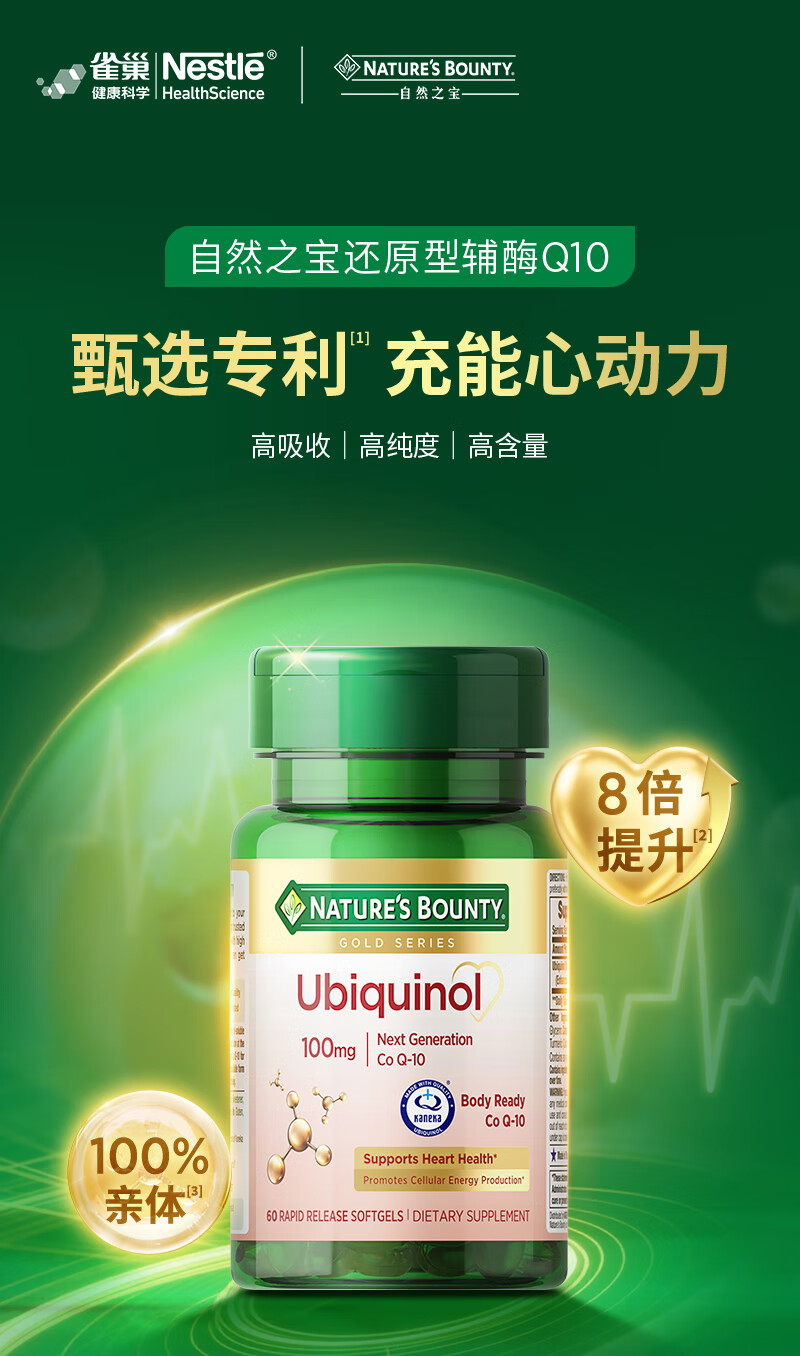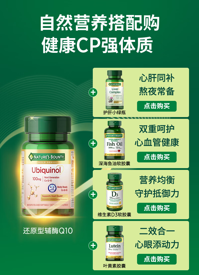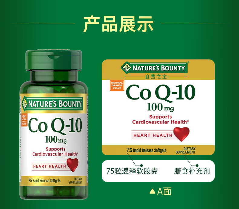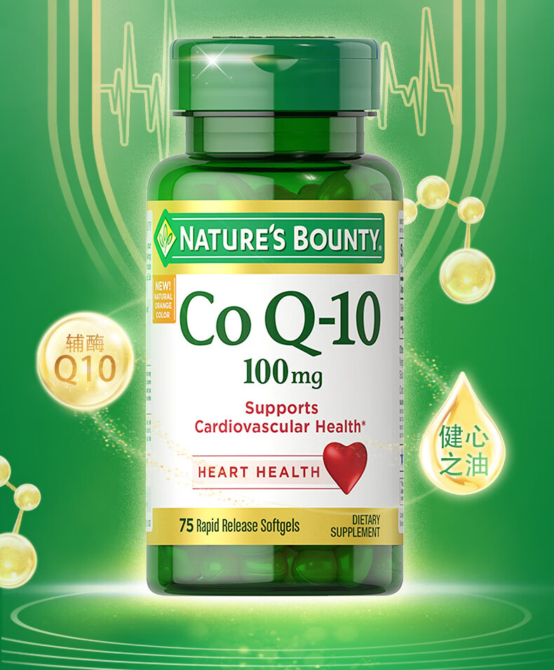 自然之宝辅酶Q10胶囊100mg 美国原装进口护心脏 中老年成人营养保健品 【1瓶调理装】氧化型辅酶泛醌75粒(供养心肌)