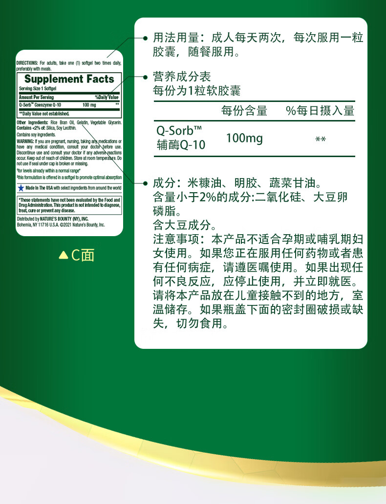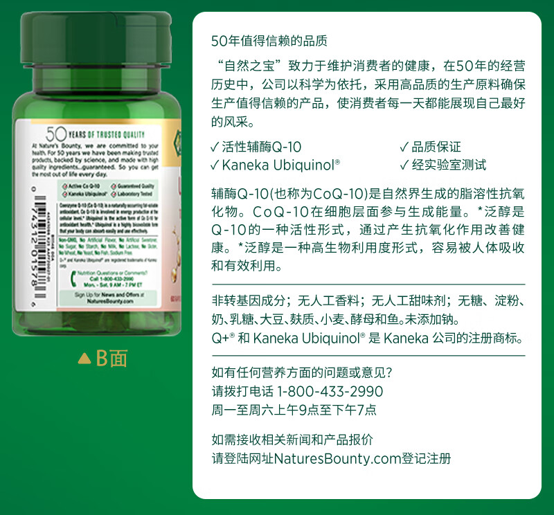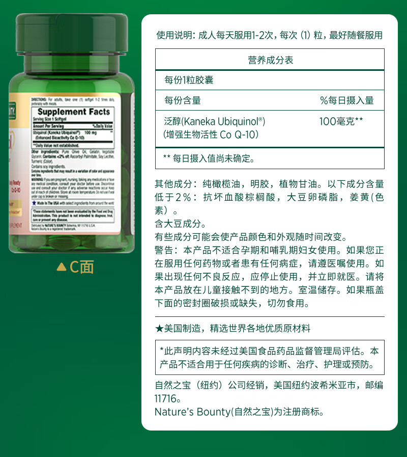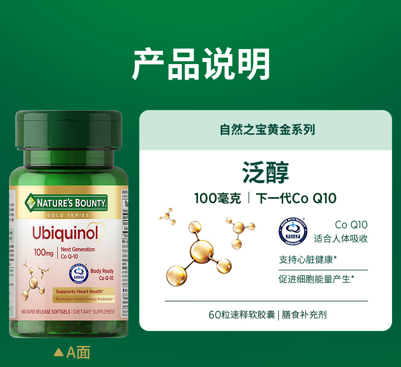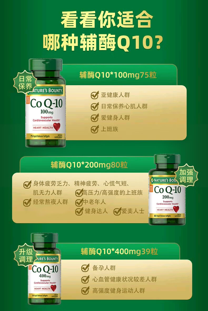 自然之宝辅酶Q10胶囊100mg 美国原装进口护心脏 中老年成人营养保健品 【1瓶调理装】氧化型辅酶泛醌75粒(供养心肌)