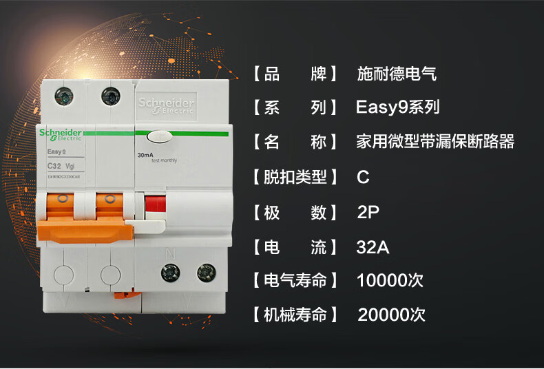 施耐德电气 空开带漏电保护断路器A型 空气开关 2PC32A漏保 EA9RN2C3230CAR
