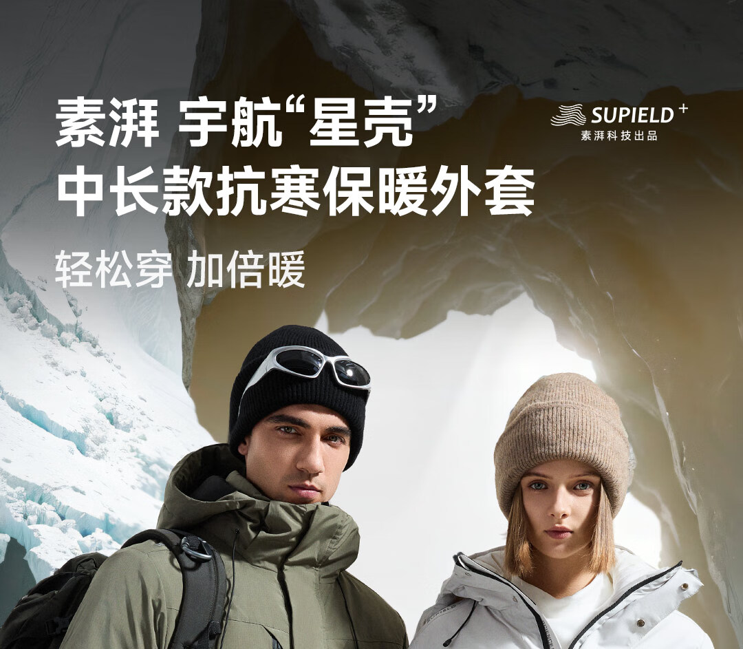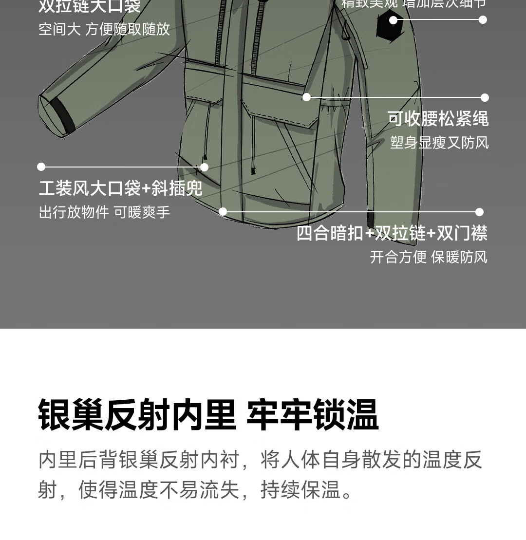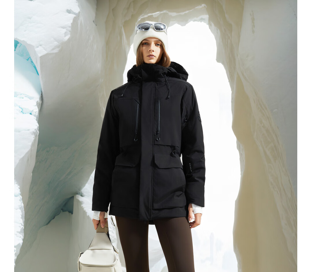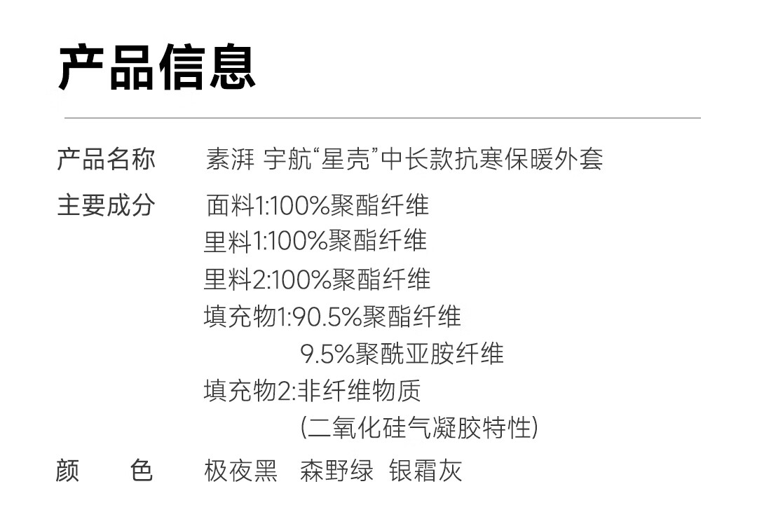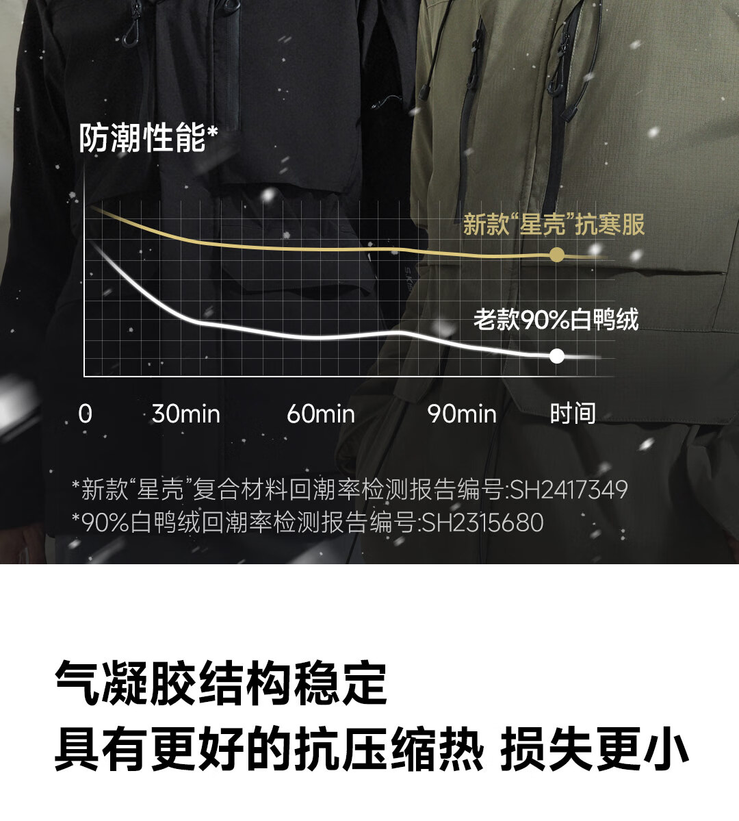 素湃宇航星壳中长款抗寒服男女冬双重保暖棉服外套 极夜黑 XL