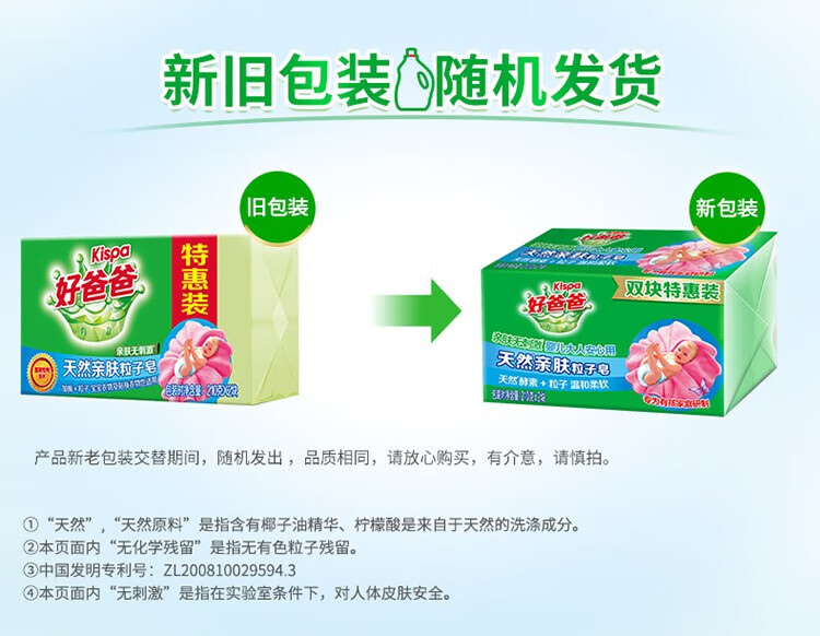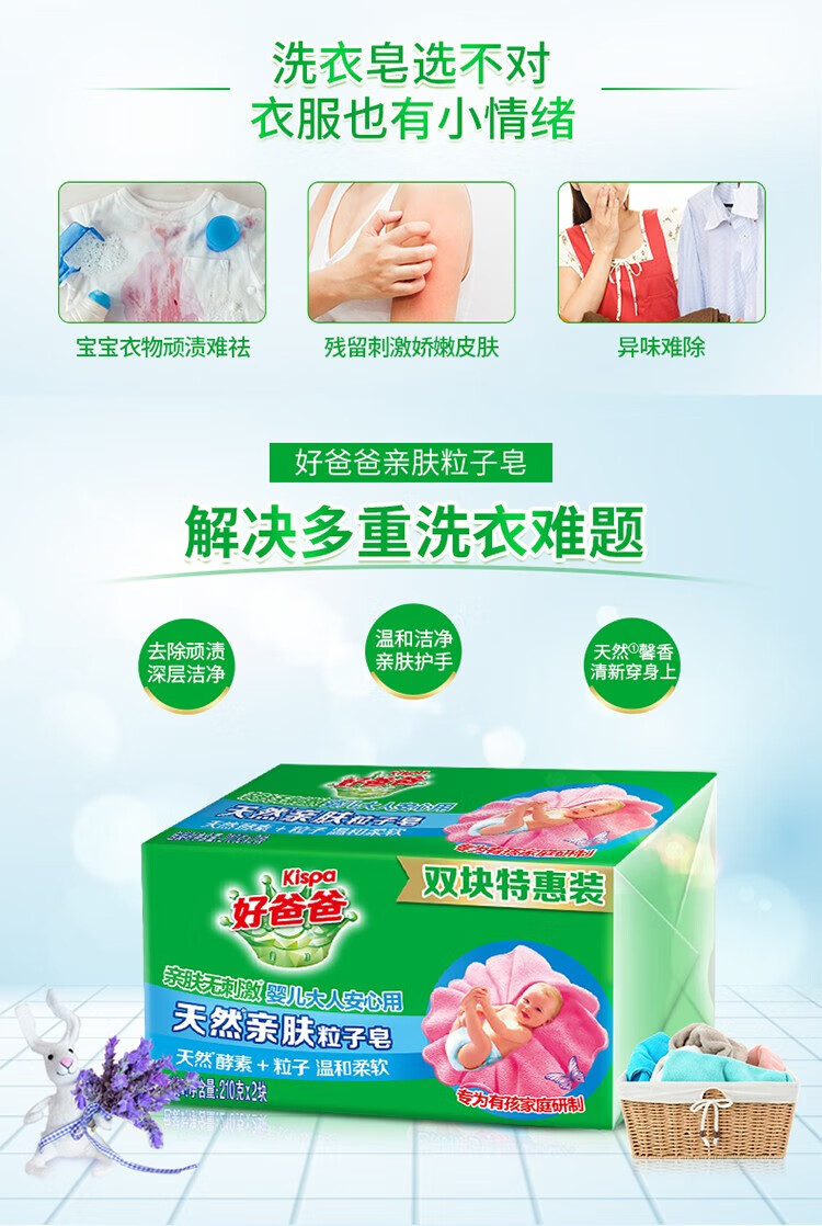 好爸爸洗衣皂儿童强去污亲肤粒子皂天然酵素肥皂洗衣皂宝宝婴儿可用 天然熏香粒子皂180g*2块