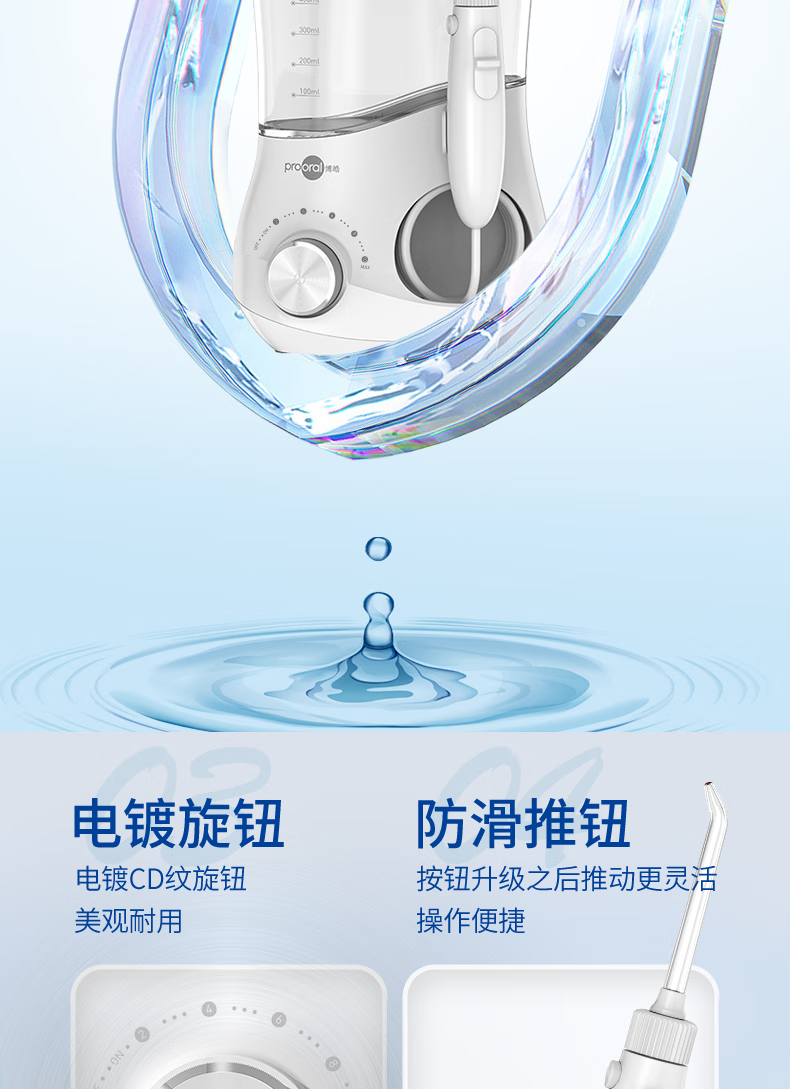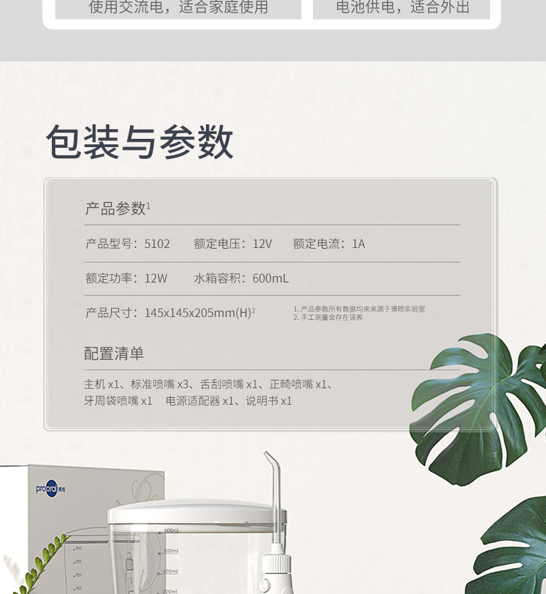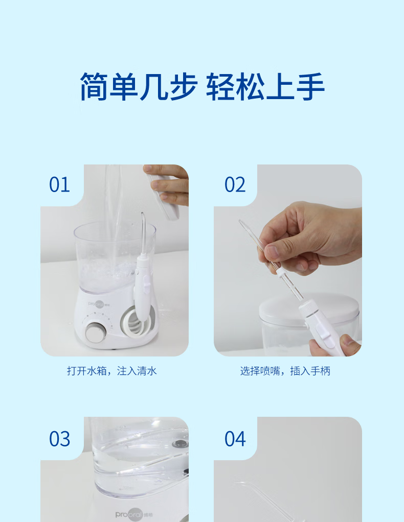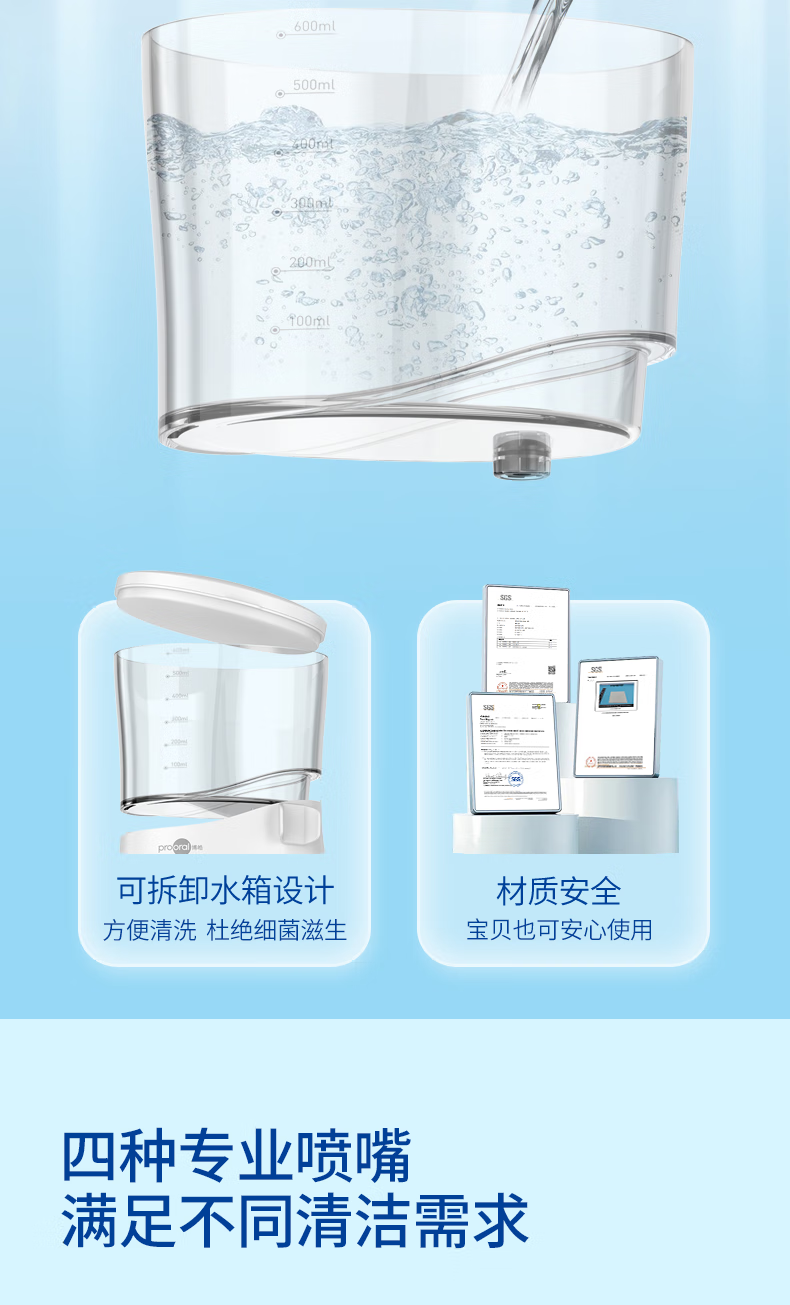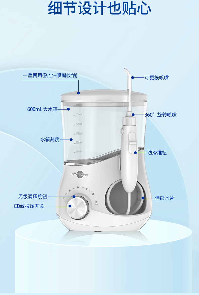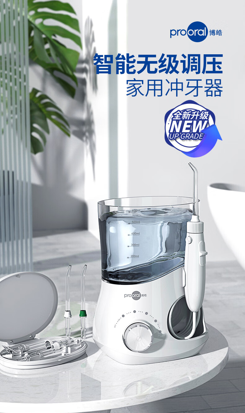 博皓(prooral)冲牙器家用台式洗牙器去结石电动牙齿冲洗器水牙线声波洁牙器 正畸牙缝清洁口腔护理 大水箱版5102 象牙白