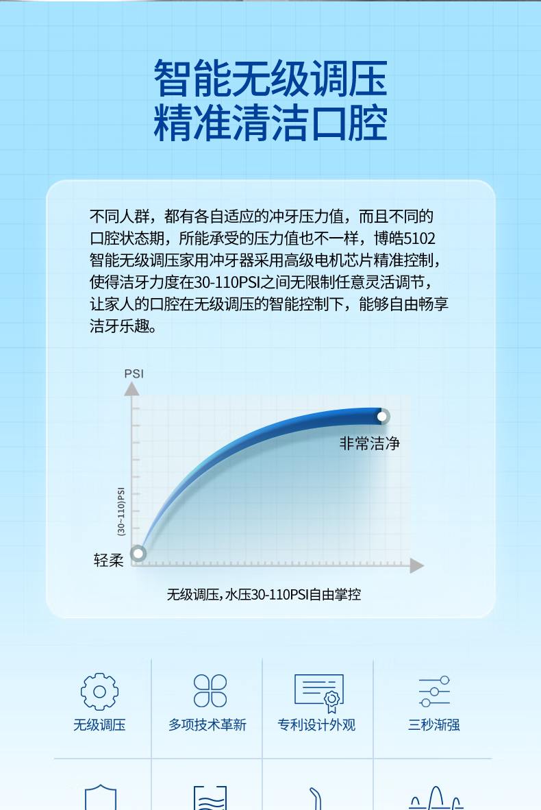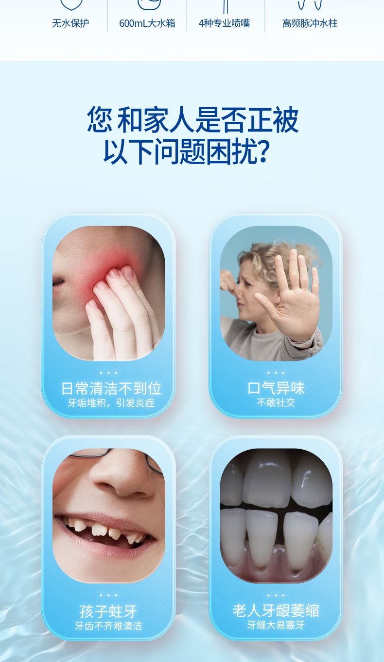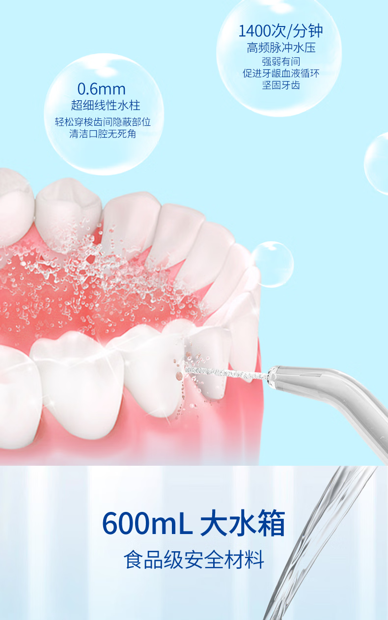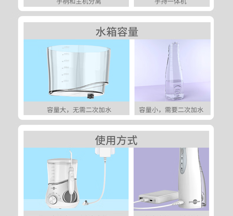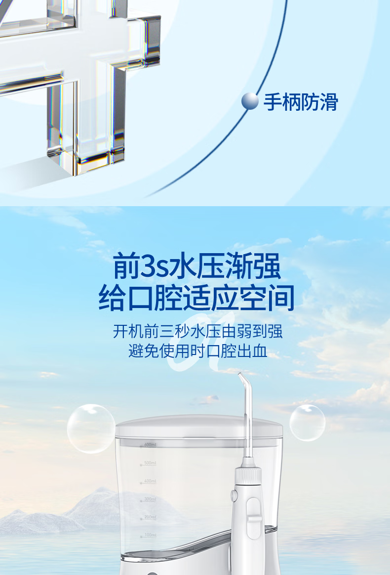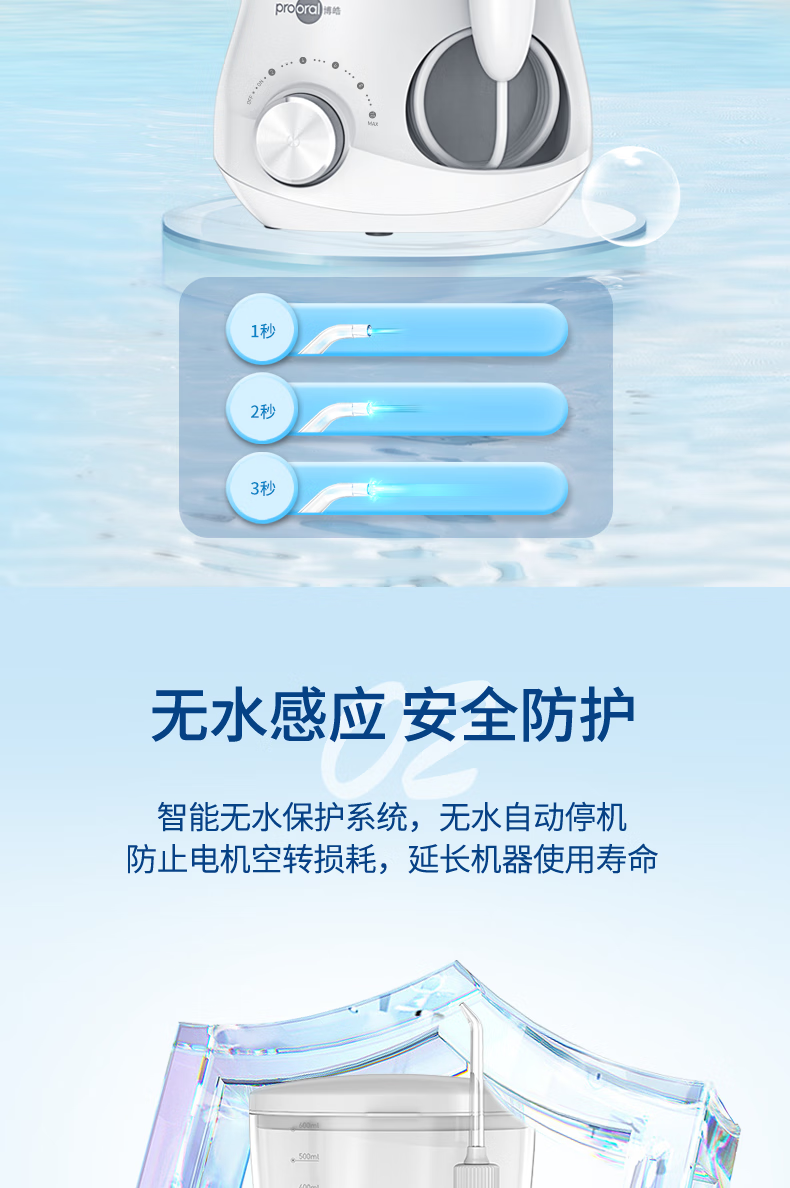 博皓(prooral)冲牙器家用台式洗牙器去结石电动牙齿冲洗器水牙线声波洁牙器 正畸牙缝清洁口腔护理 大水箱版5102 象牙白