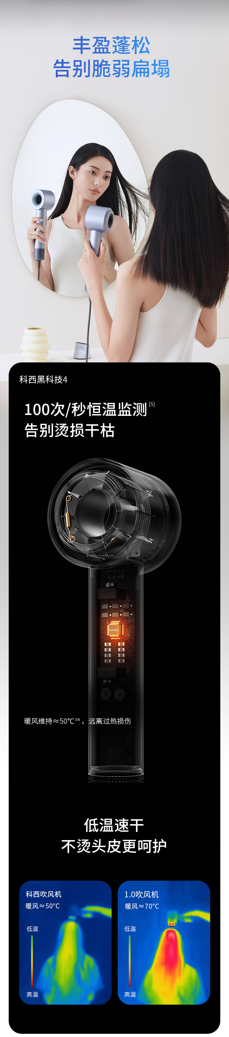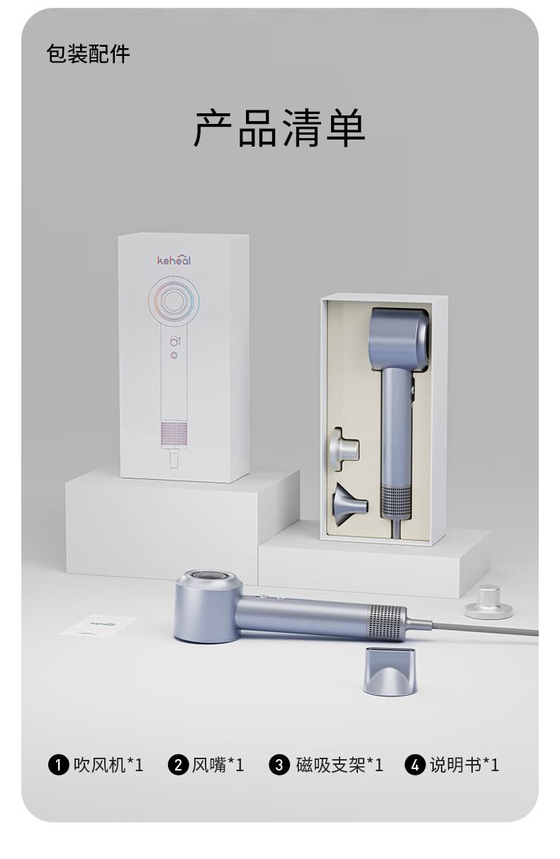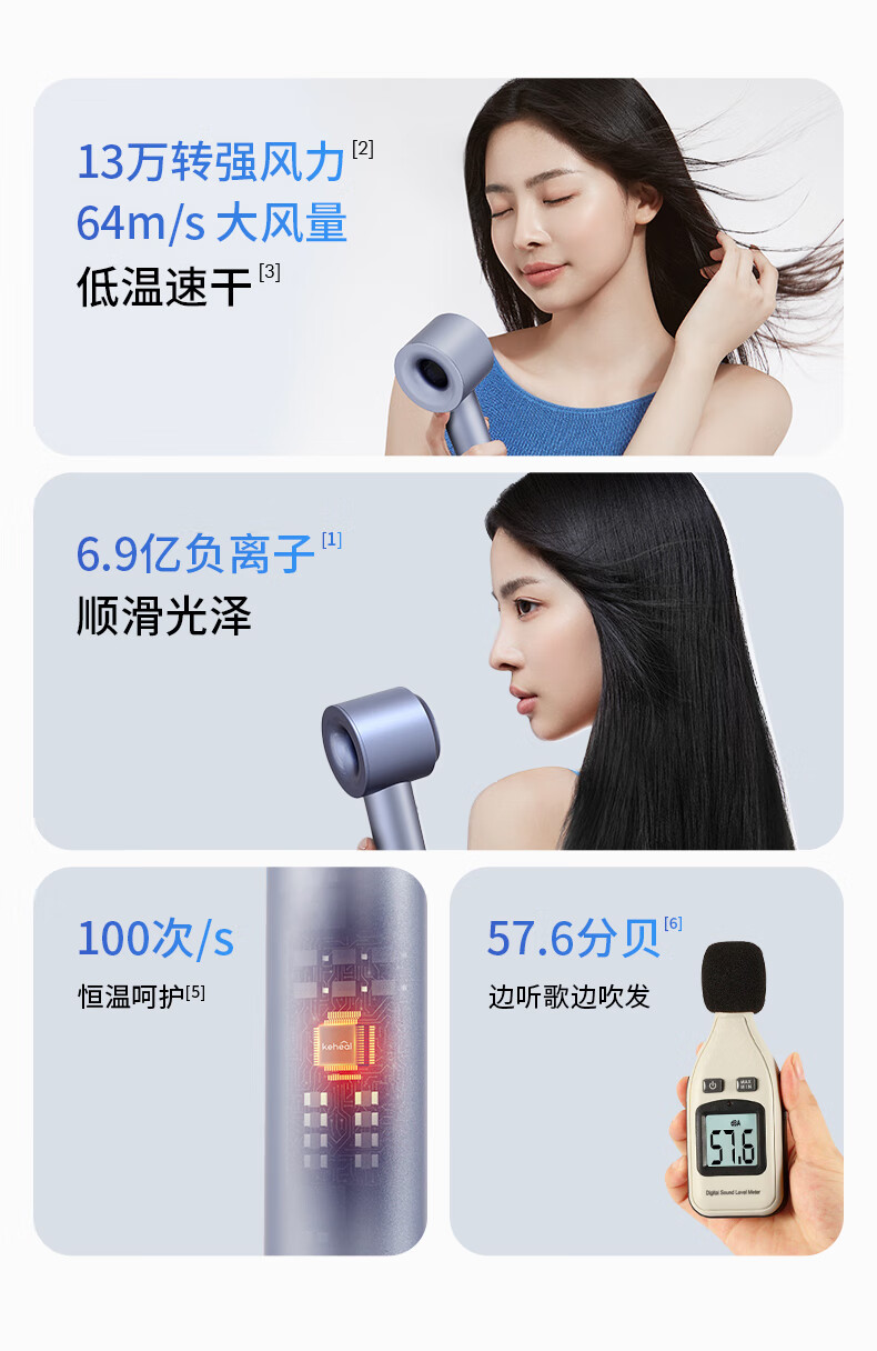 科西(KEHEAL)高速吹风机【国家补贴】家用6.9亿负离子电吹风13万转大功率不伤发护发静音轻音速干吹风筒送礼物 流光银-新包装【附带支架】
