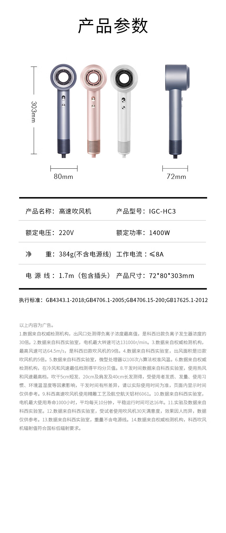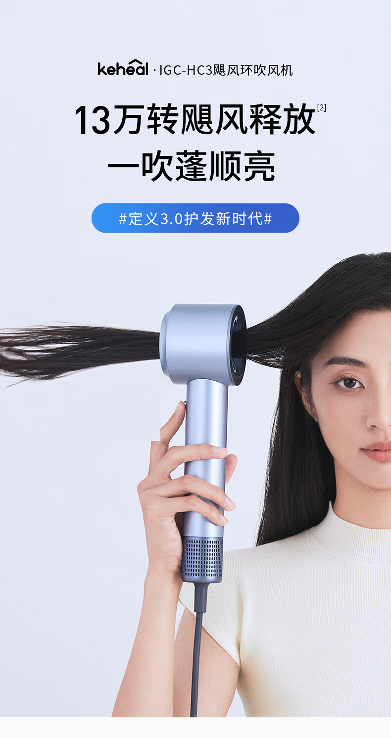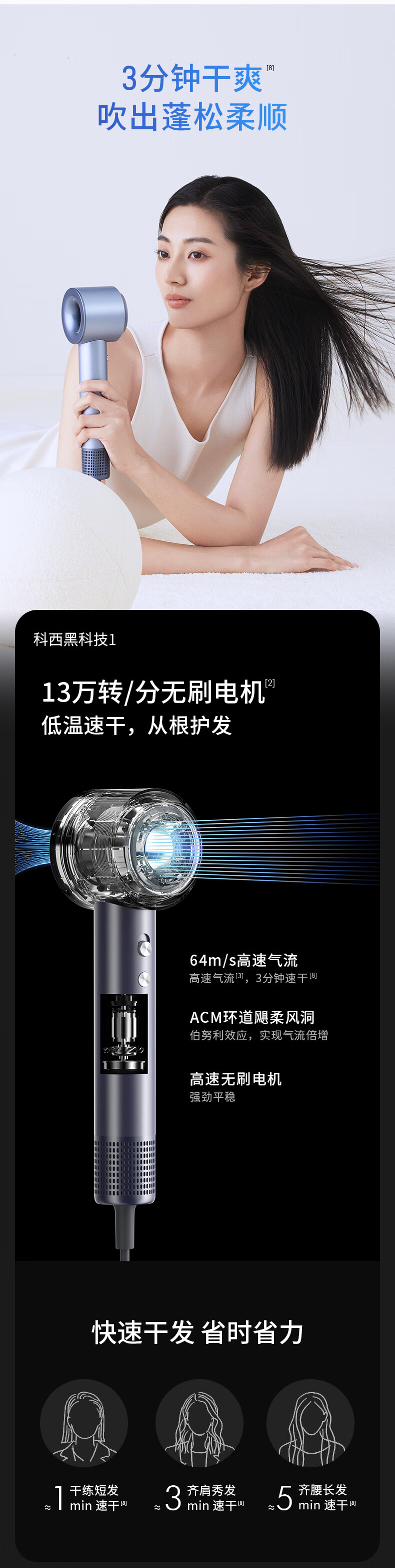 科西(KEHEAL)高速吹风机【国家补贴】家用6.9亿负离子电吹风13万转大功率不伤发护发静音轻音速干吹风筒送礼物 流光银-新包装【附带支架】
