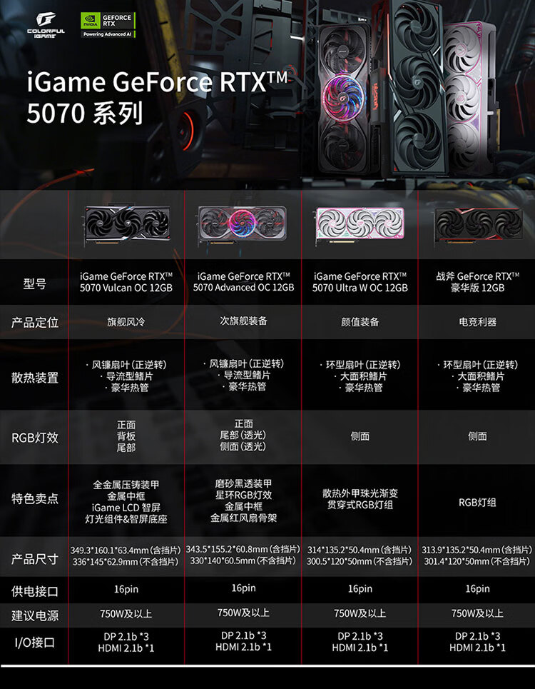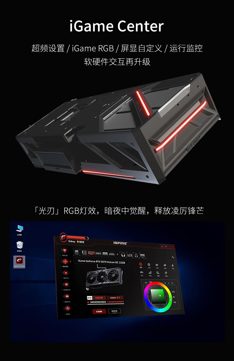 七彩虹(Colorful)iGame GeForce RTX 5070 Vulcan OC 12GB GDDR7 DLSS 4 电竞光追游戏设计电脑显卡