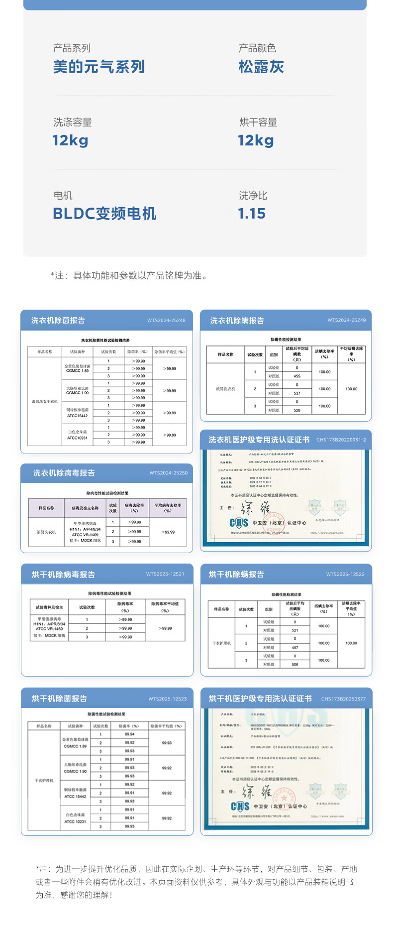 威力【威力小威风3.0】12KG滚筒洗烘一体一小时洗烘洗衣机DD直驱变频电机除菌XQG120-1439DDH XQG120-1439DDH