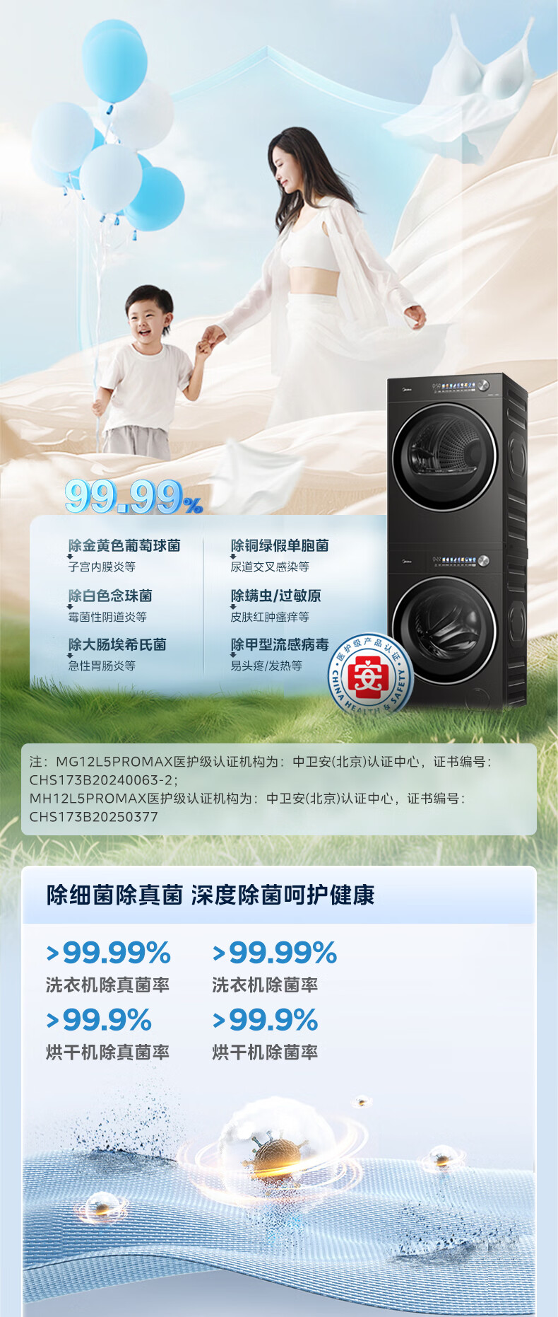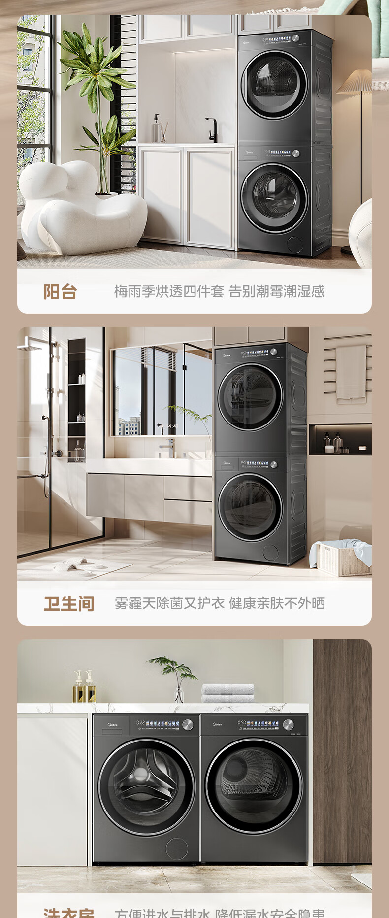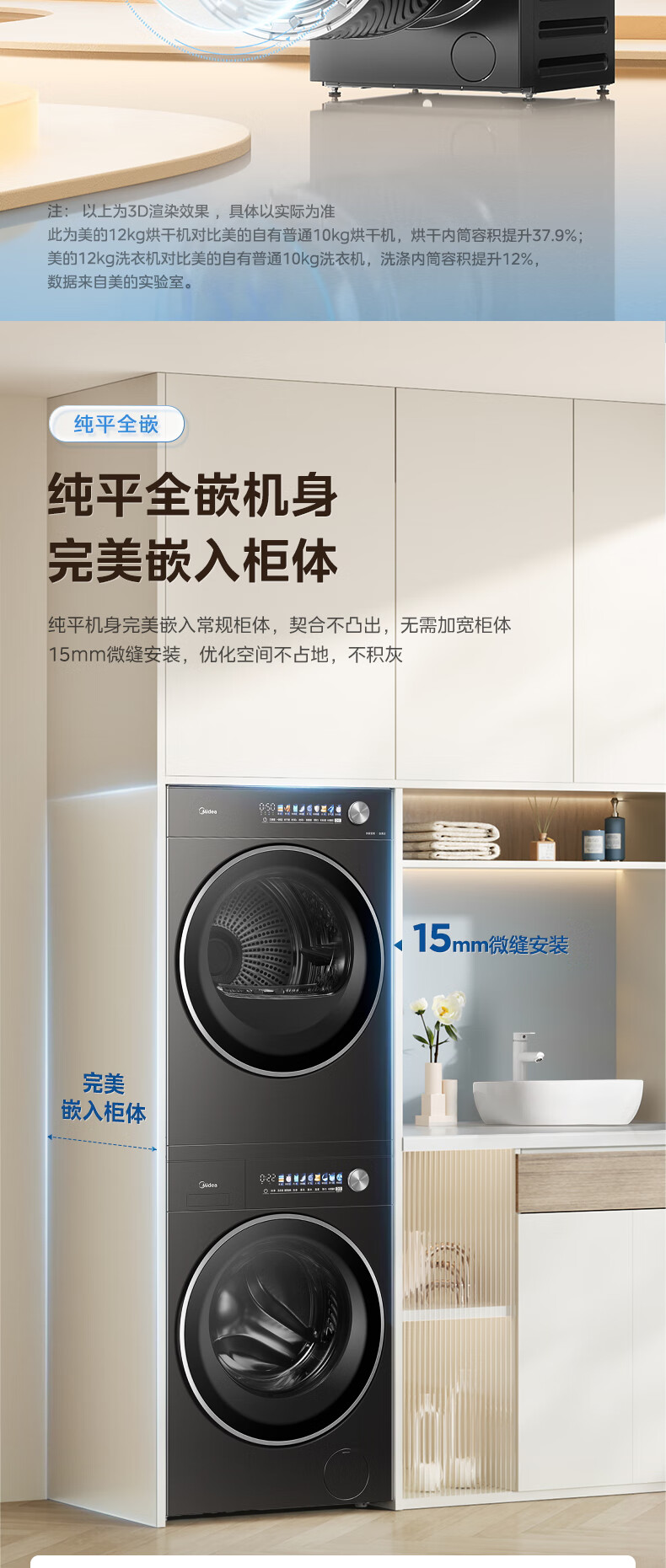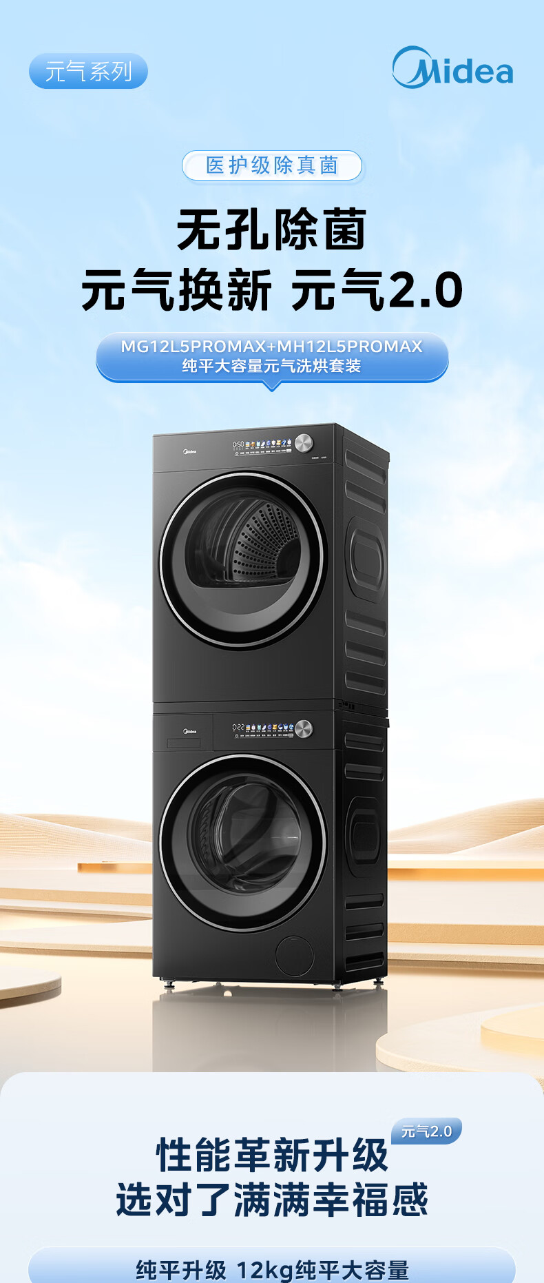 美的(Midea)洗烘套装12kg滚筒洗衣机+12kg变频热泵烘干机银离子除菌纯平全嵌元气2.0 MG12L5PROMAX+MH12L5PROMAX