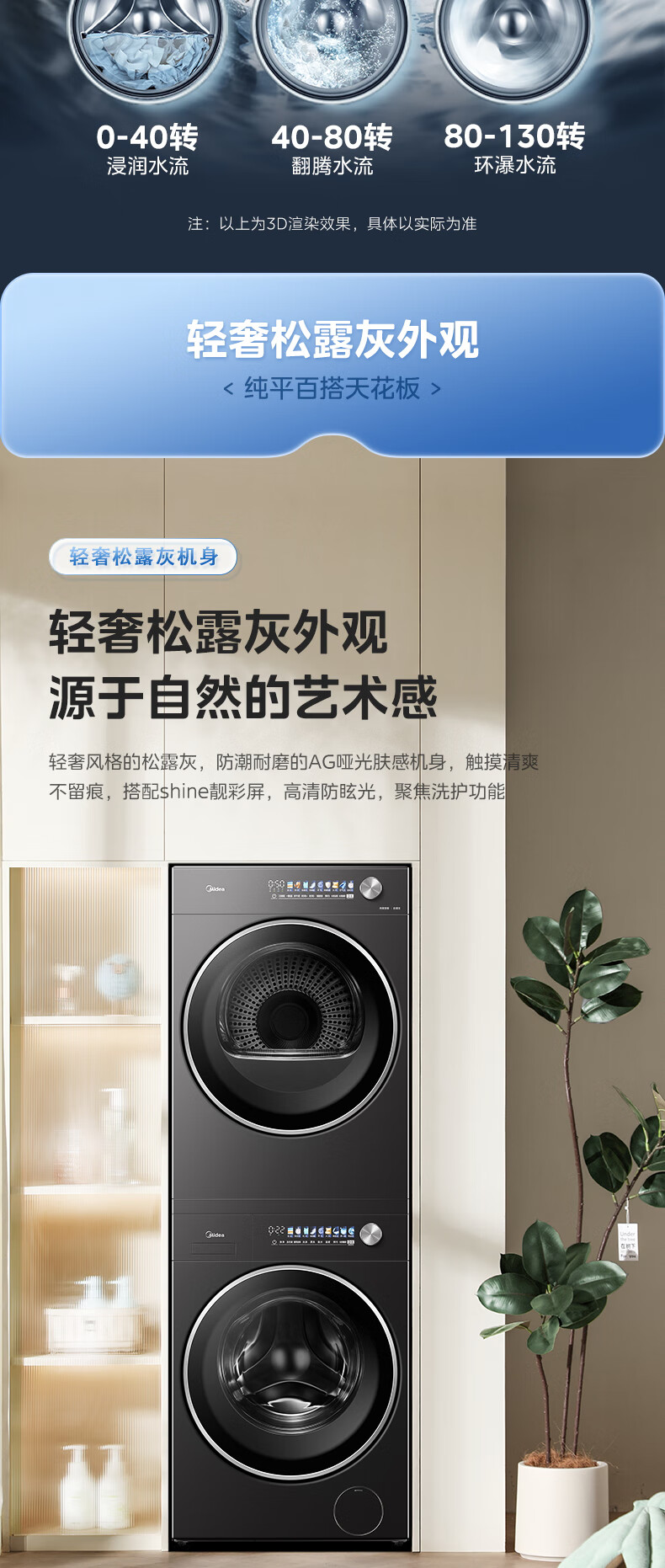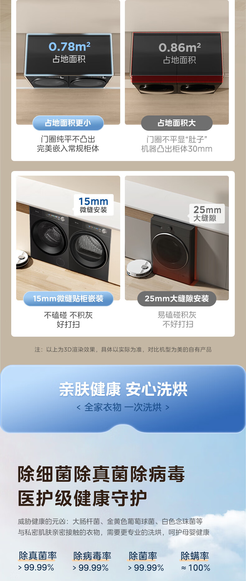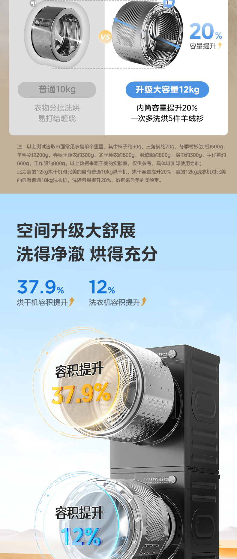 美的(Midea)洗烘套装12kg滚筒洗衣机+12kg变频热泵烘干机银离子除菌纯平全嵌元气2.0 MG12L5PROMAX+MH12L5PROMAX