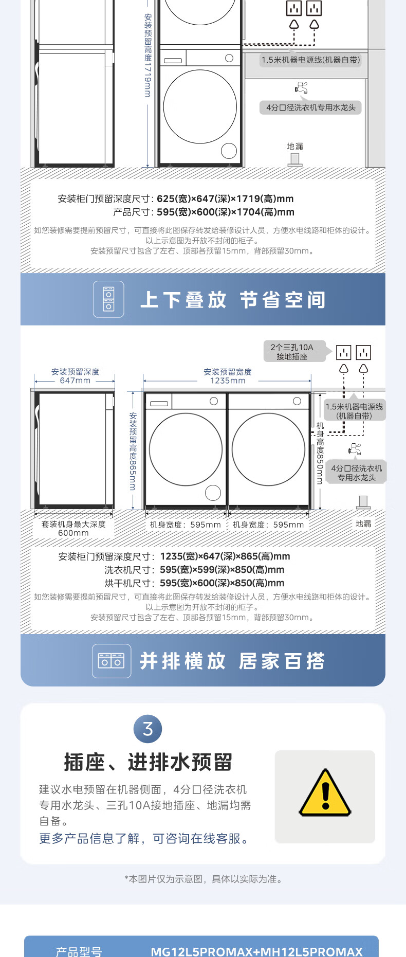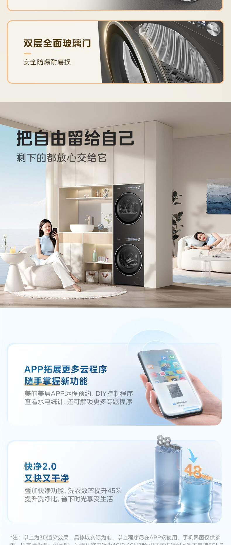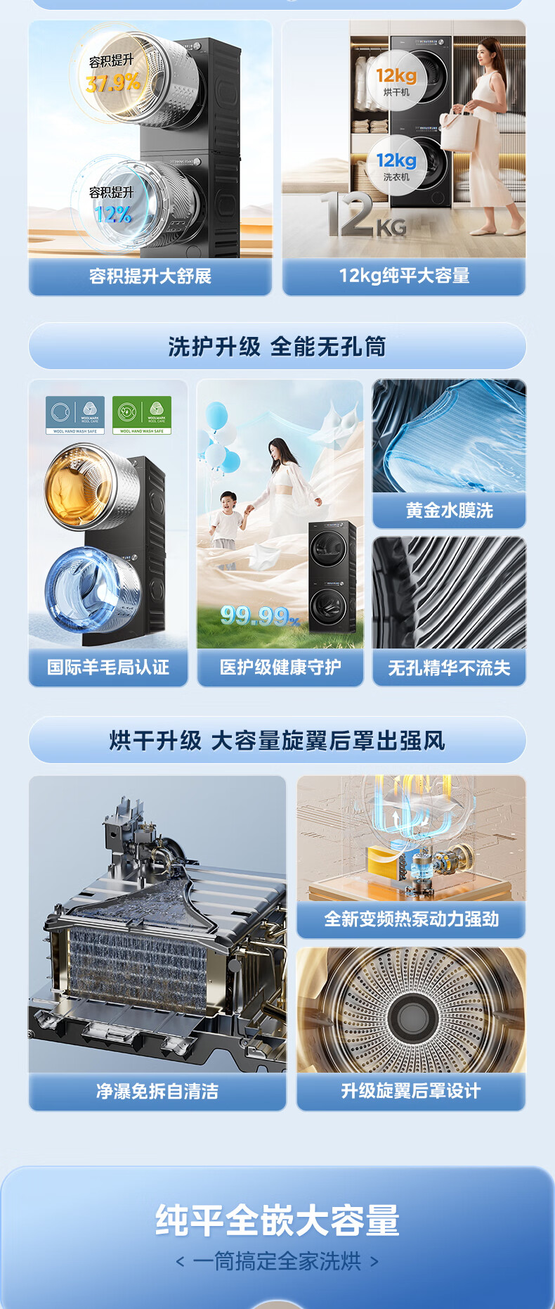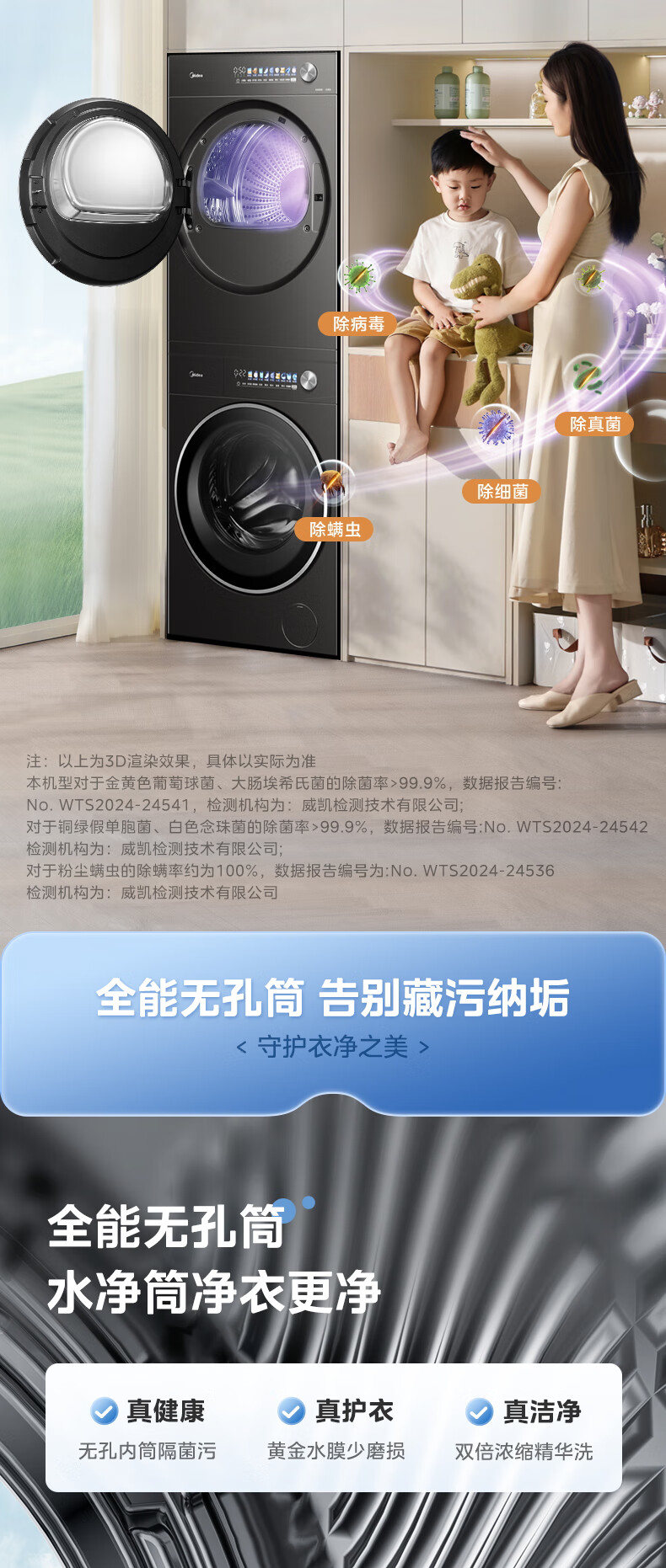 美的(Midea)洗烘套装12kg滚筒洗衣机+12kg变频热泵烘干机银离子除菌纯平全嵌元气2.0 MG12L5PROMAX+MH12L5PROMAX