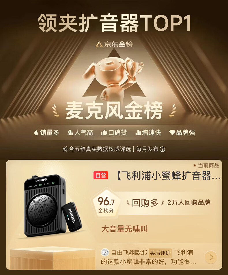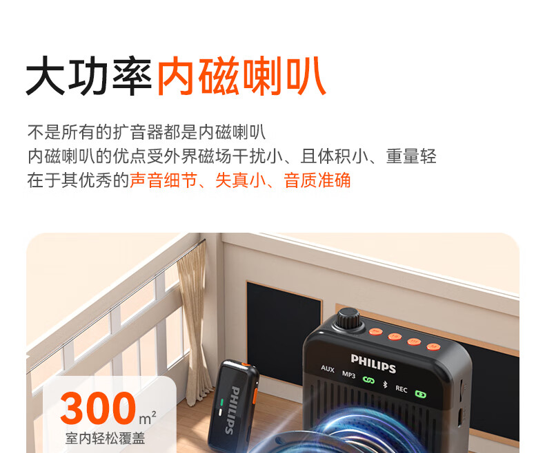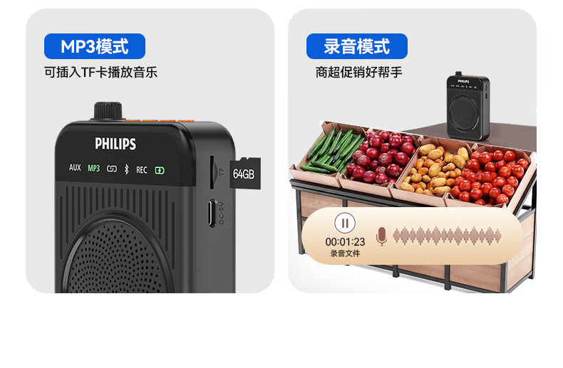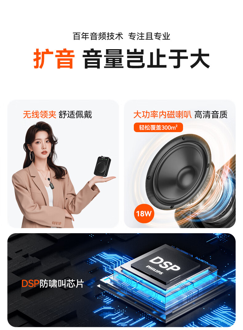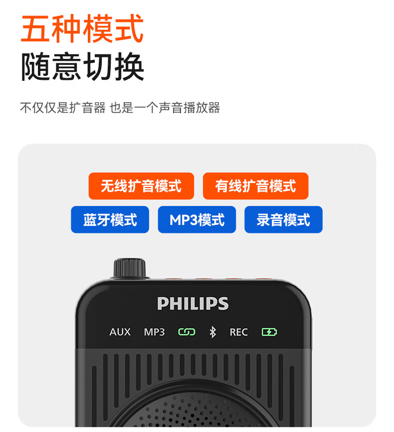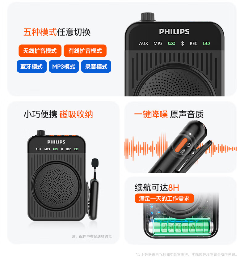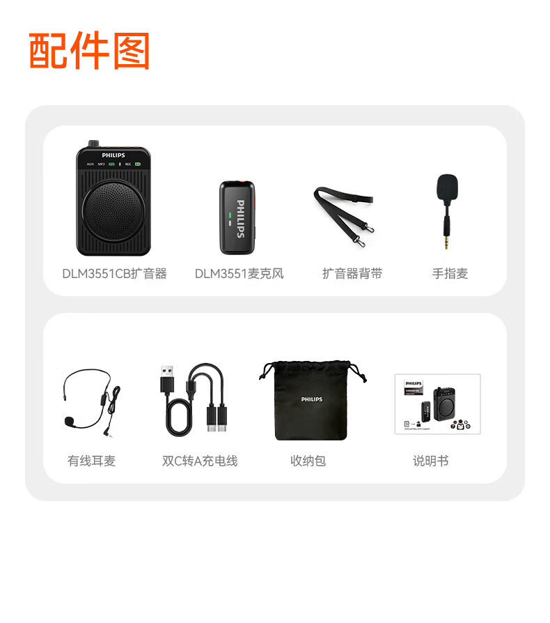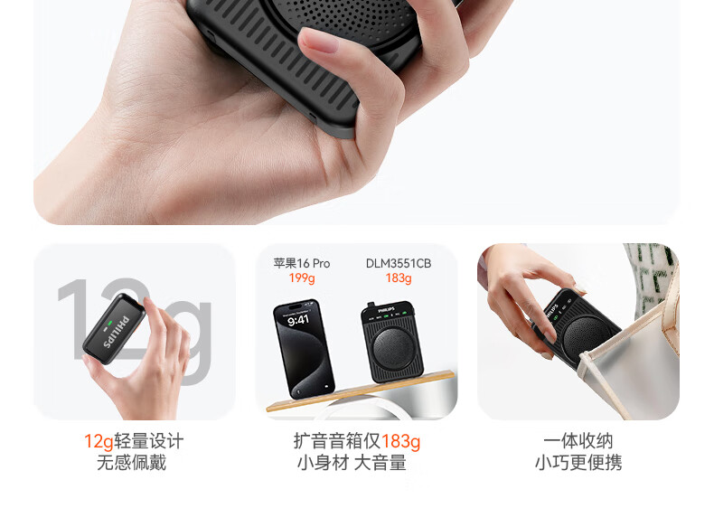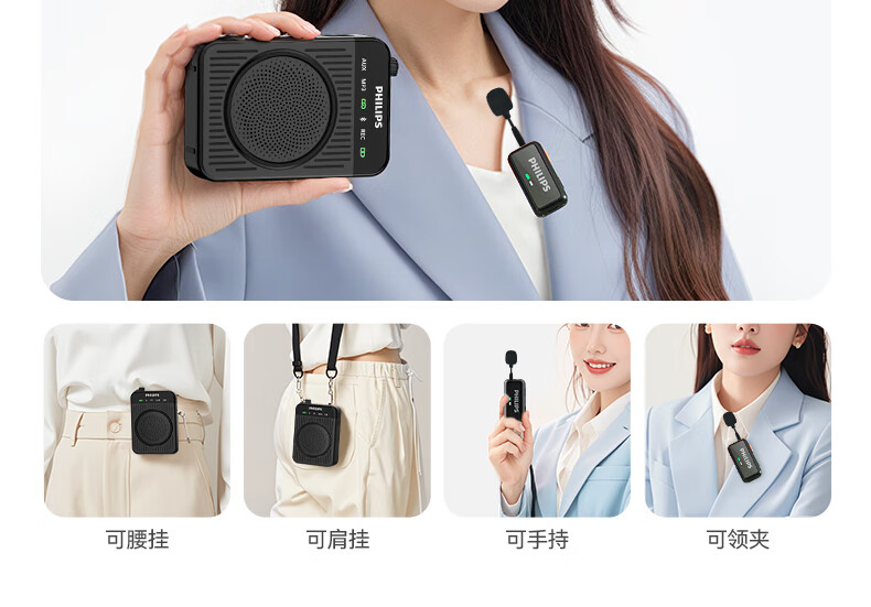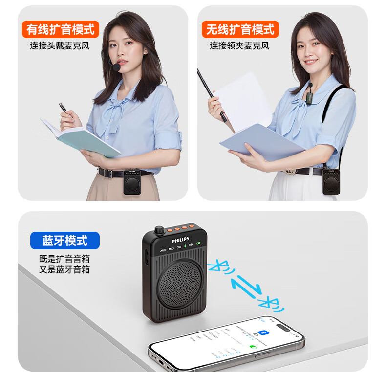 飞利浦(PHILIPS)【国家补贴】领夹小蜜蜂扩音器教师上课专用 导游讲解器 小蜜蜂蓝牙无线扩音器麦克风DLM3551CB