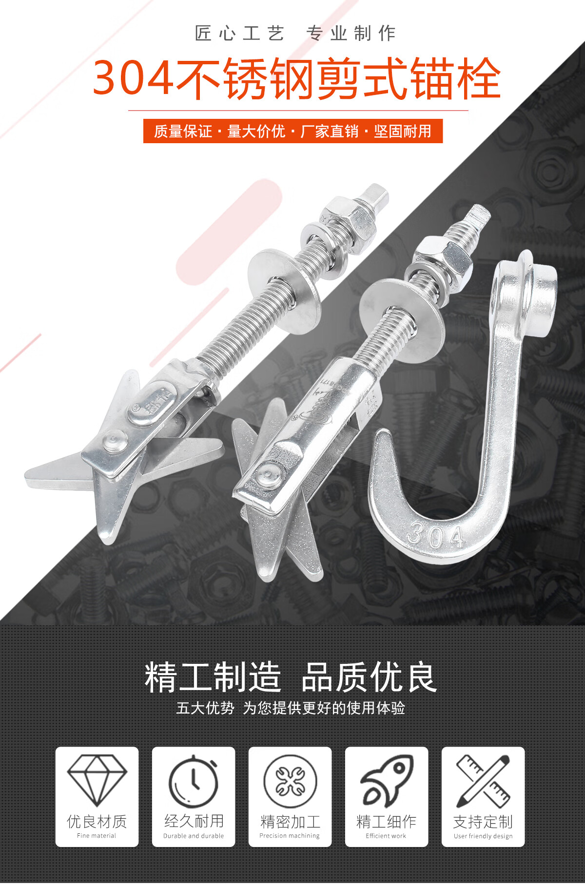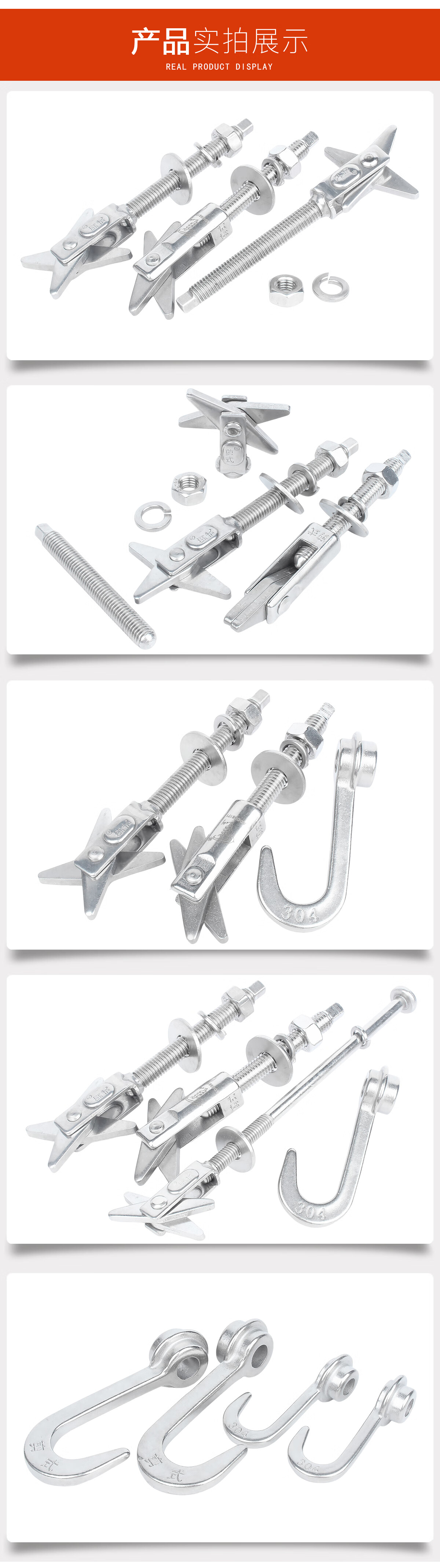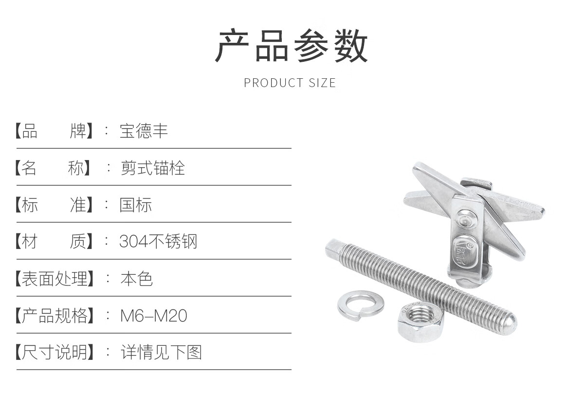 宝德丰304不锈钢剪式锚栓空心砖膨胀螺丝螺栓热水器12挂钩泡沫砖M6M8M10 剪式(A型)M10x180[1个]