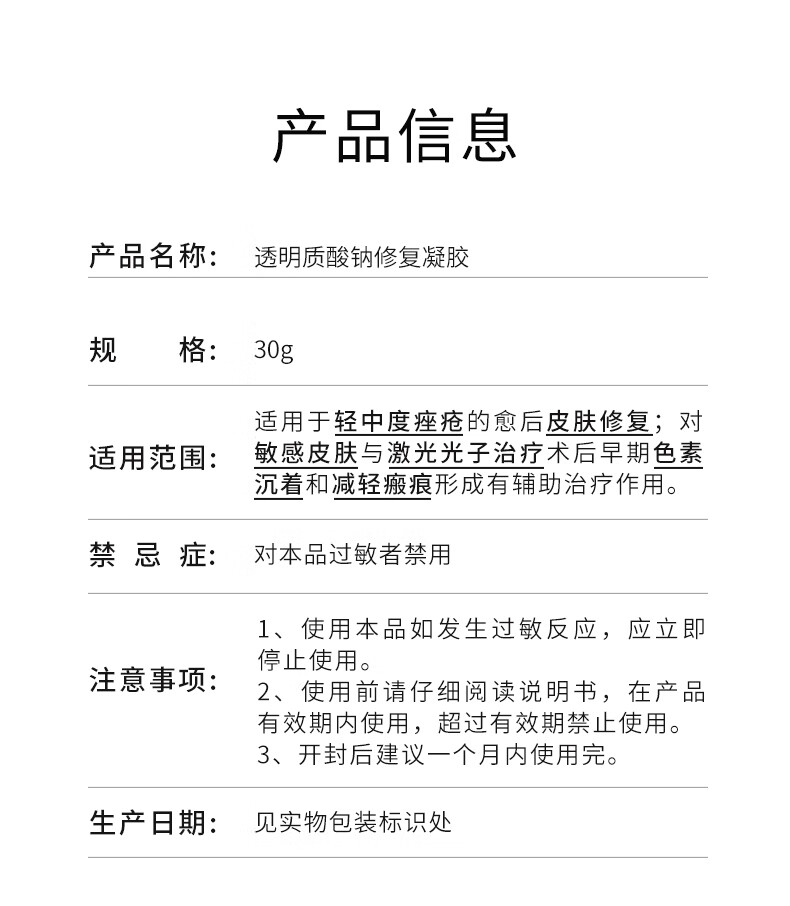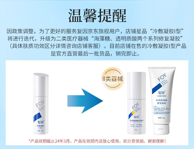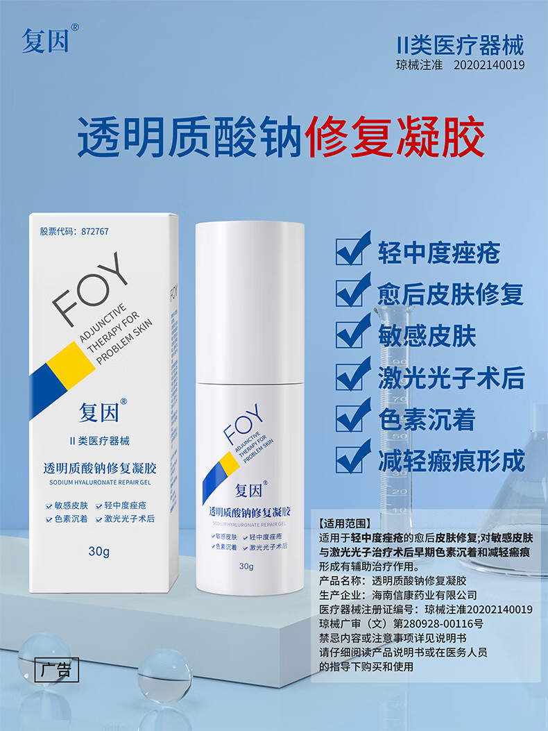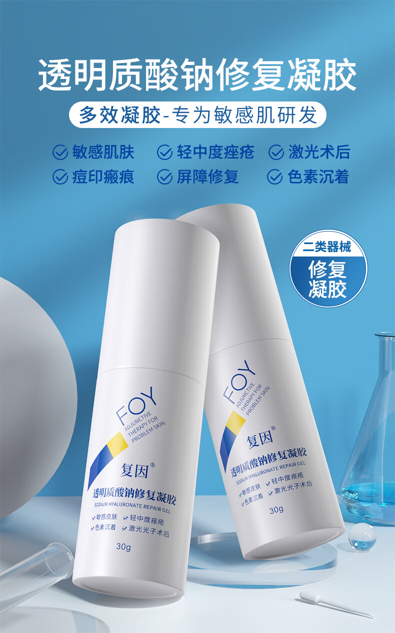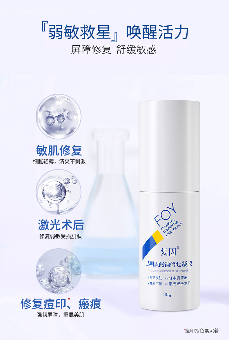复因FOY透明质酸钠修复凝胶皮肤屏障轻中度痤疮肌肤激光术后敏感械字 透明质酸钠修复凝胶30g【京东仓发货】