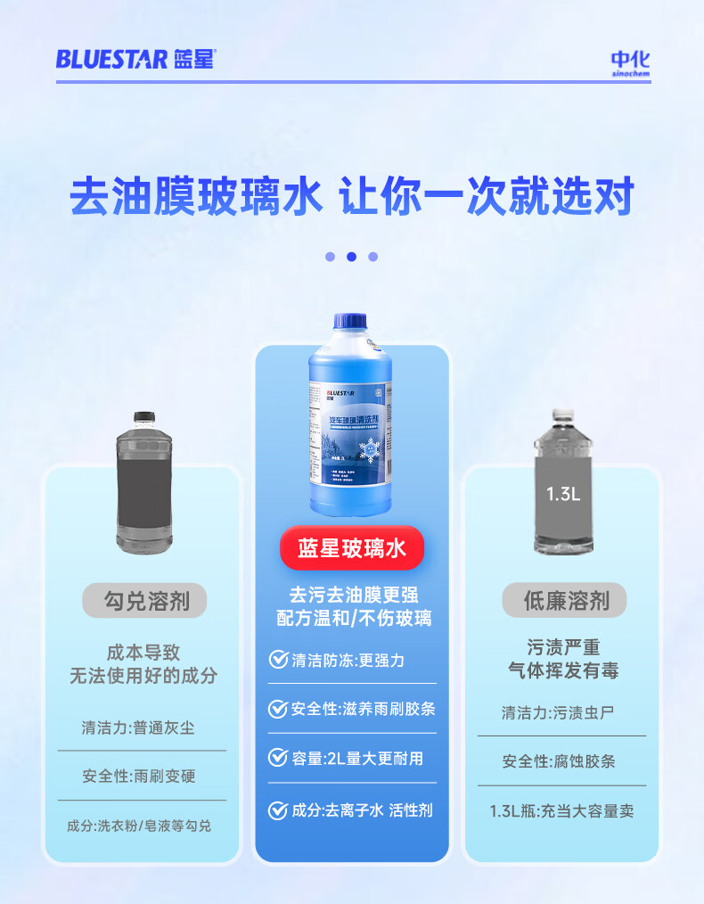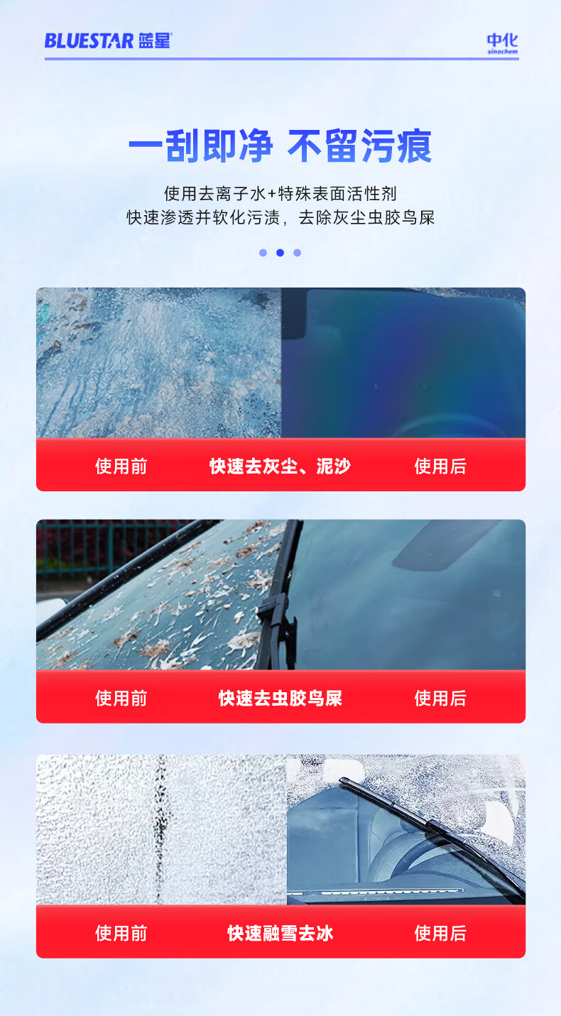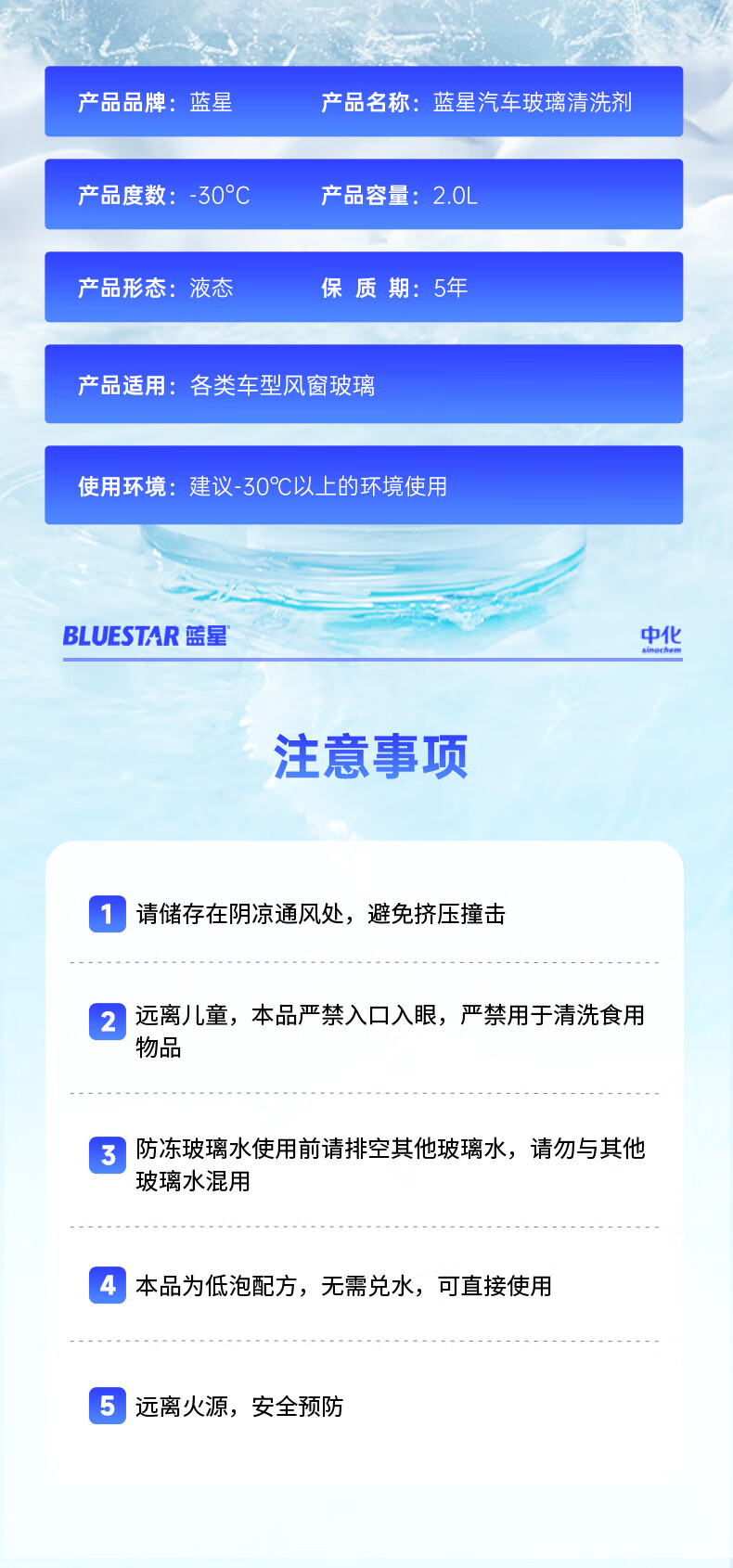 蓝星防冻玻璃水-30度 2L*8瓶 汽车玻璃强力去油膜去污雨刮水四季通用