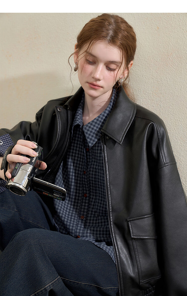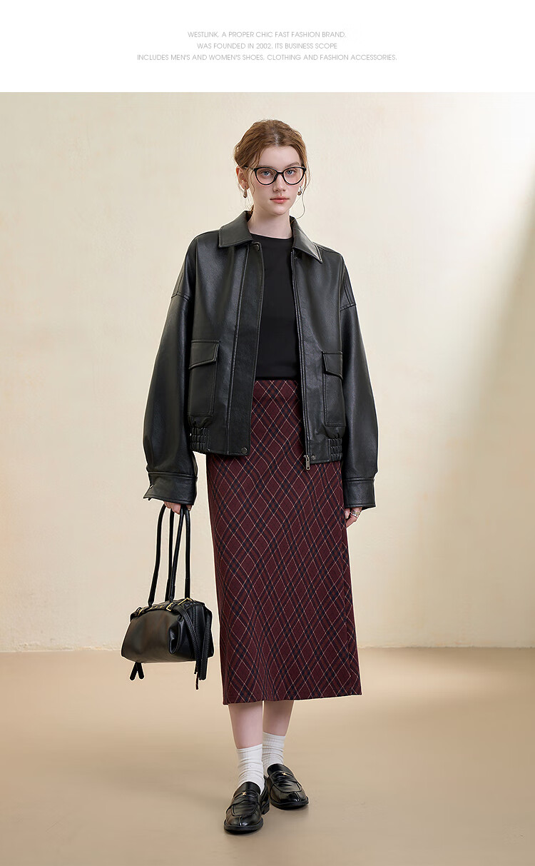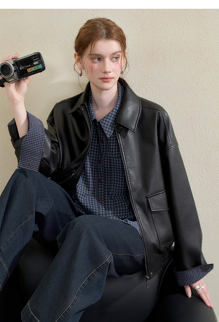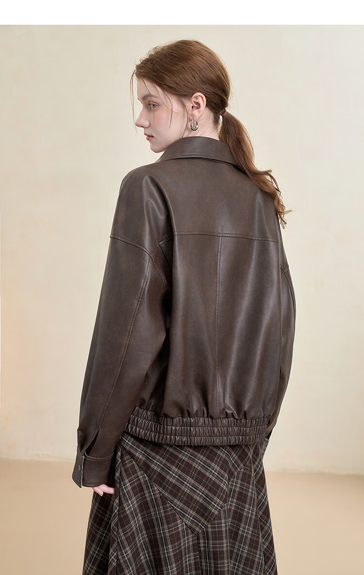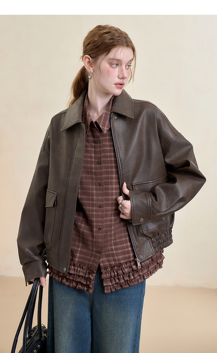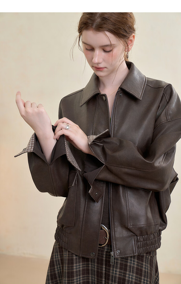 西遇(Westlink)复古休闲摩登质感pu皮夹克外套女秋宽松廓形显瘦机车服 咖色 (预售11月3日) M (160)