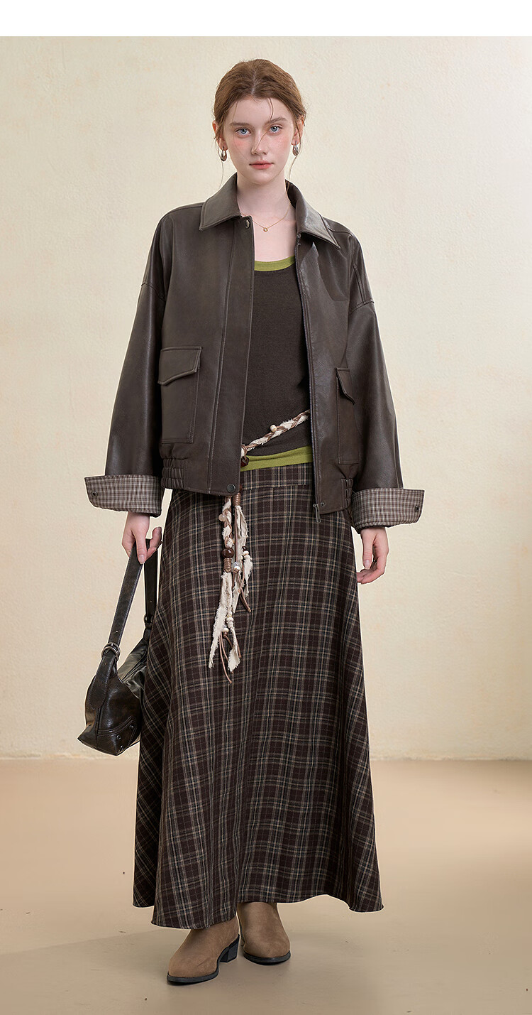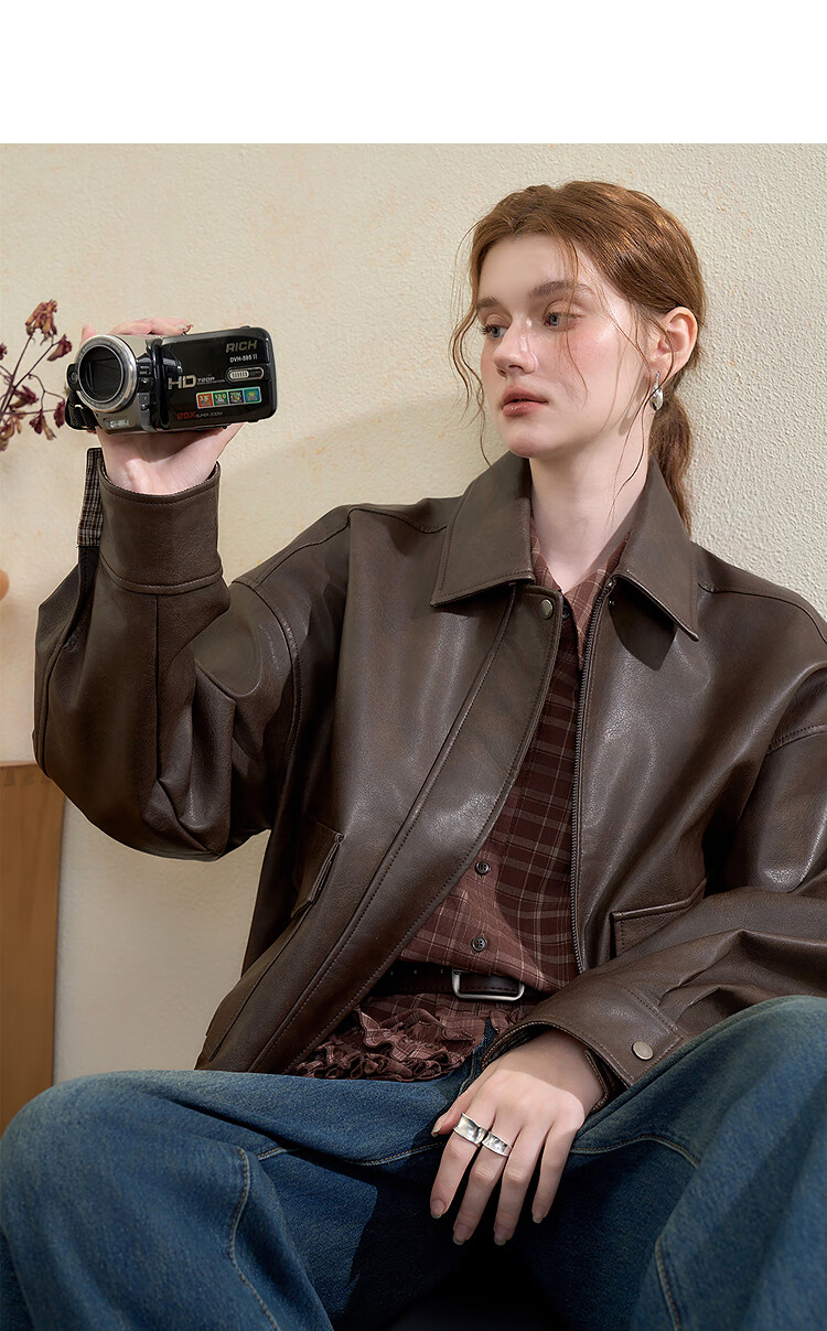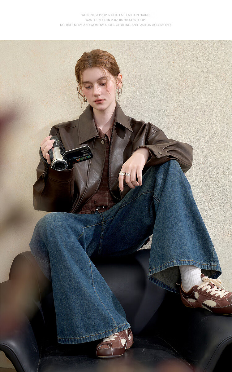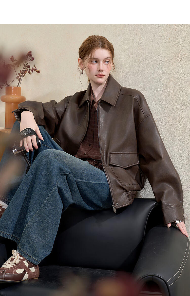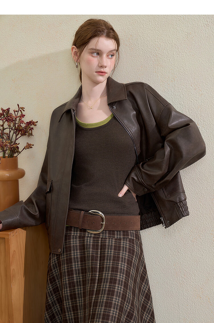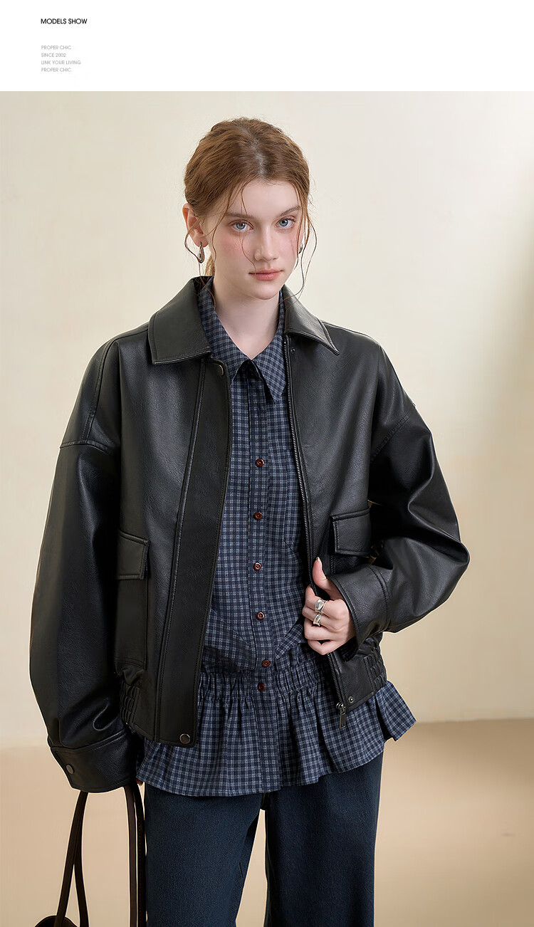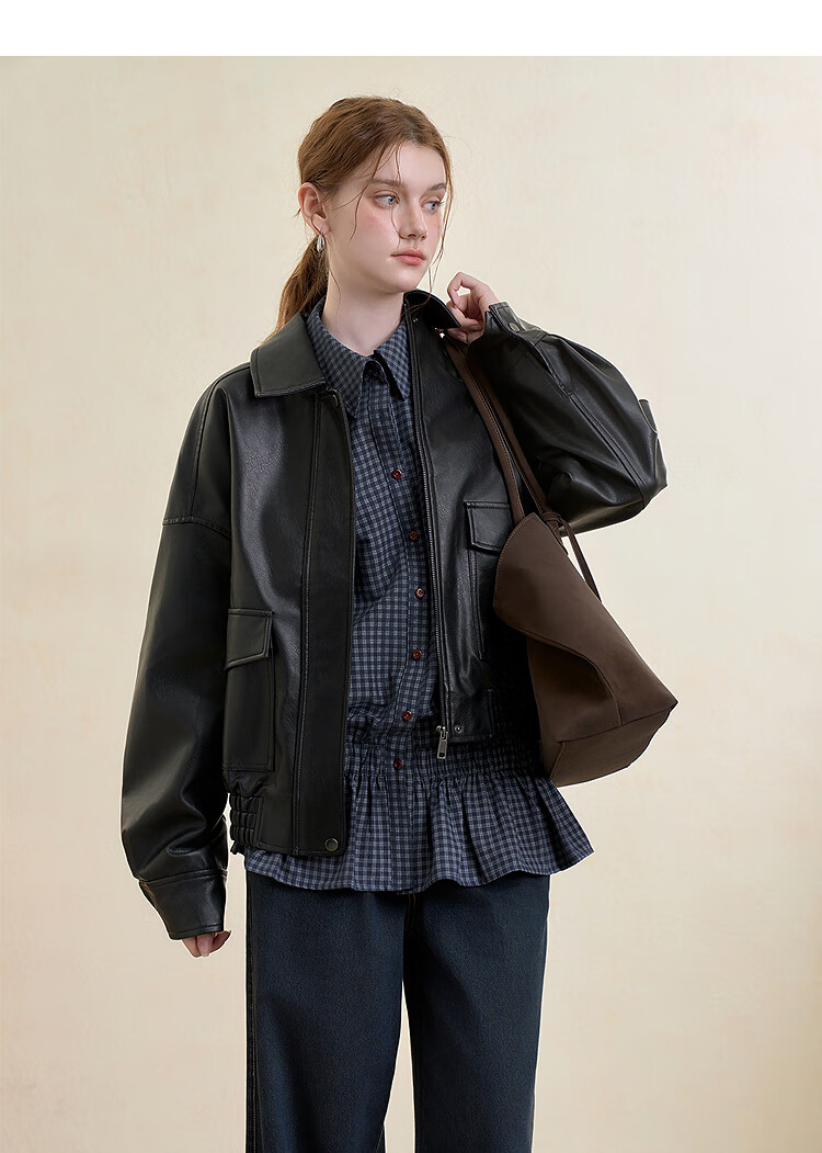 西遇(Westlink)复古休闲摩登质感pu皮夹克外套女秋宽松廓形显瘦机车服 咖色 (预售11月3日) M (160)