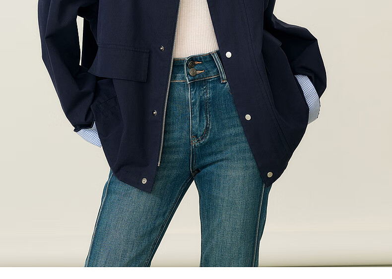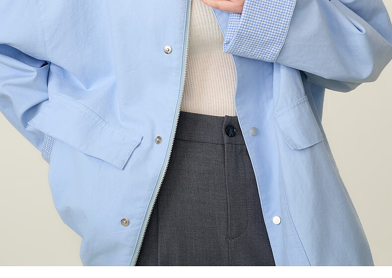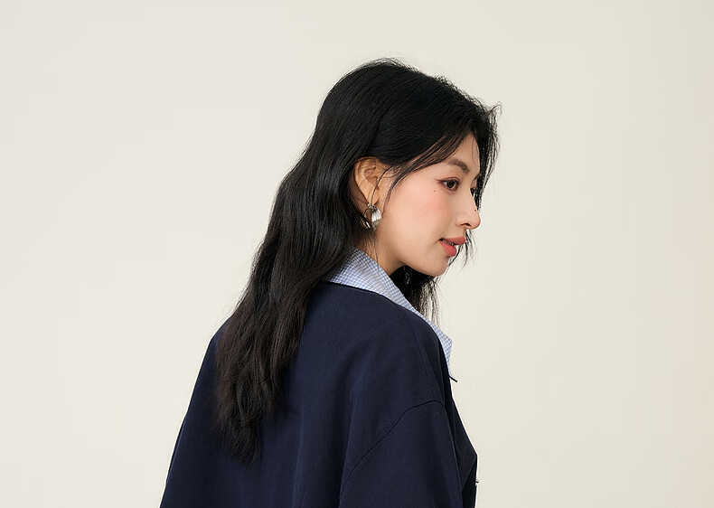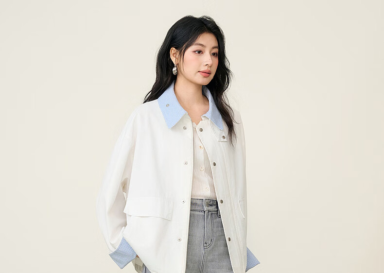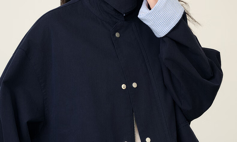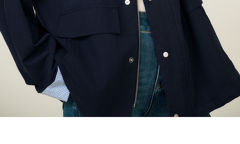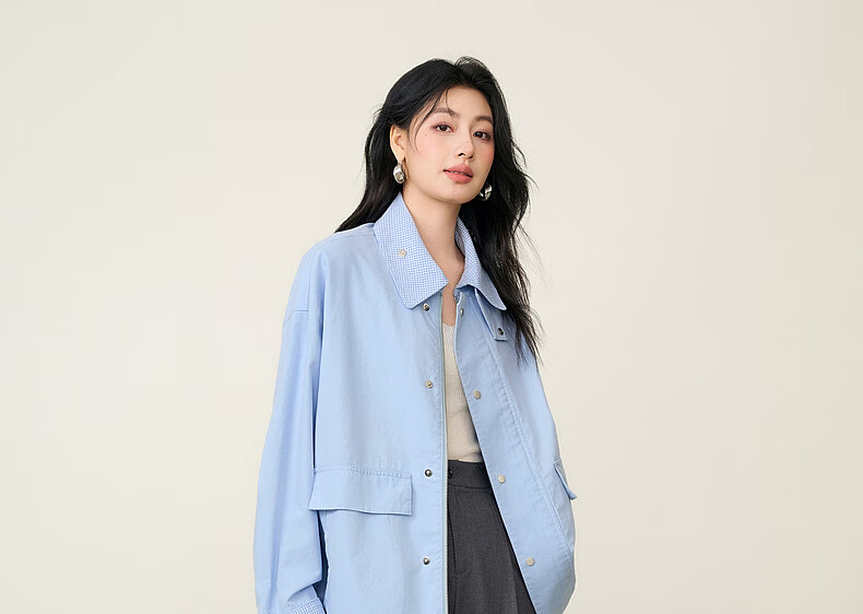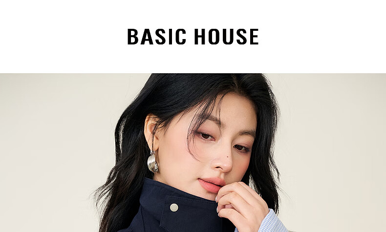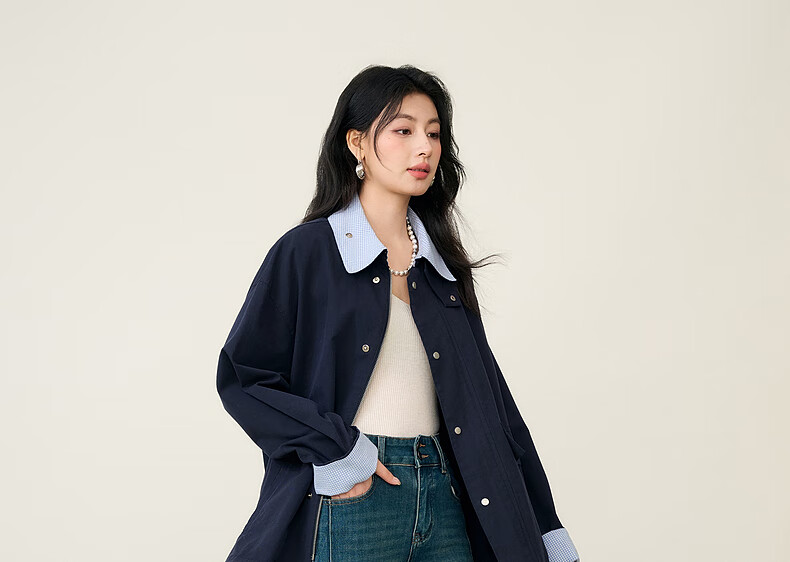 百家好(Basic House)Basic House/百家好2025春季新款撞色百搭宽松气质感翻领长袖衬衫 藏青色 M