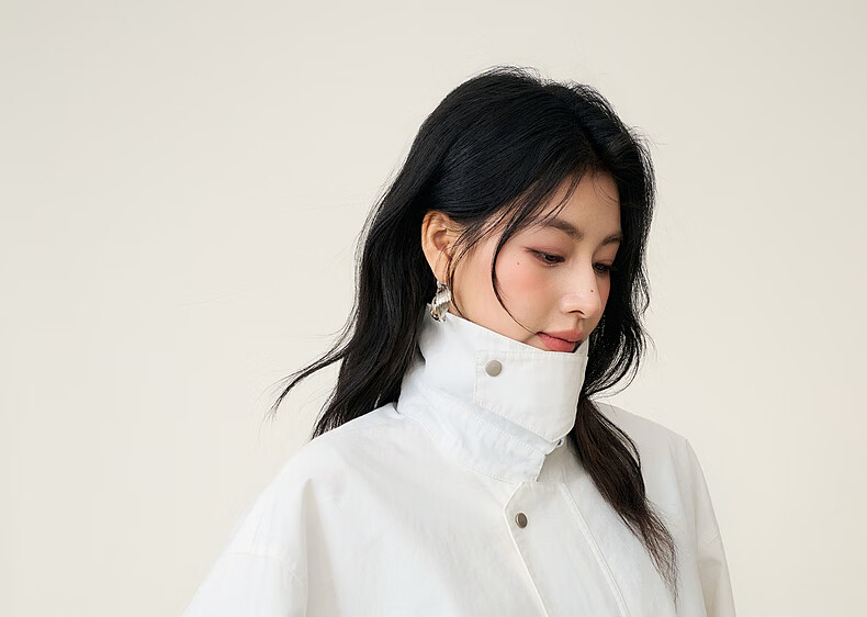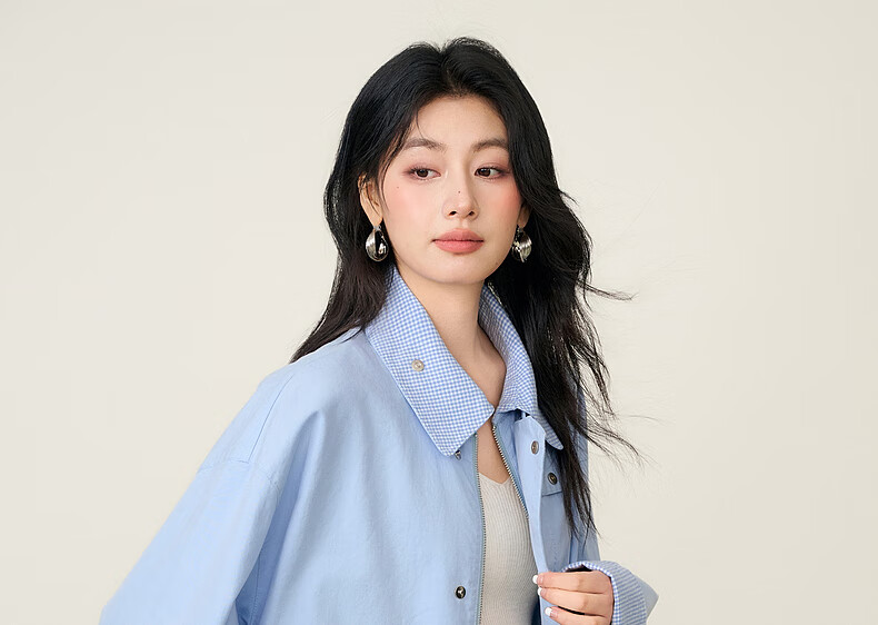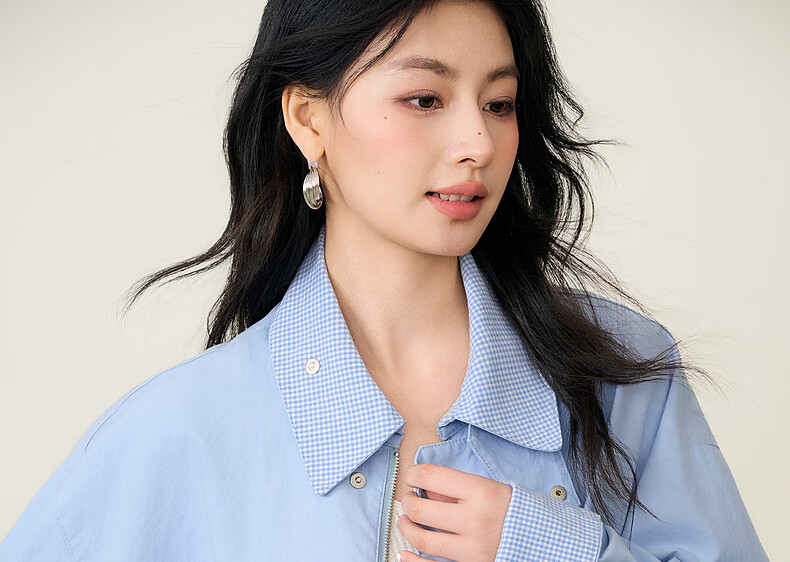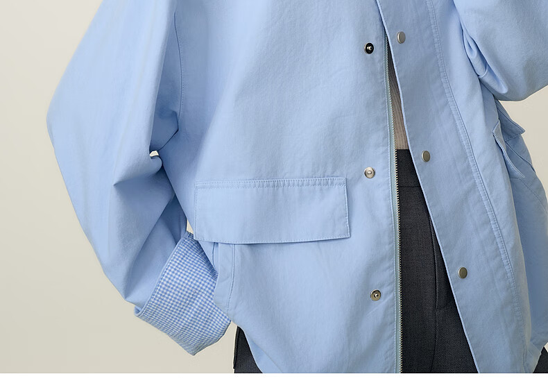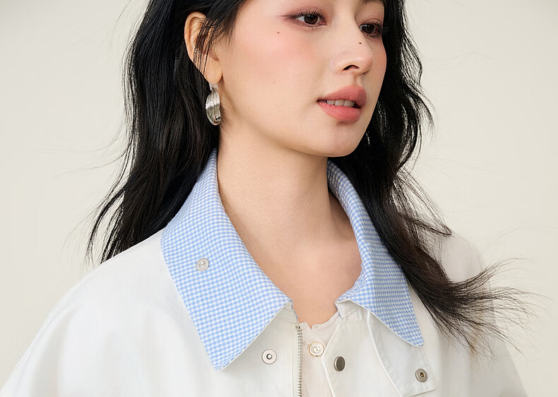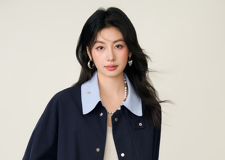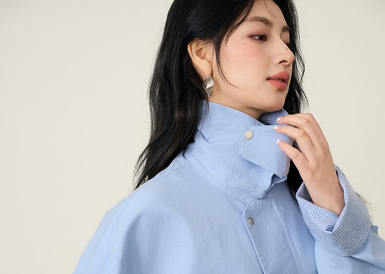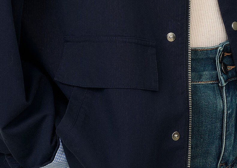 百家好(Basic House)Basic House/百家好2025春季新款撞色百搭宽松气质感翻领长袖衬衫 藏青色 M