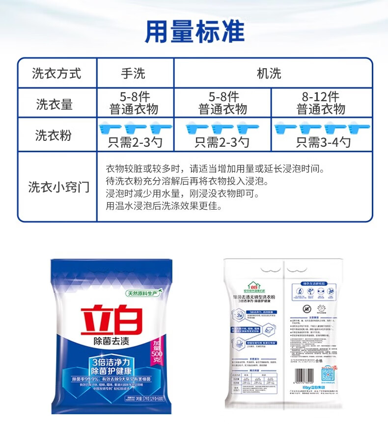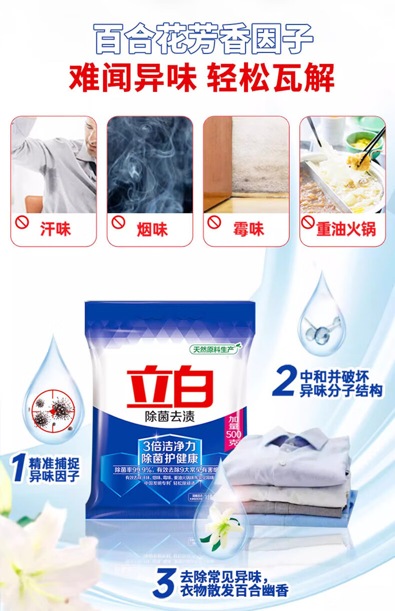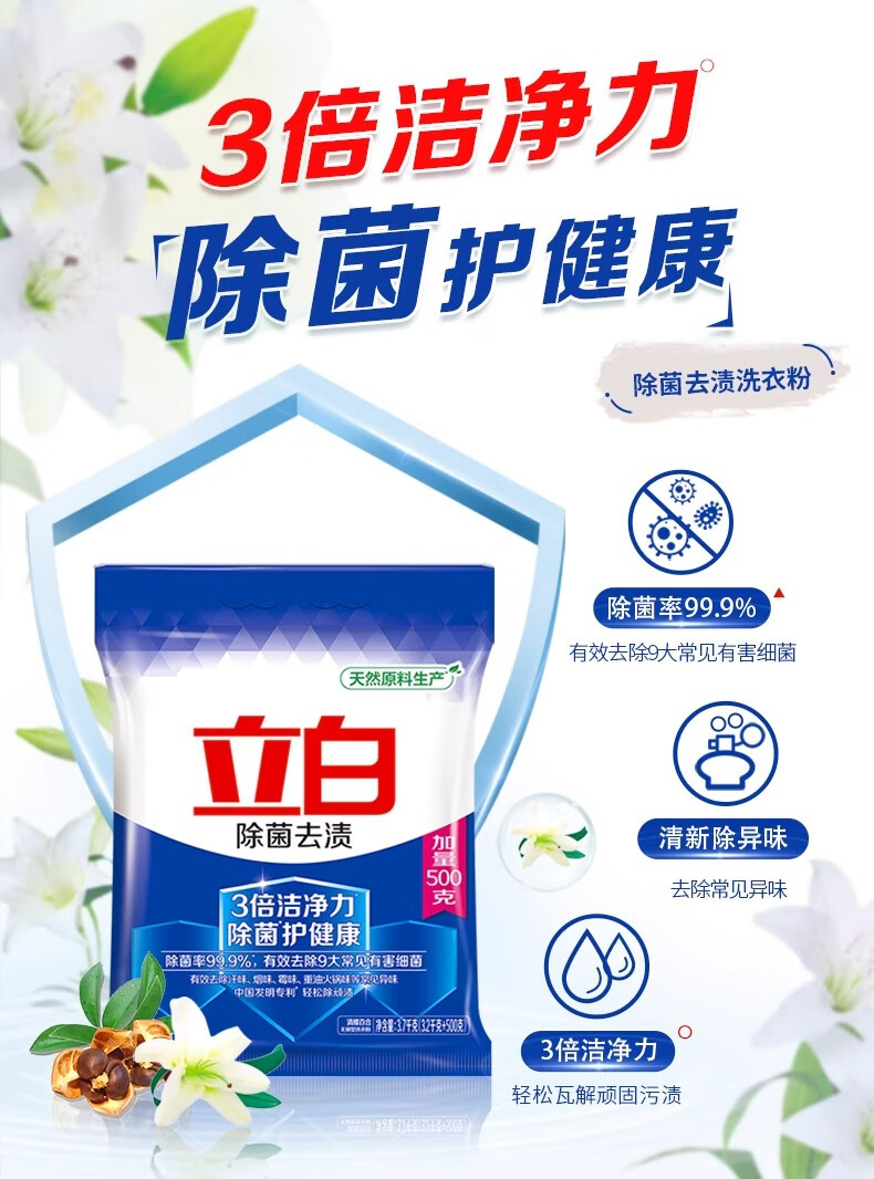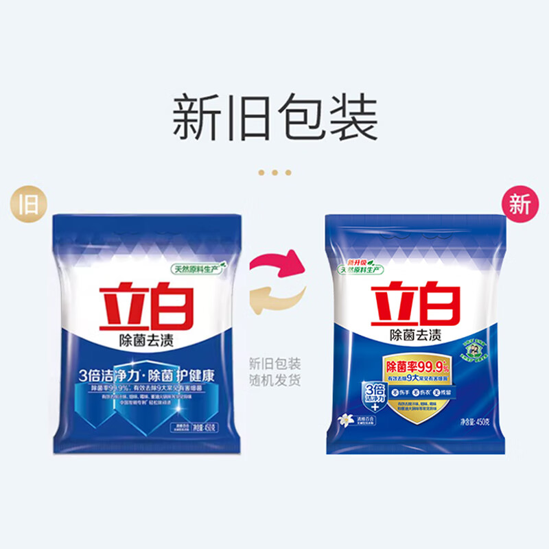 立白除菌去渍洗衣粉浓缩持久留香家用小袋家庭装实惠装大包装洗衣用 试用装【共45O克*1袋/+