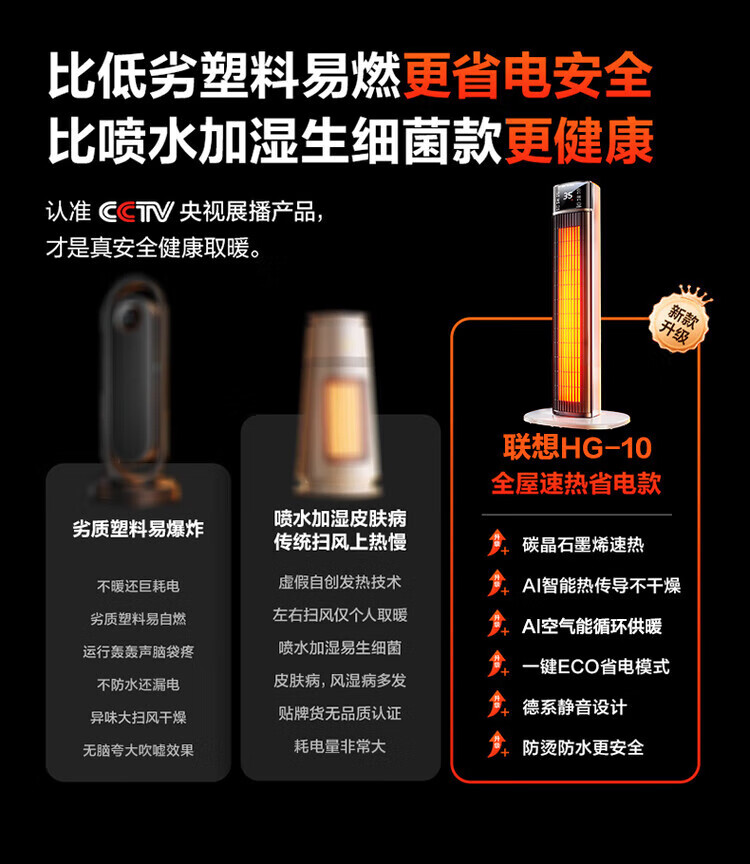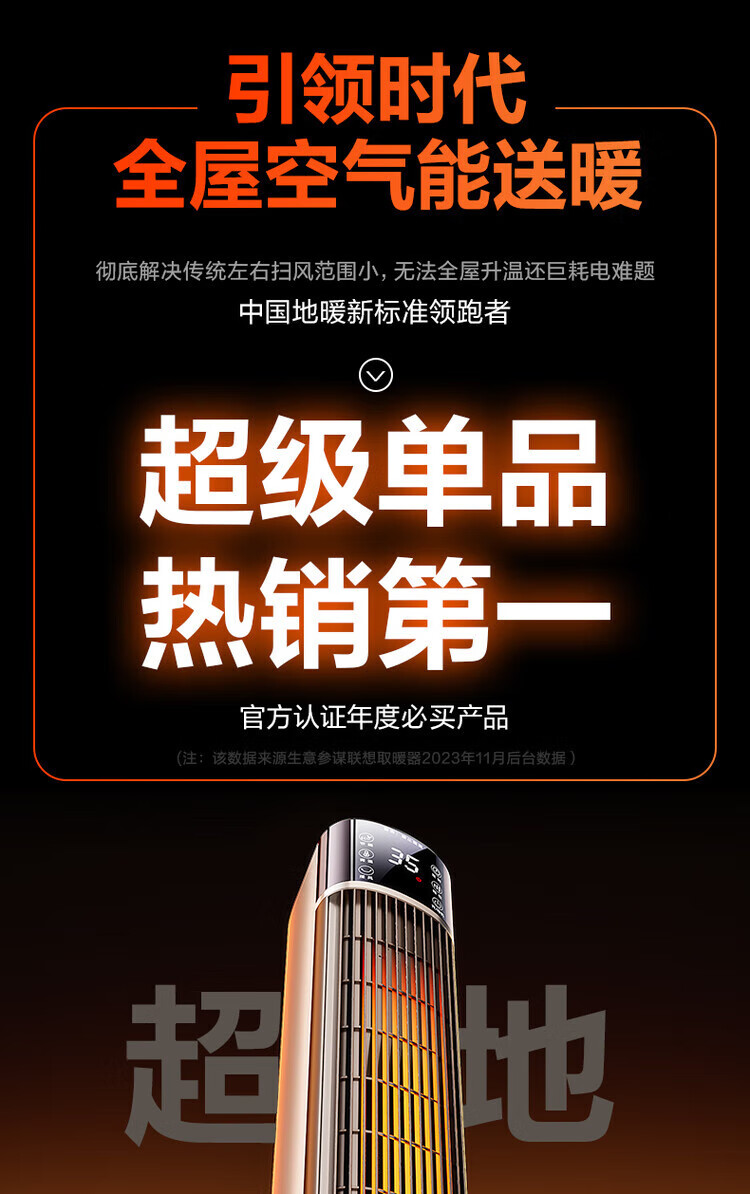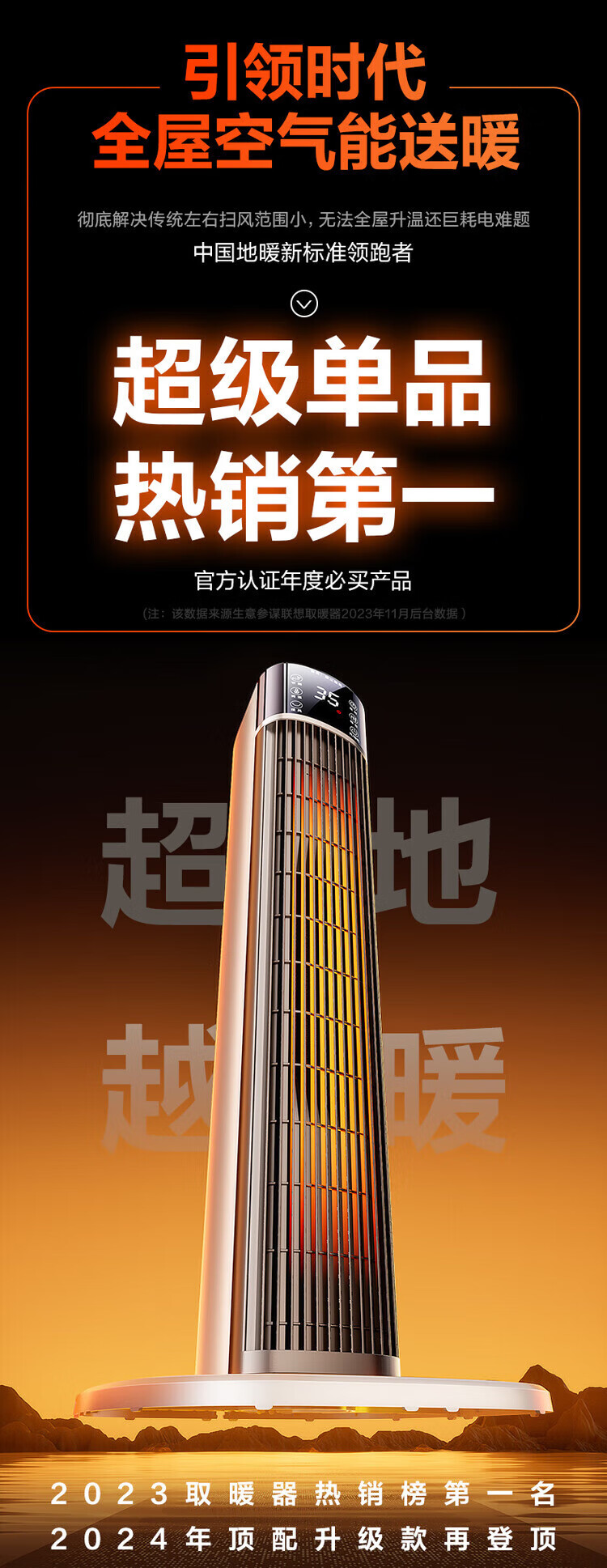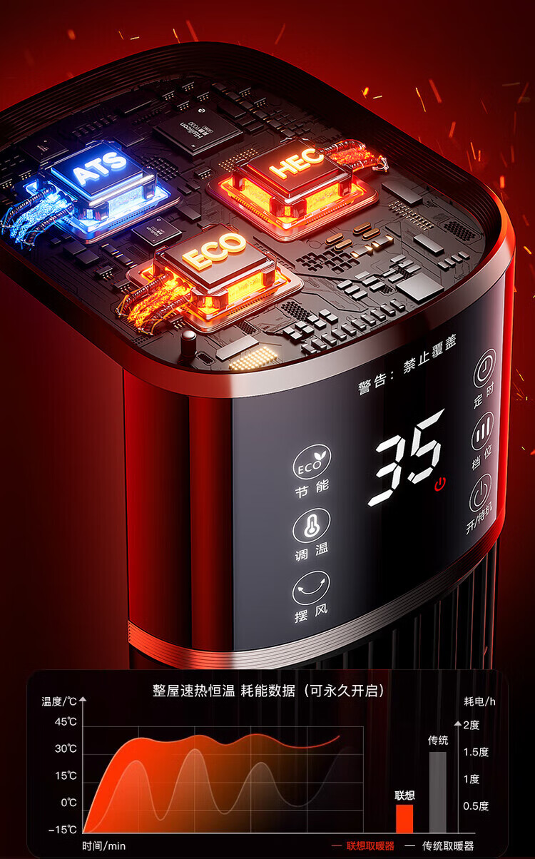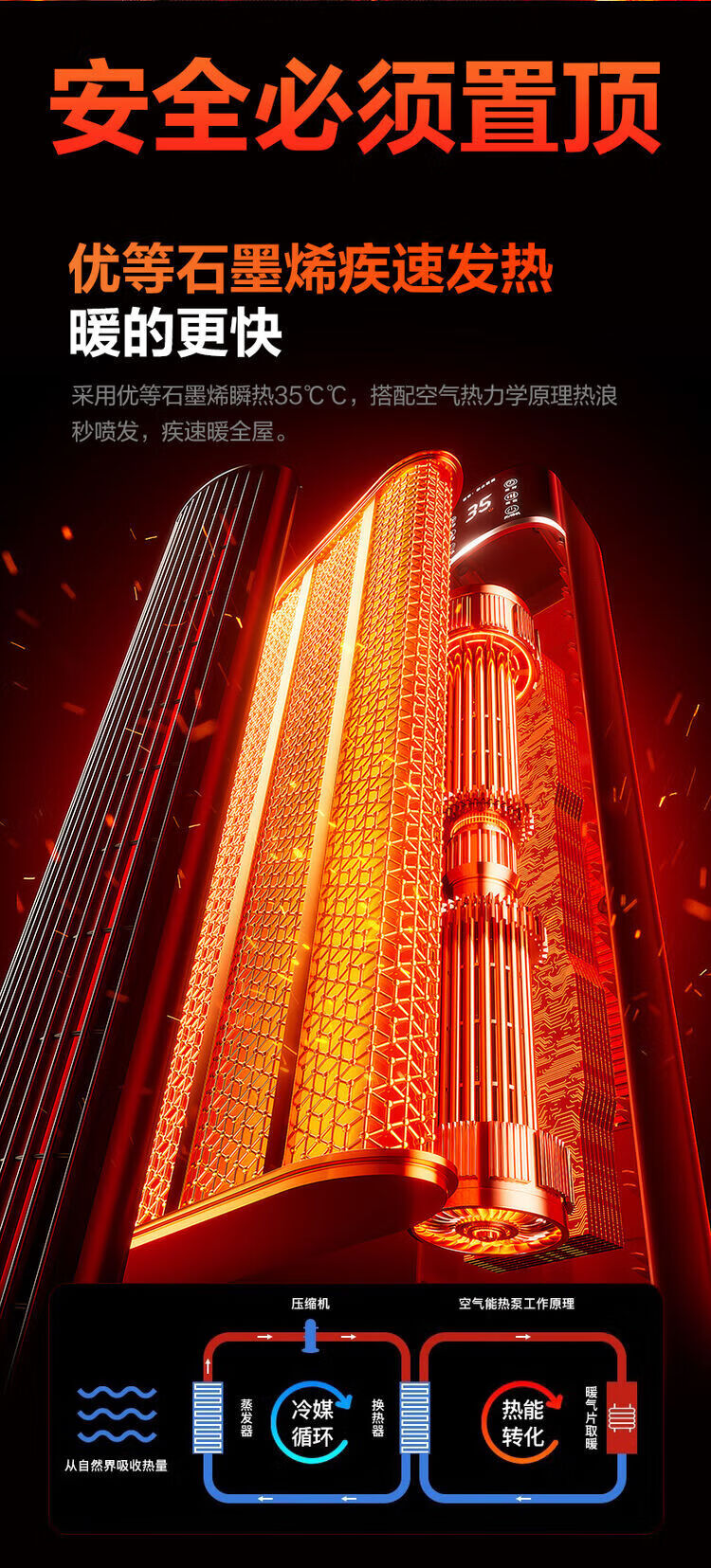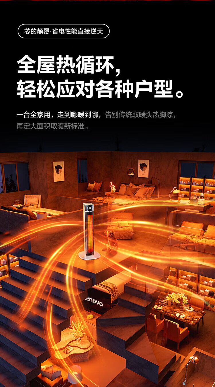 联想【AI双石墨烯速热丨远超一级省电】暖风机取暖器50大面积全屋速热家用电热小太阳取暖神器电暖器 【超一级能效】45℃石墨烯-3秒升温-负离子净化 联想2025首发丨双核石墨烯丨贵但碾压空调地暖