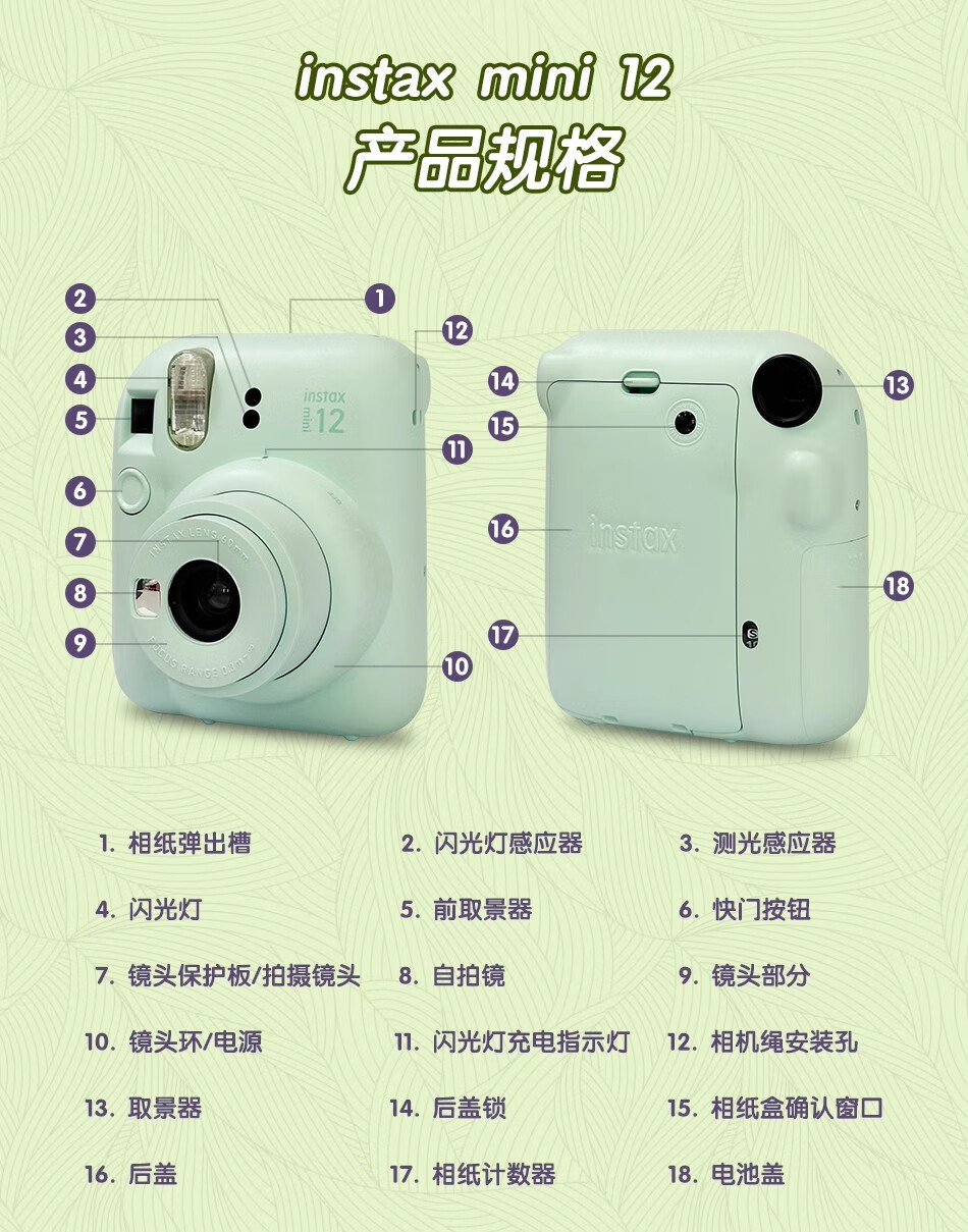 富士立拍立得mini12一次成像相机 mini11/7/9升级款 相纸旅游拍照学生送礼物 mini12蓝现货速发 官配(不含相纸)