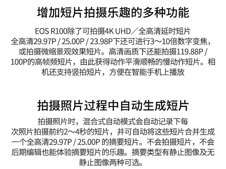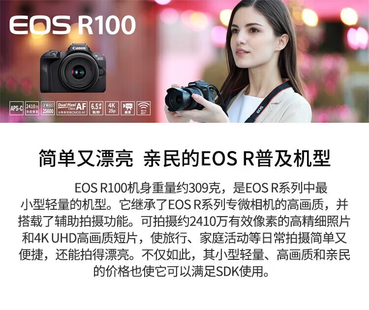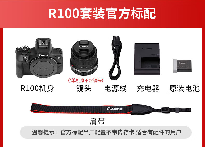 佳能(Canon)r100微单相机 4K数码高清旅游vlog视频 R100学生入门级微单 R100 18-45 STM套机【日常热款】 官方标配【不含内存卡基础配件 推荐购买套餐】