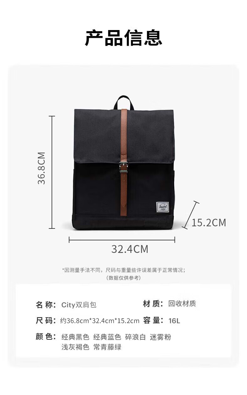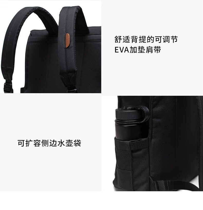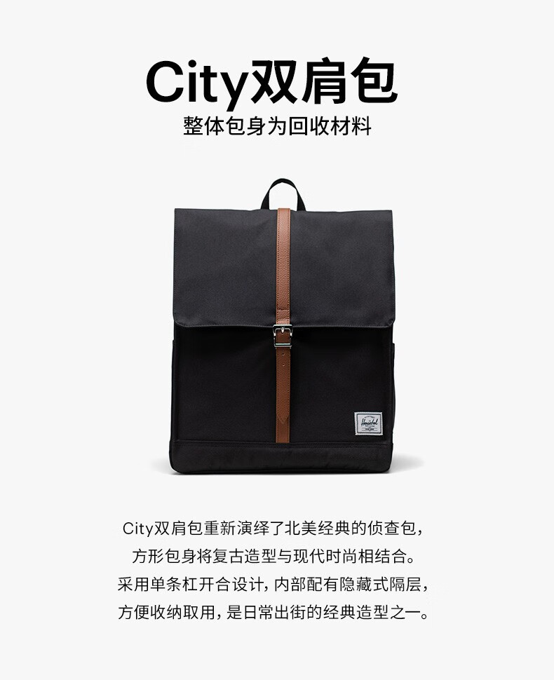 Herschel加拿大赫行 经典系列City双肩包方形通勤电脑背包书包 经典黑色