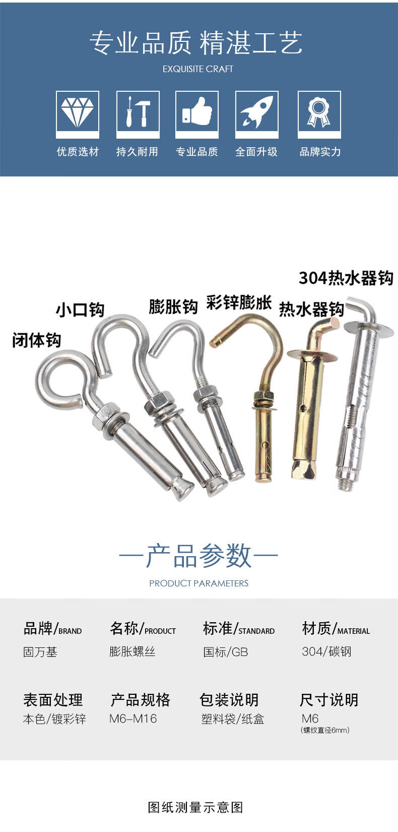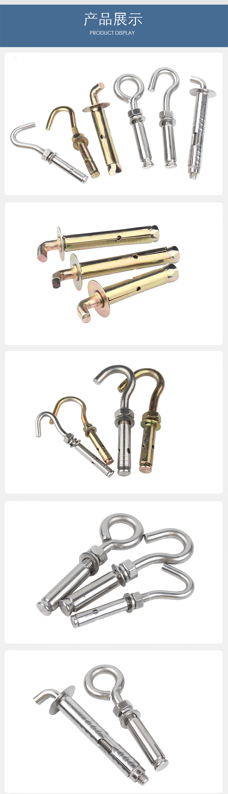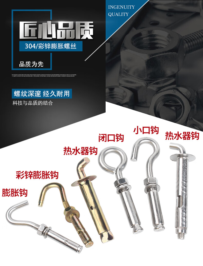 固万基 304不锈钢吊环膨胀挂钩螺丝大全万能热水器膨胀螺栓拉爆紧固件 拉爆钩(钩+弹簧)M8[1只-304]