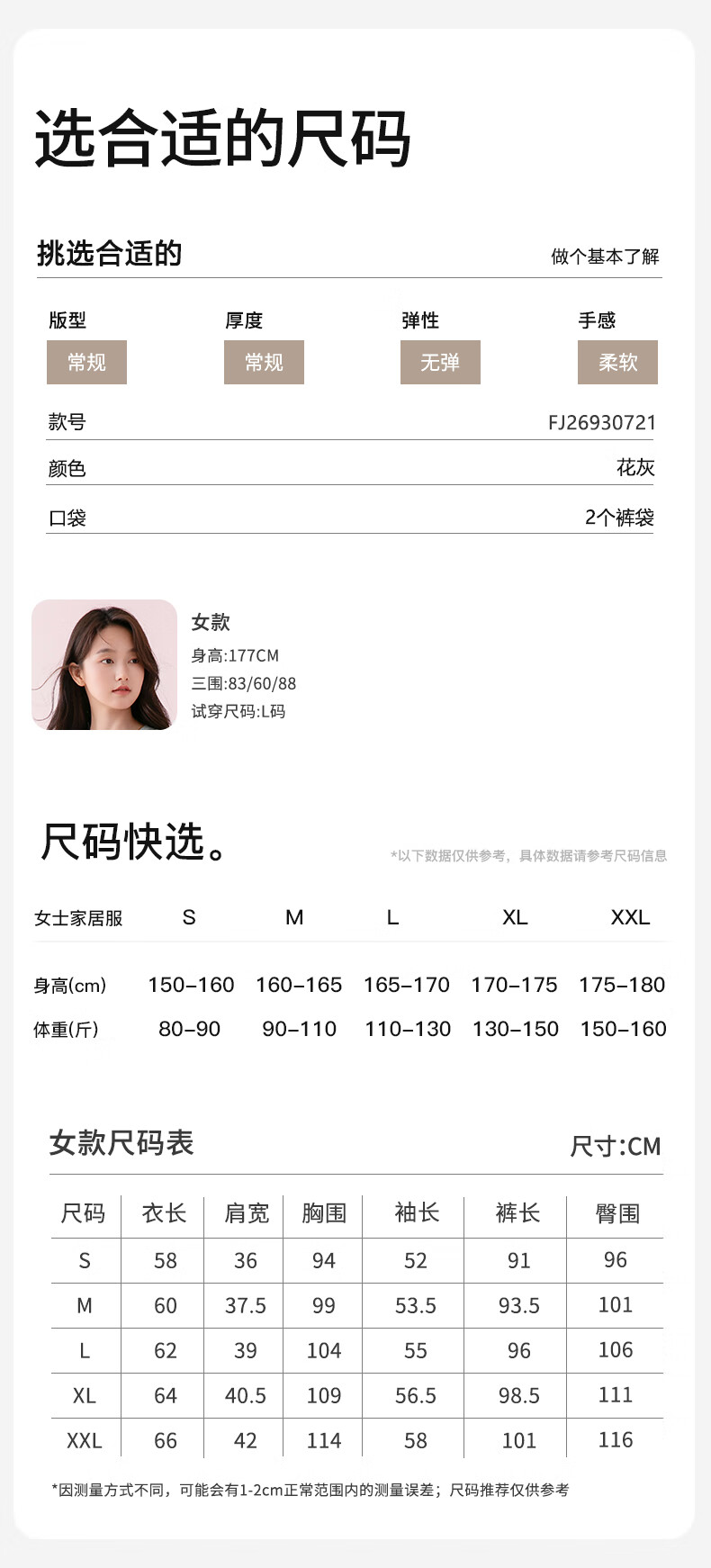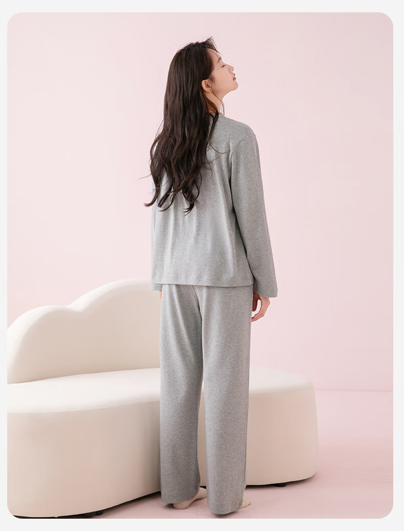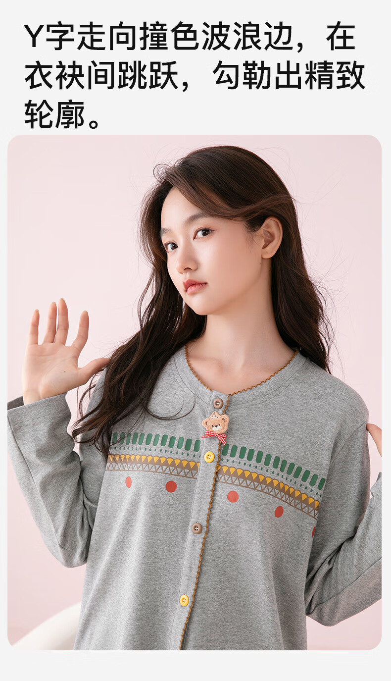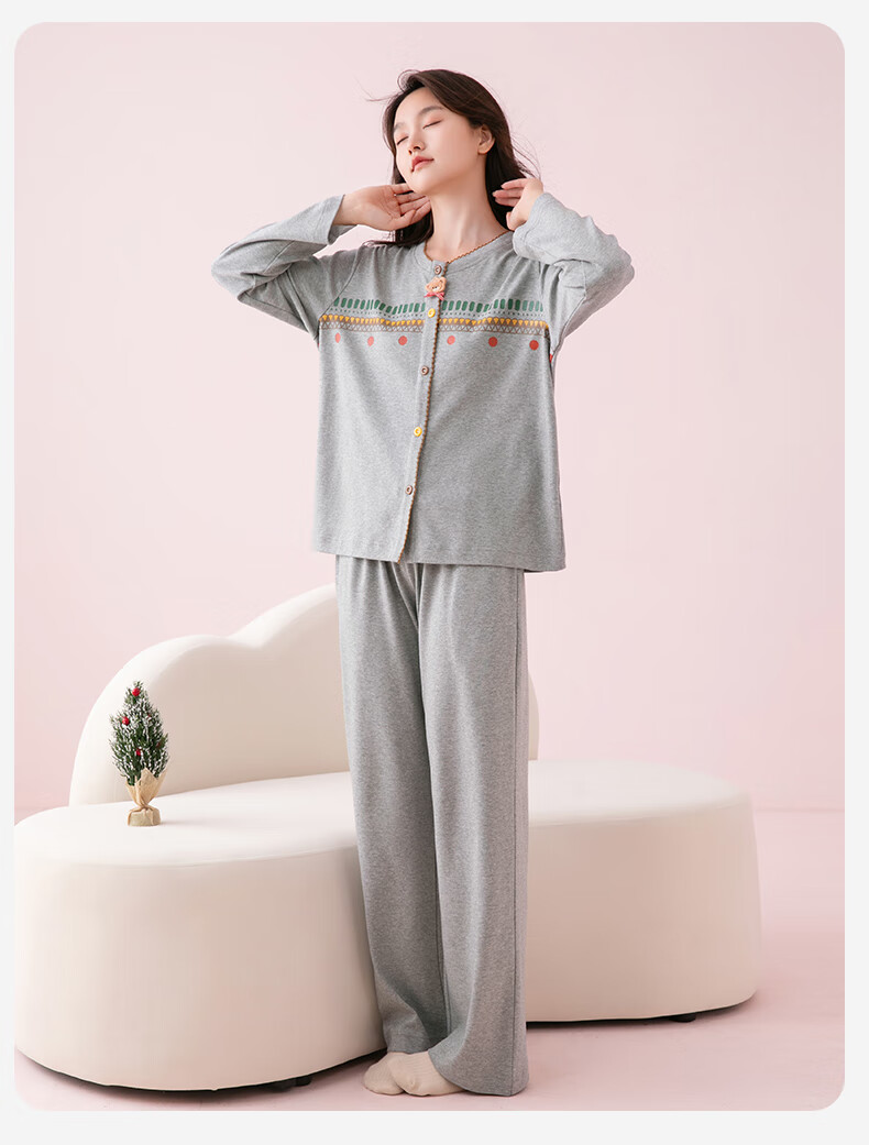 芬腾睡衣女【软棉棉】100%棉2025秋新款防静电家居服费尔岛套装外穿 花灰 M