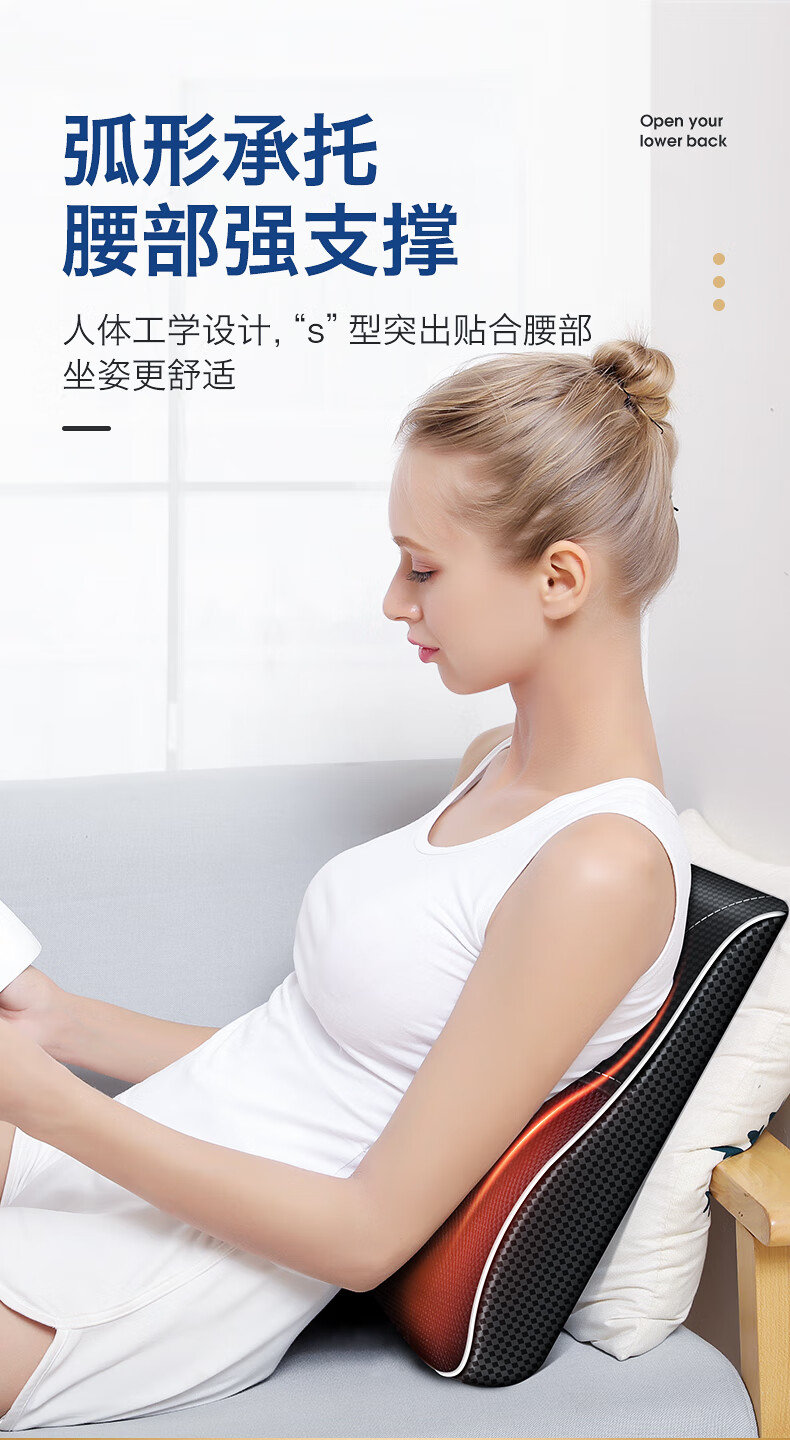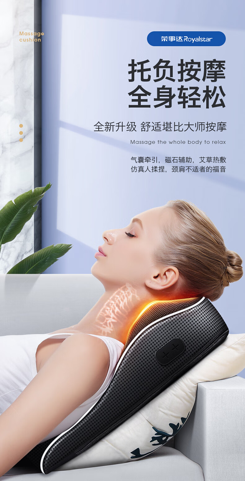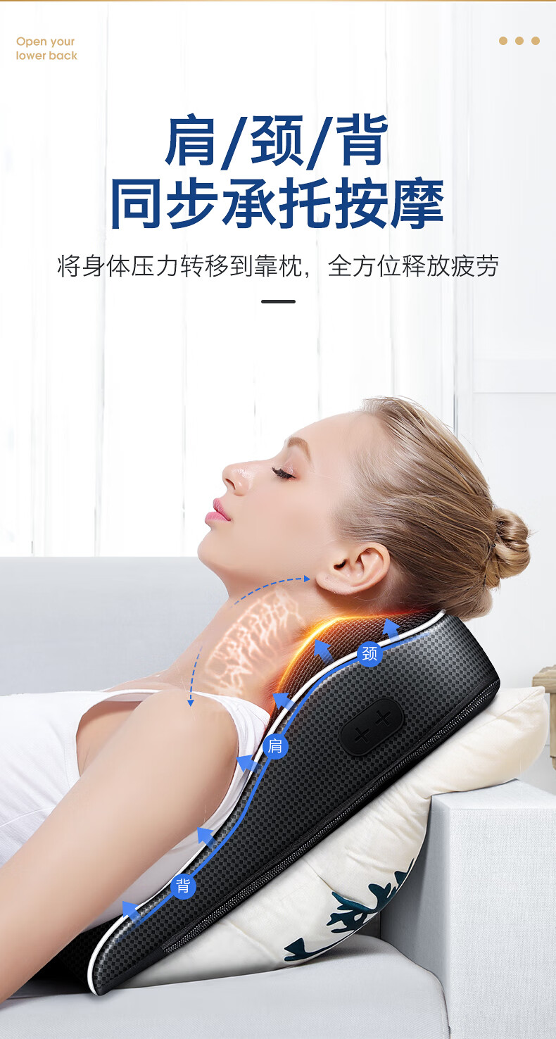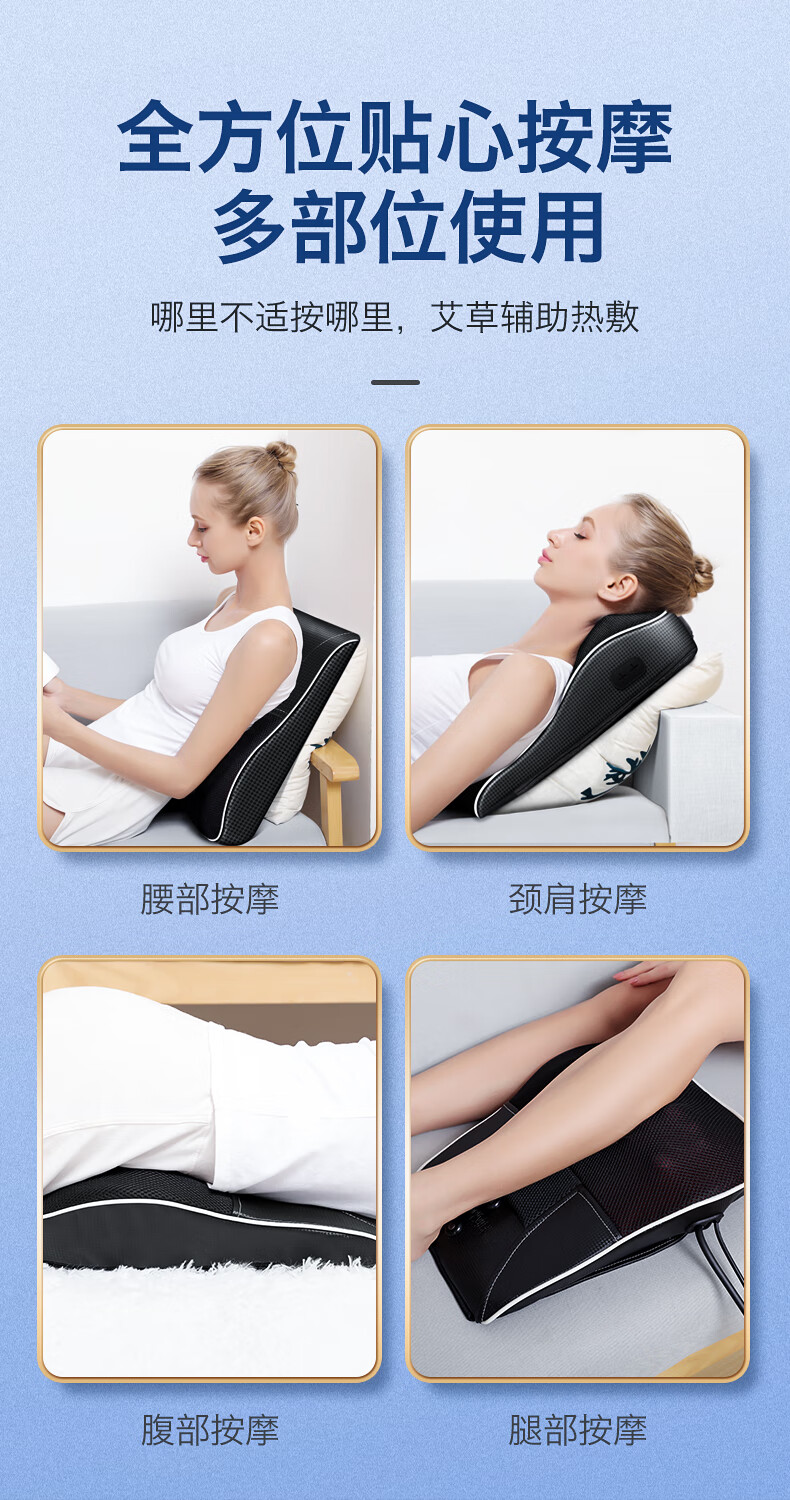 荣事达全方位按摩器枕头多功能颈椎按摩仪颈部腰部背部功能腰椎靠垫全身电动肩部揉捏枕全身揉捏靠垫 【旗舰款】升级电机高频按摩+三档调节8D包裹+艾灸