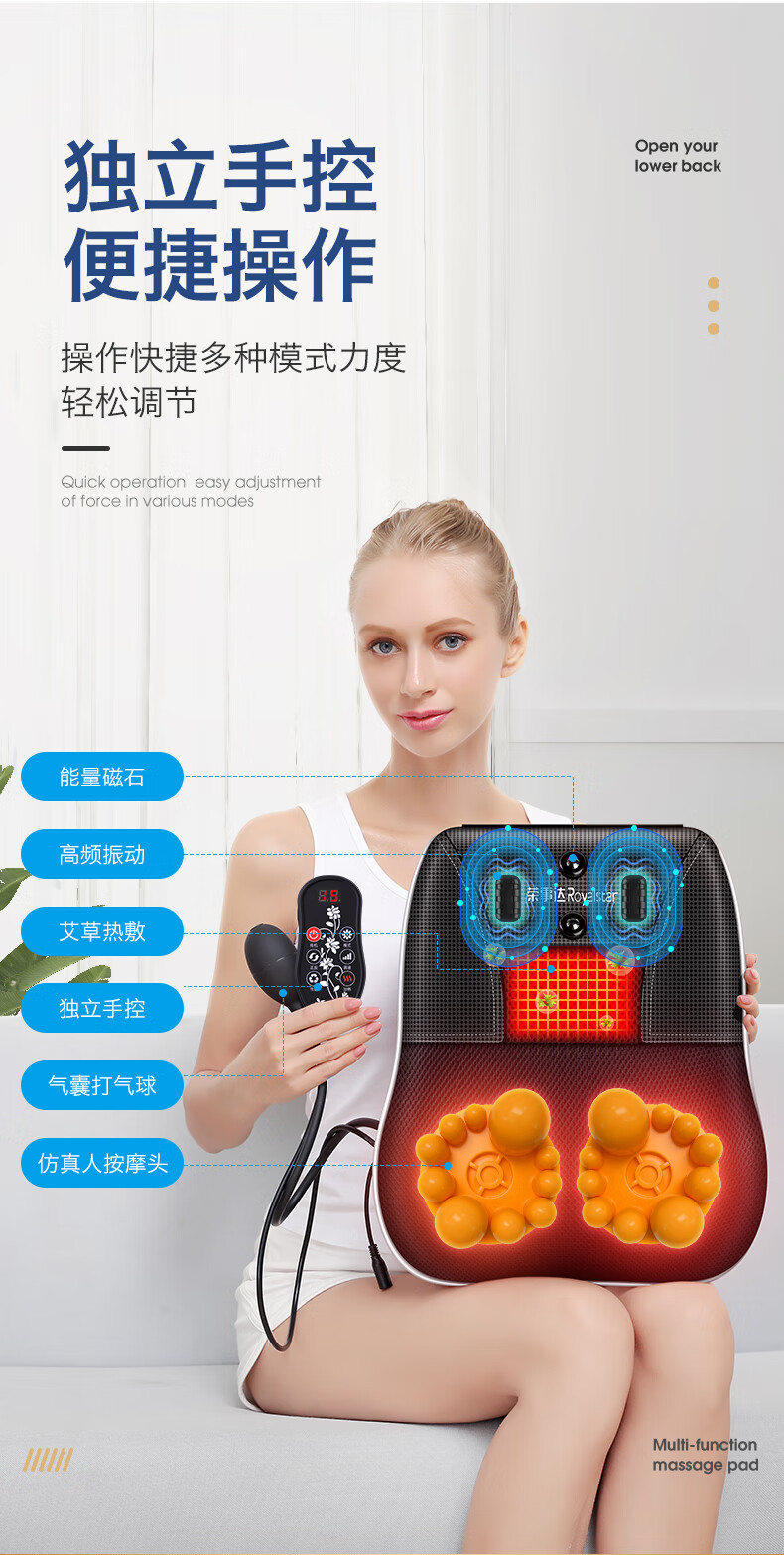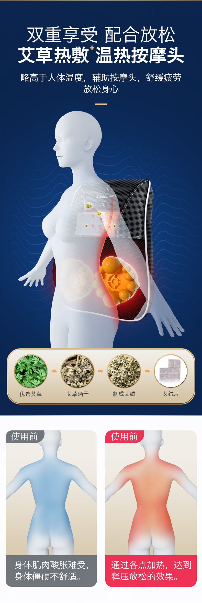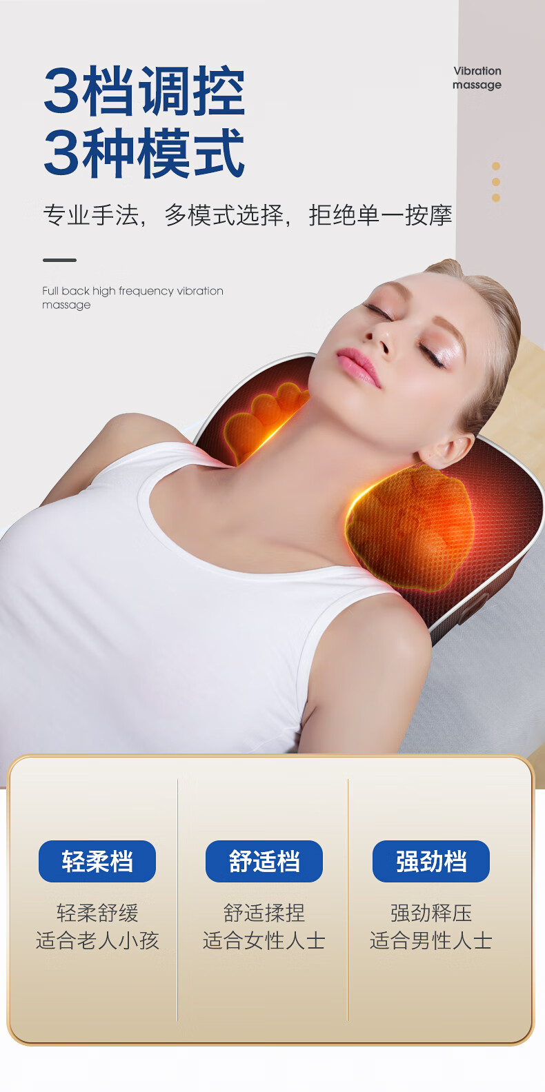 荣事达全方位按摩器枕头多功能颈椎按摩仪颈部腰部背部功能腰椎靠垫全身电动肩部揉捏枕全身揉捏靠垫 【旗舰款】升级电机高频按摩+三档调节8D包裹+艾灸