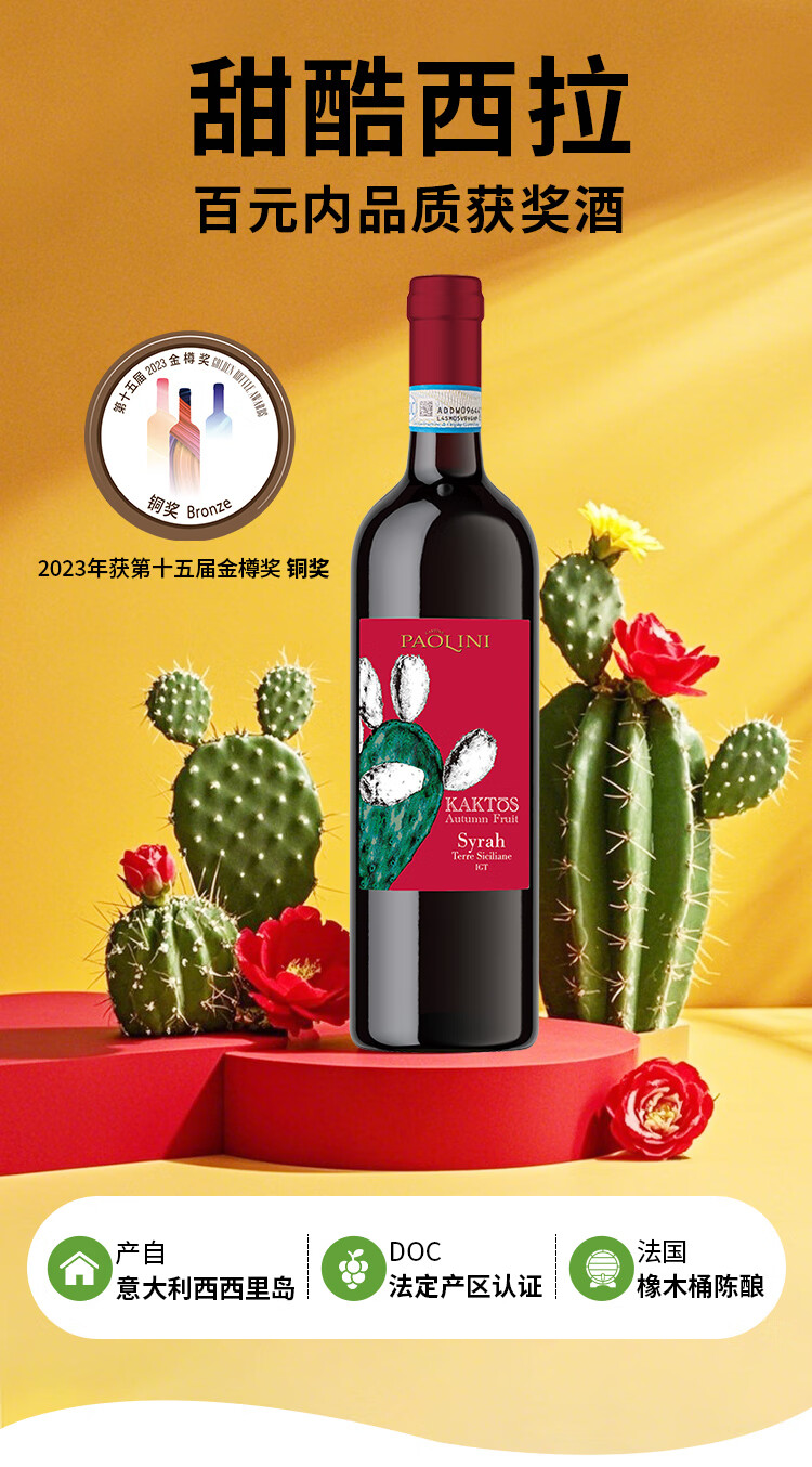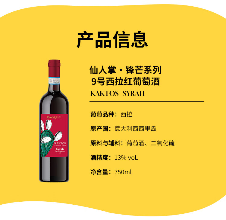 KAKTOS仙人掌【锋芒系列】西拉干红酒 意大利 热门商品 750ml 新老随机