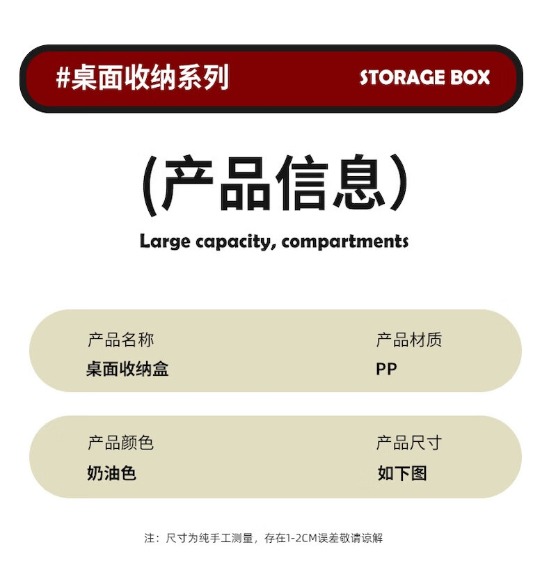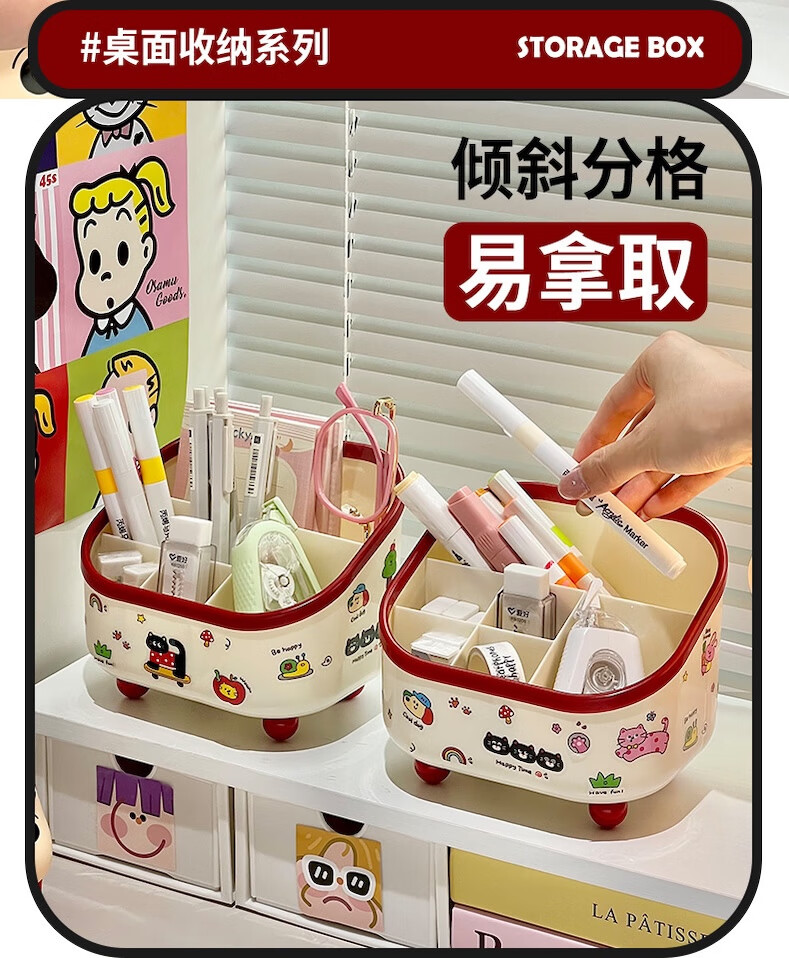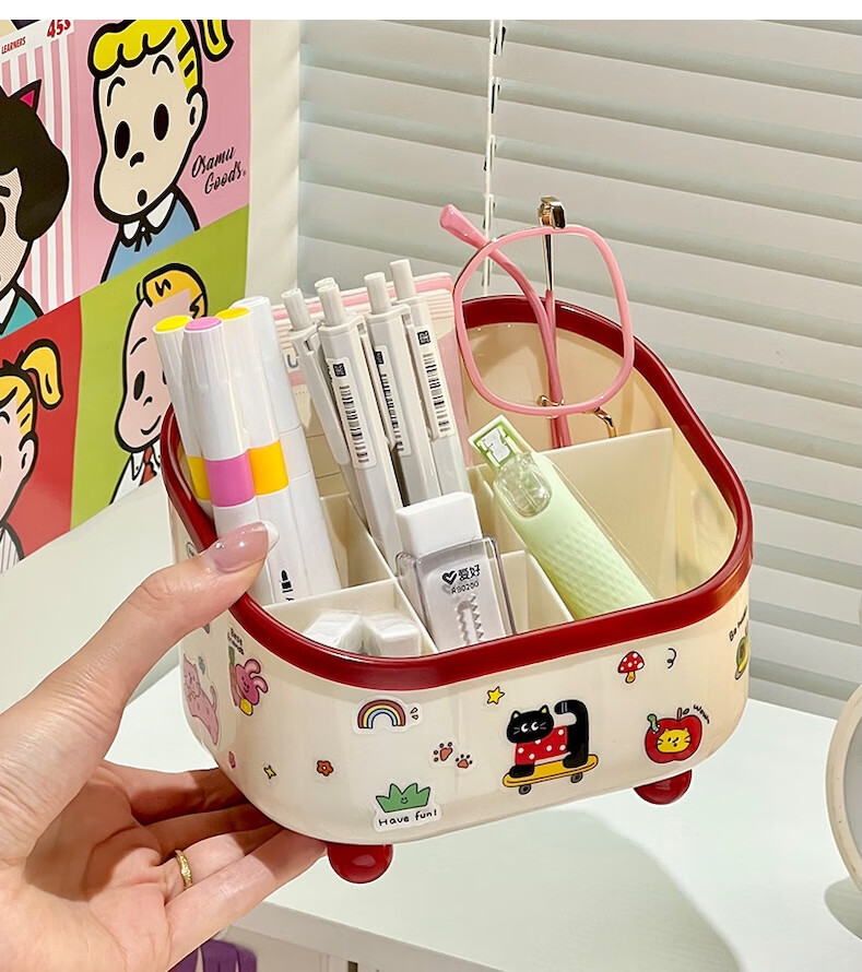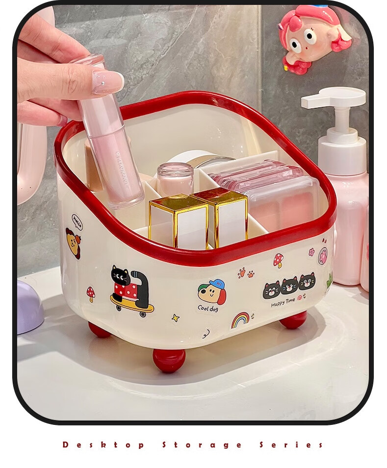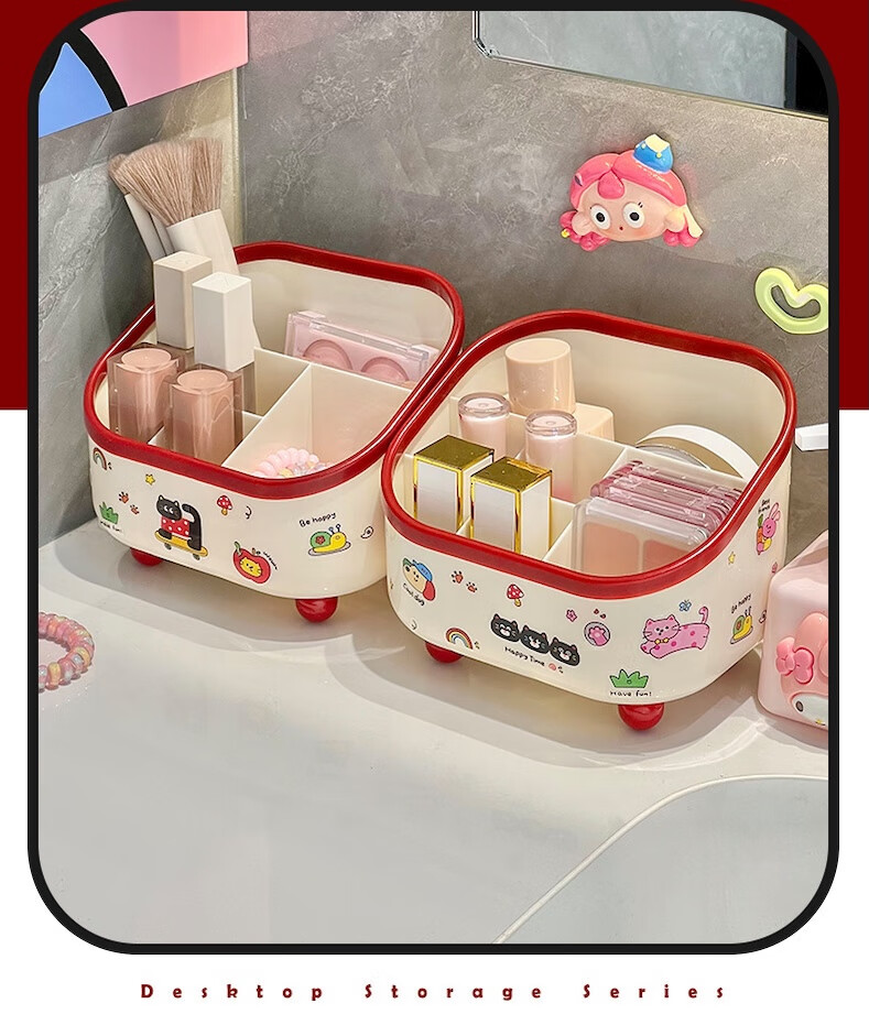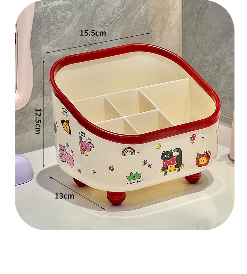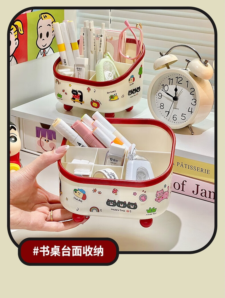 桌面收纳盒桌上多巴胺盒子客厅分格储物办公室置物收纳笔筒小盒子 桌面收纳盒【送贴纸】 15.5*13*12.5cm 奶油色 1个