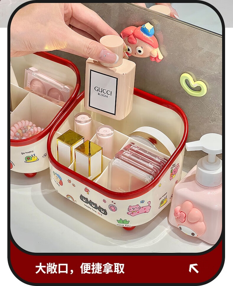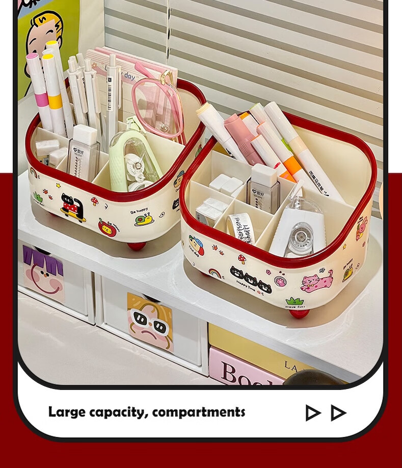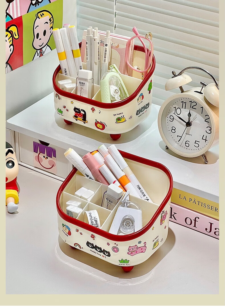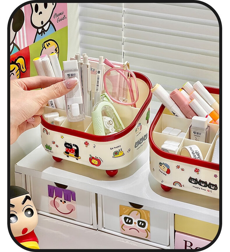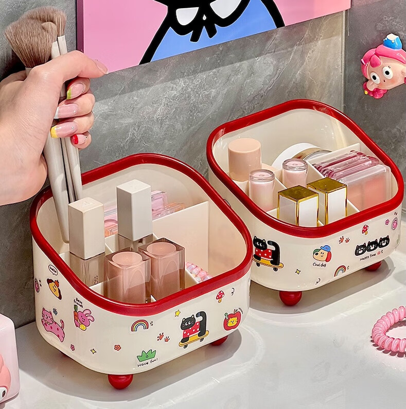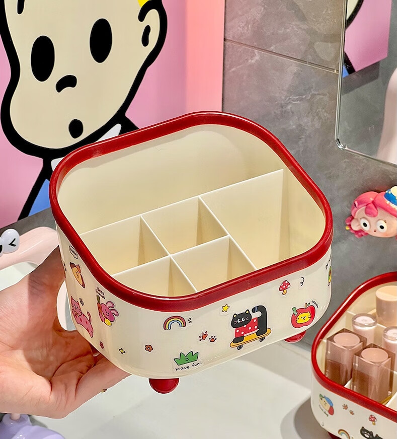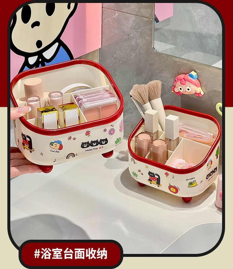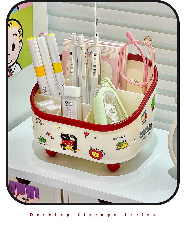 桌面收纳盒桌上多巴胺盒子客厅分格储物办公室置物收纳笔筒小盒子 桌面收纳盒【送贴纸】 15.5*13*12.5cm 奶油色 1个
