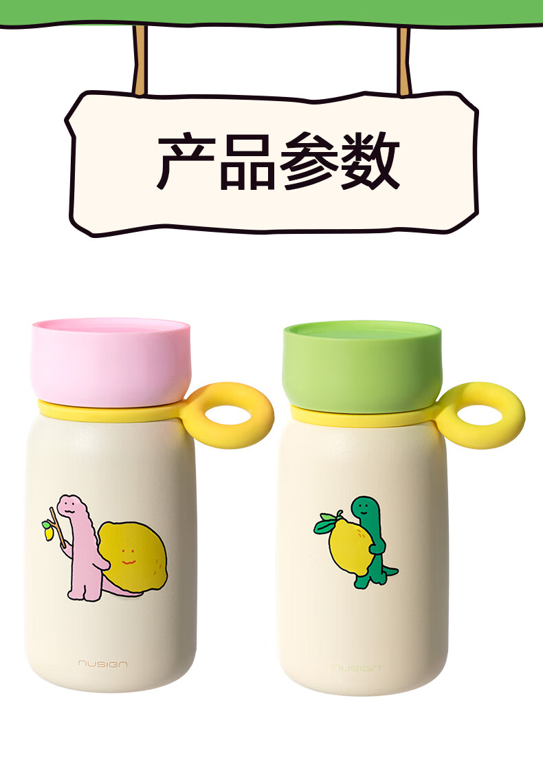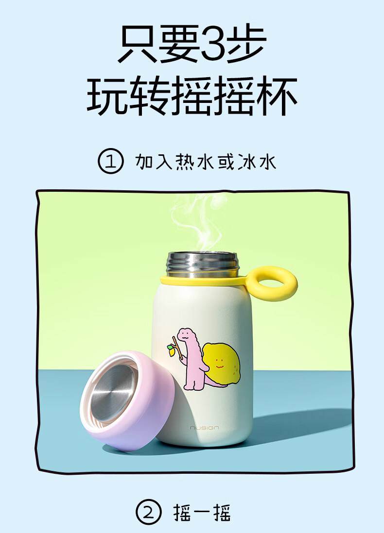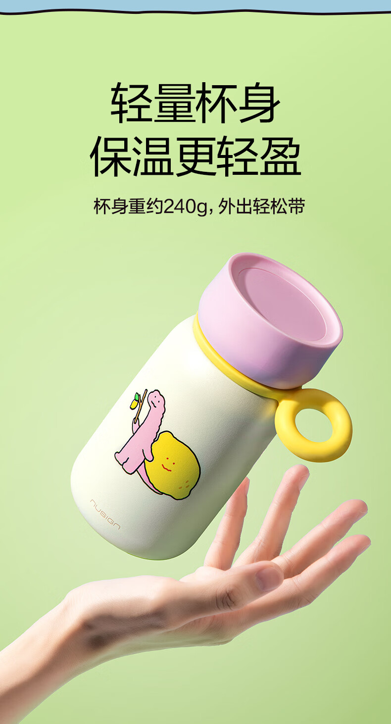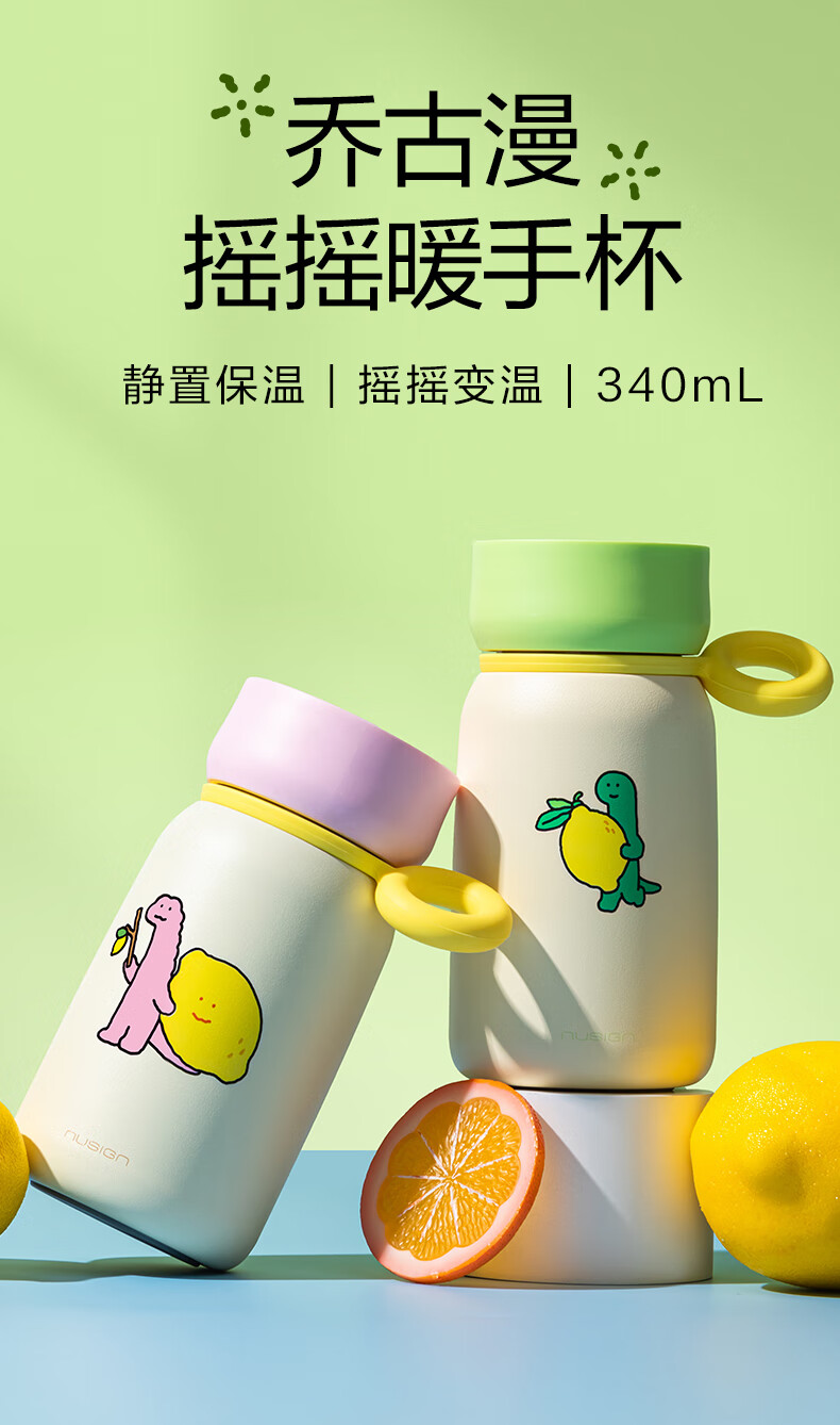纽赛(NUSIGN)【乔古漫联名】nusign纽赛乔古曼摇摇暖手杯得力不锈钢保温杯子 粉色