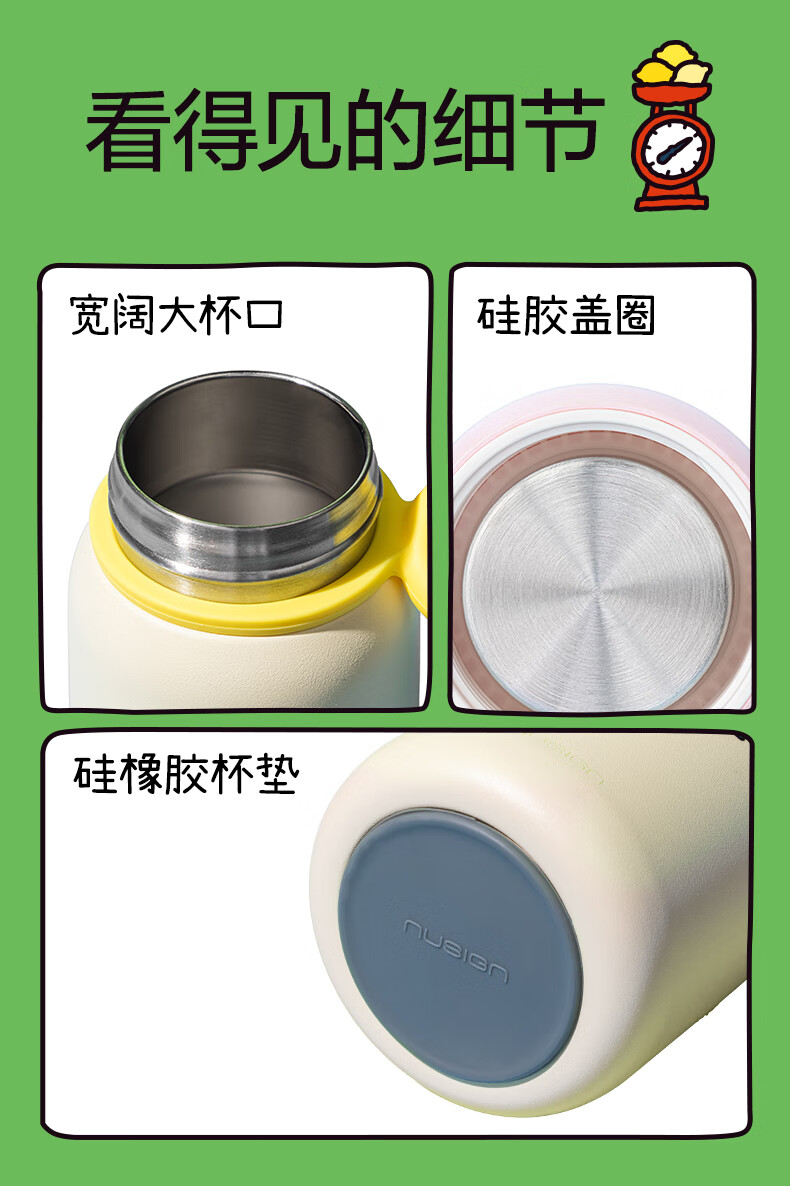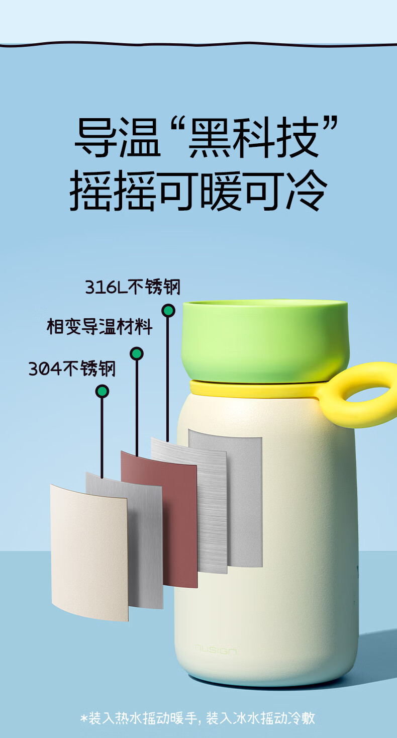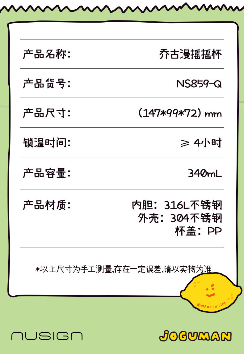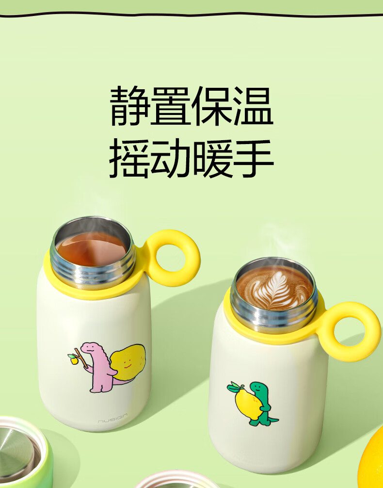 纽赛(NUSIGN)【乔古漫联名】nusign纽赛乔古曼摇摇暖手杯得力不锈钢保温杯子 粉色