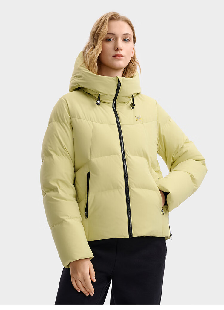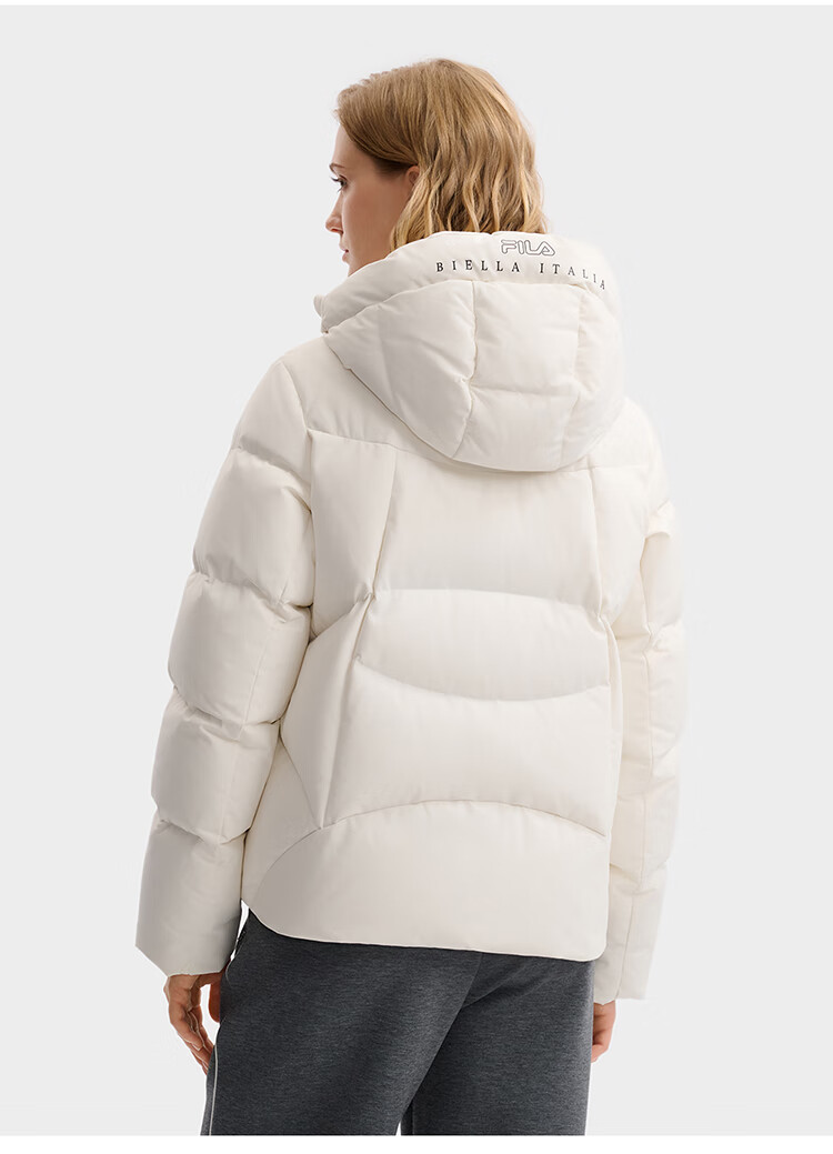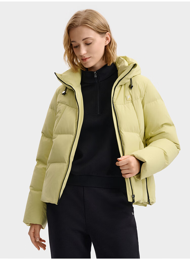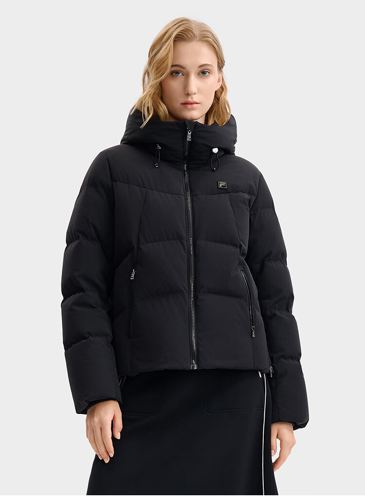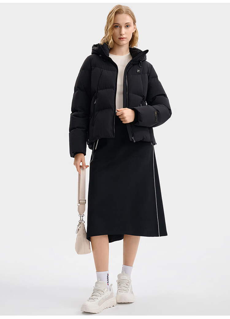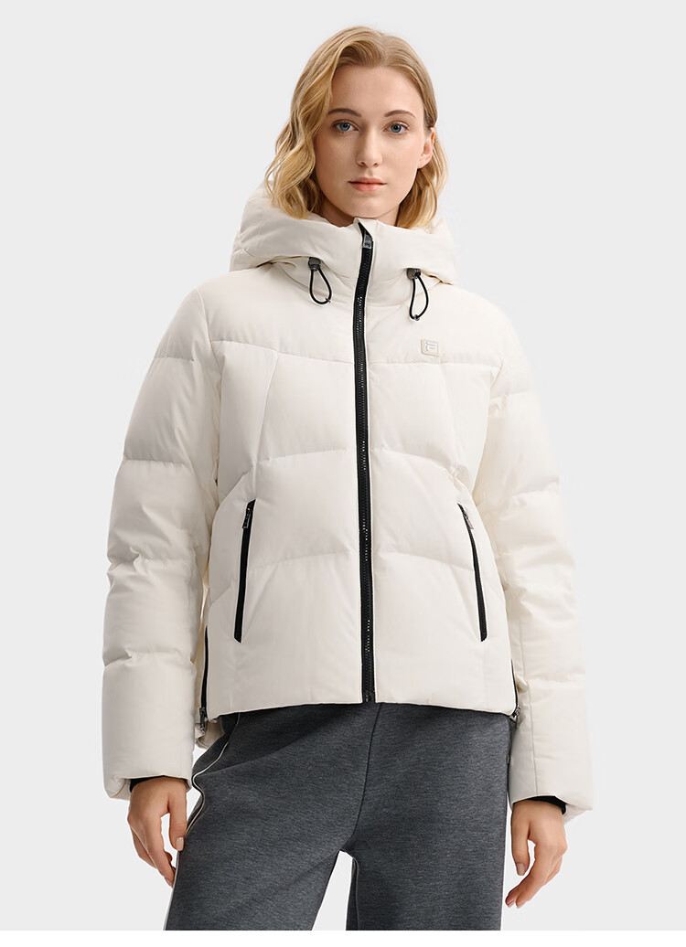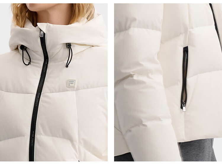 FILA 斐乐官方女装羽绒服2025冬季新款时尚休闲舒适保暖连帽外套 纶度白-WT L 170/88A/L