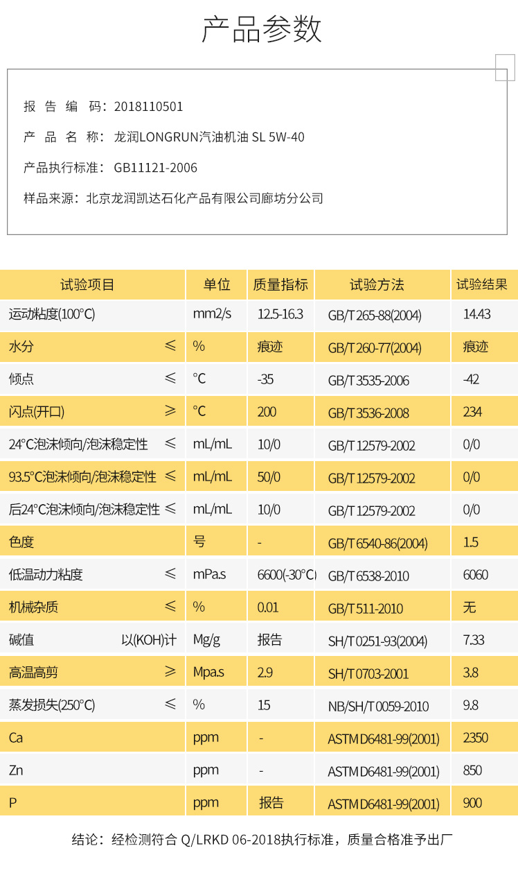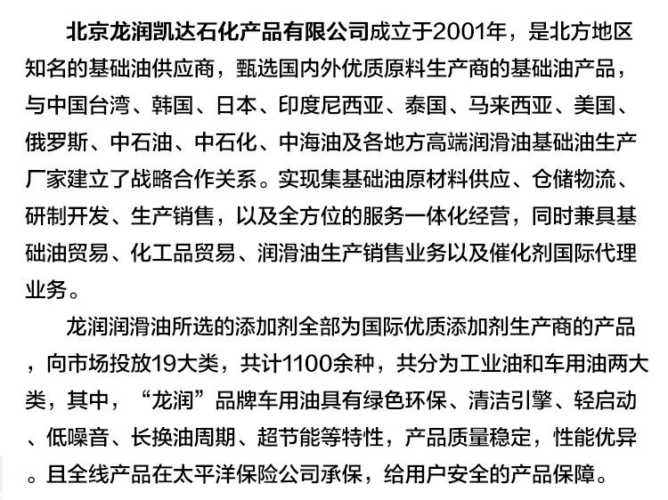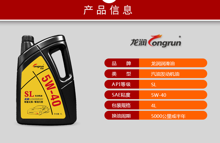 龙润润滑油(longrun)矿物质机油发动机润滑油 5W-40 SL级 4L 汽车保养