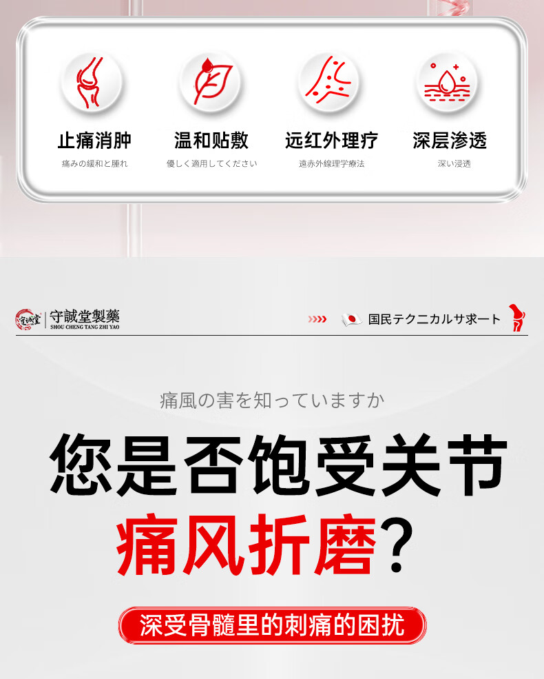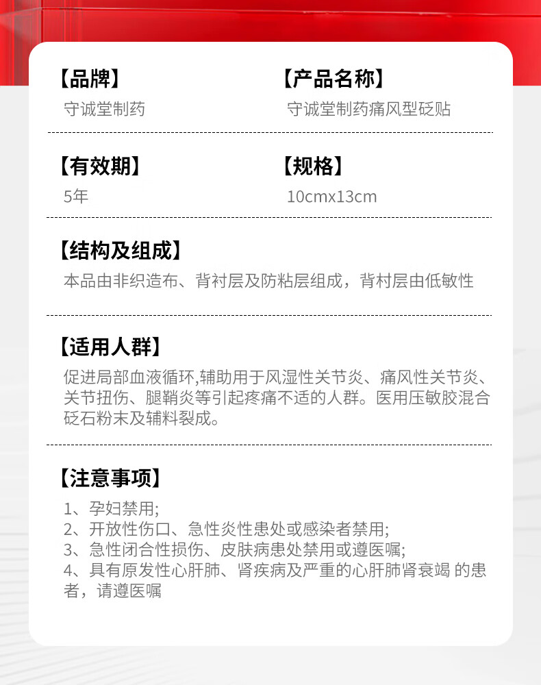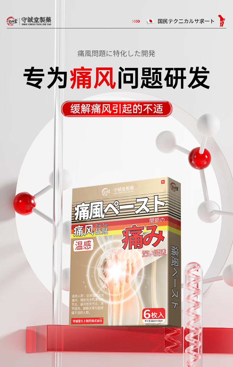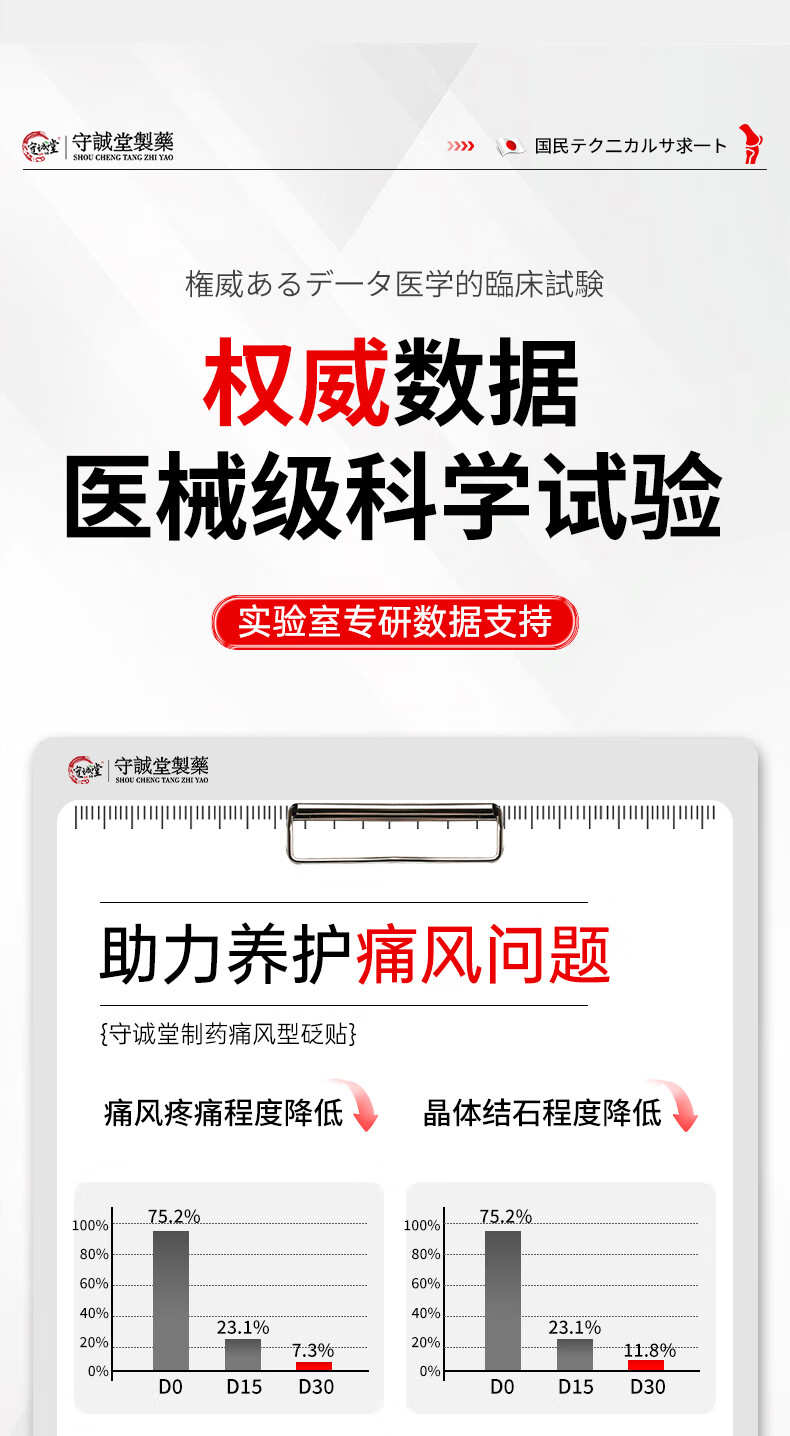 守诚堂痛风贴降尿酸膏药三溶解融结晶石关节疼痛消肿止痛远红外骨痛贴井
