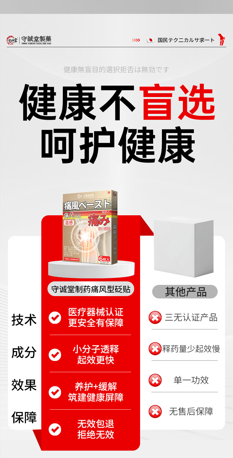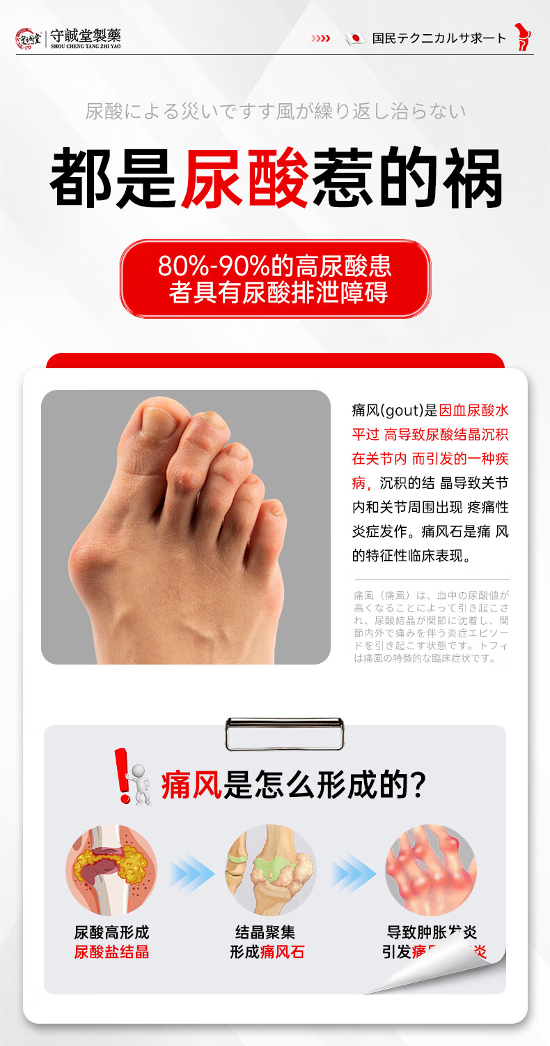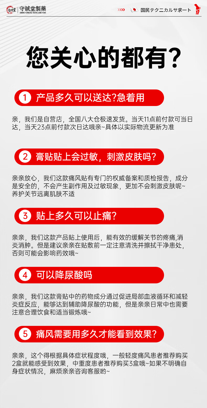 守诚堂痛风贴降尿酸膏药三溶解融结晶石关节疼痛消肿止痛远红外骨痛贴井