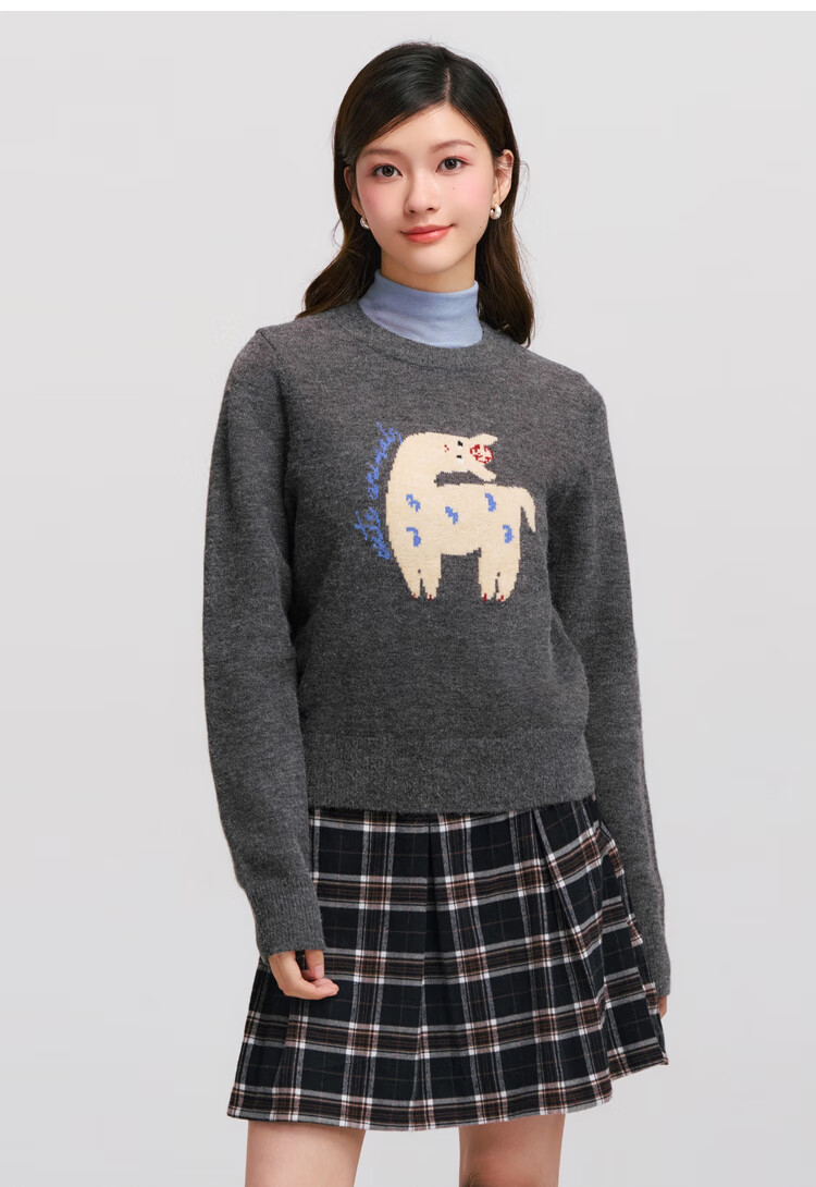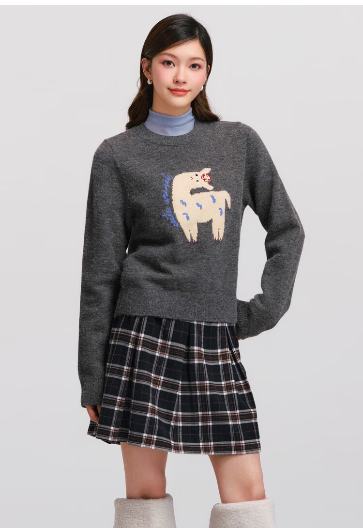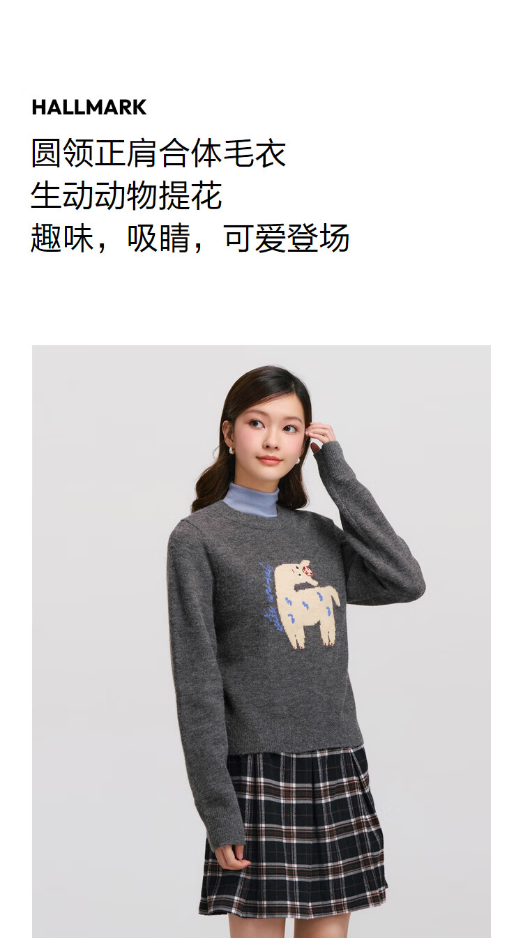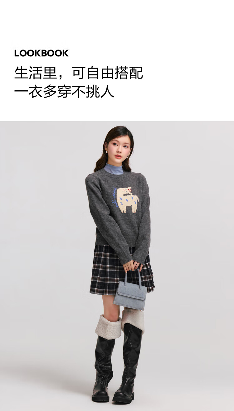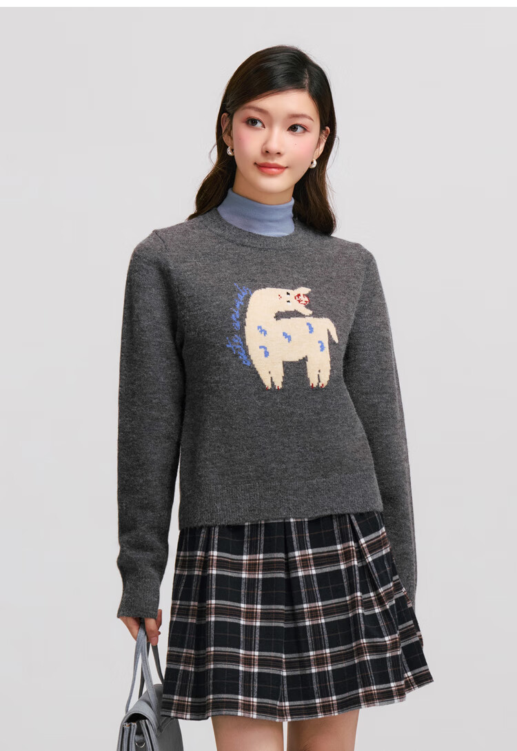 森马(Semir)毛衣女提花衣服趣味潮流2024冬季圆领正肩毛衫甜酷风109724107008