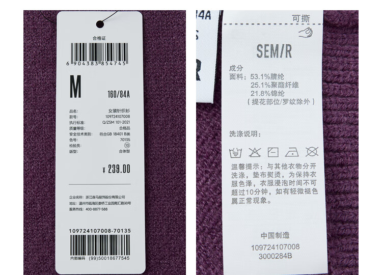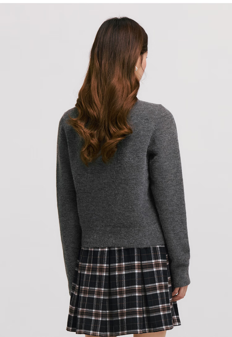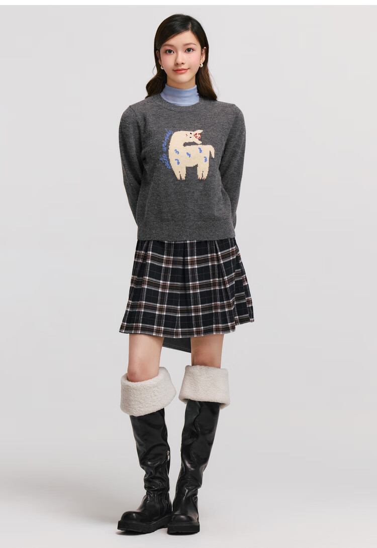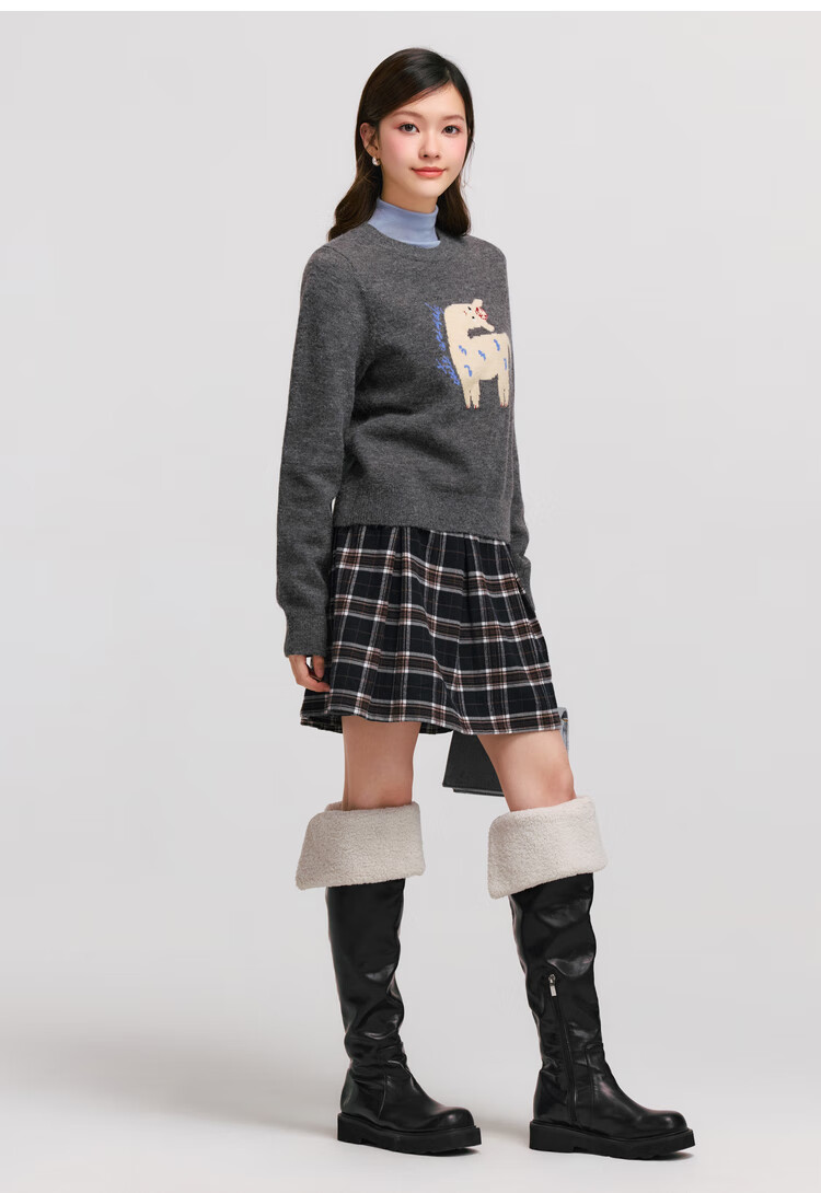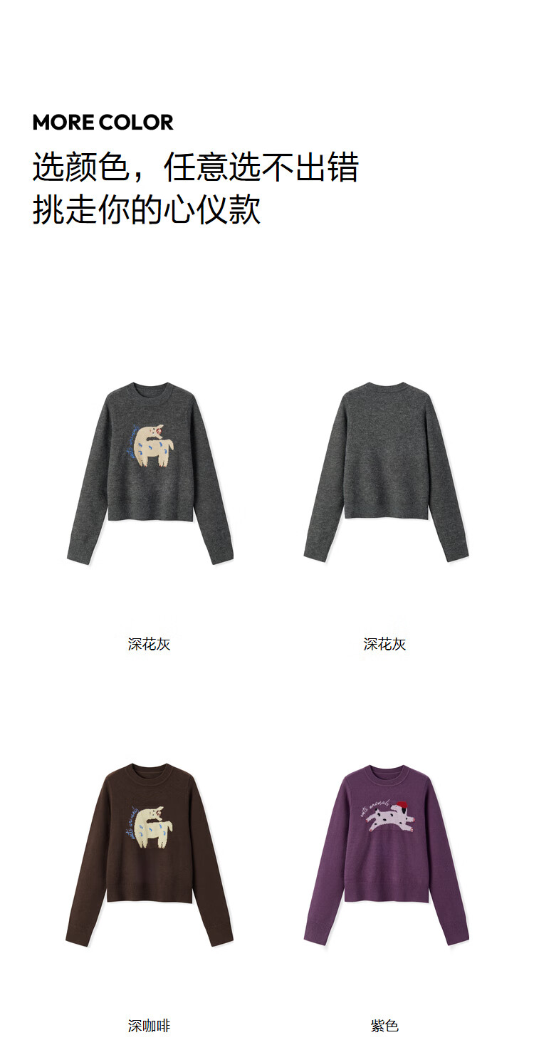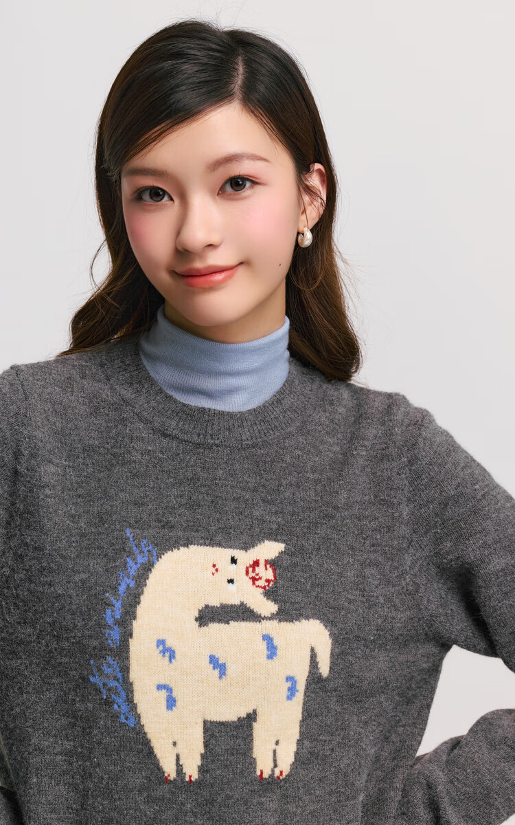森马(Semir)毛衣女提花衣服趣味潮流2024冬季圆领正肩毛衫甜酷风109724107008