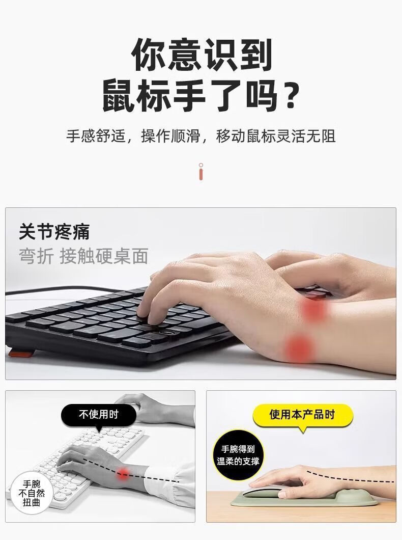 LZQLY【甄选好物】护腕鼠标垫手腕垫加厚防滑记忆棉纯色立体办公舒适电 冰丝护腕鼠标垫-宝蓝色-1个装 无规格