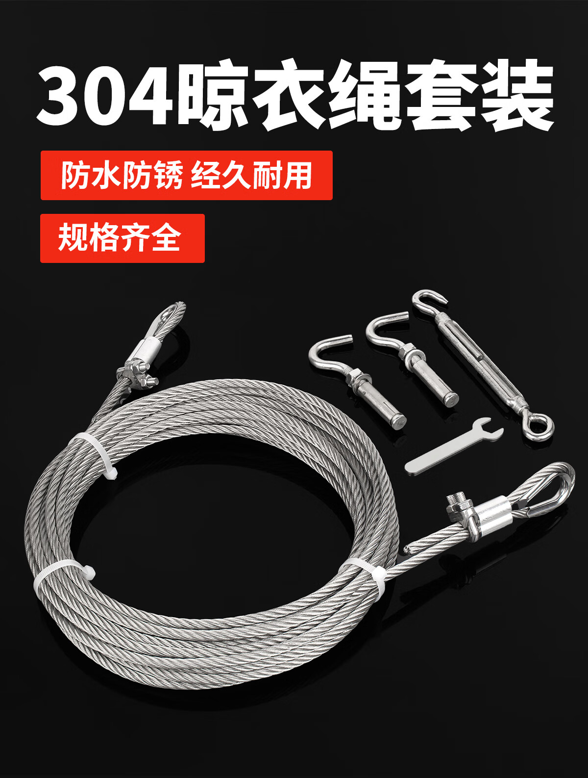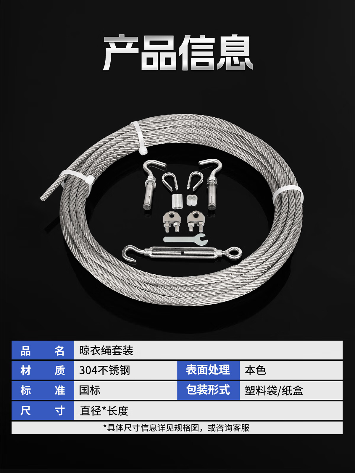 宝德丰包塑升降晾衣架304不锈钢钢丝绳阳台手摇晒衣架配件线更换凉衣杆 3mm包塑(1米一套)