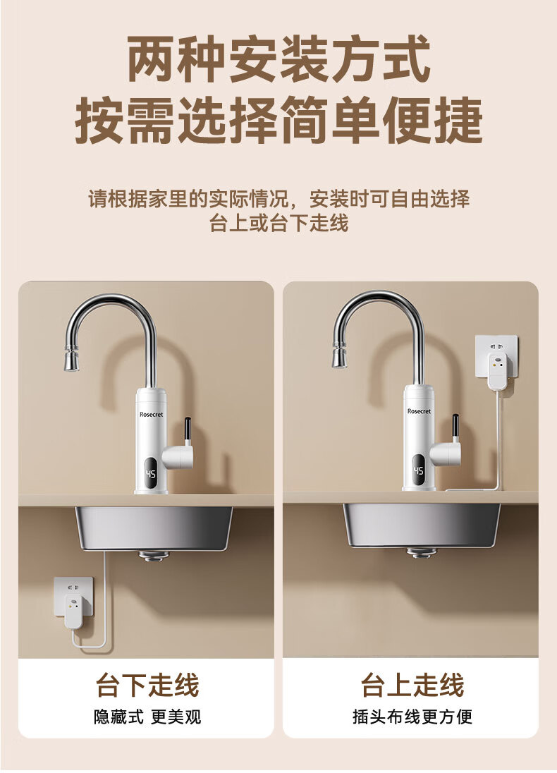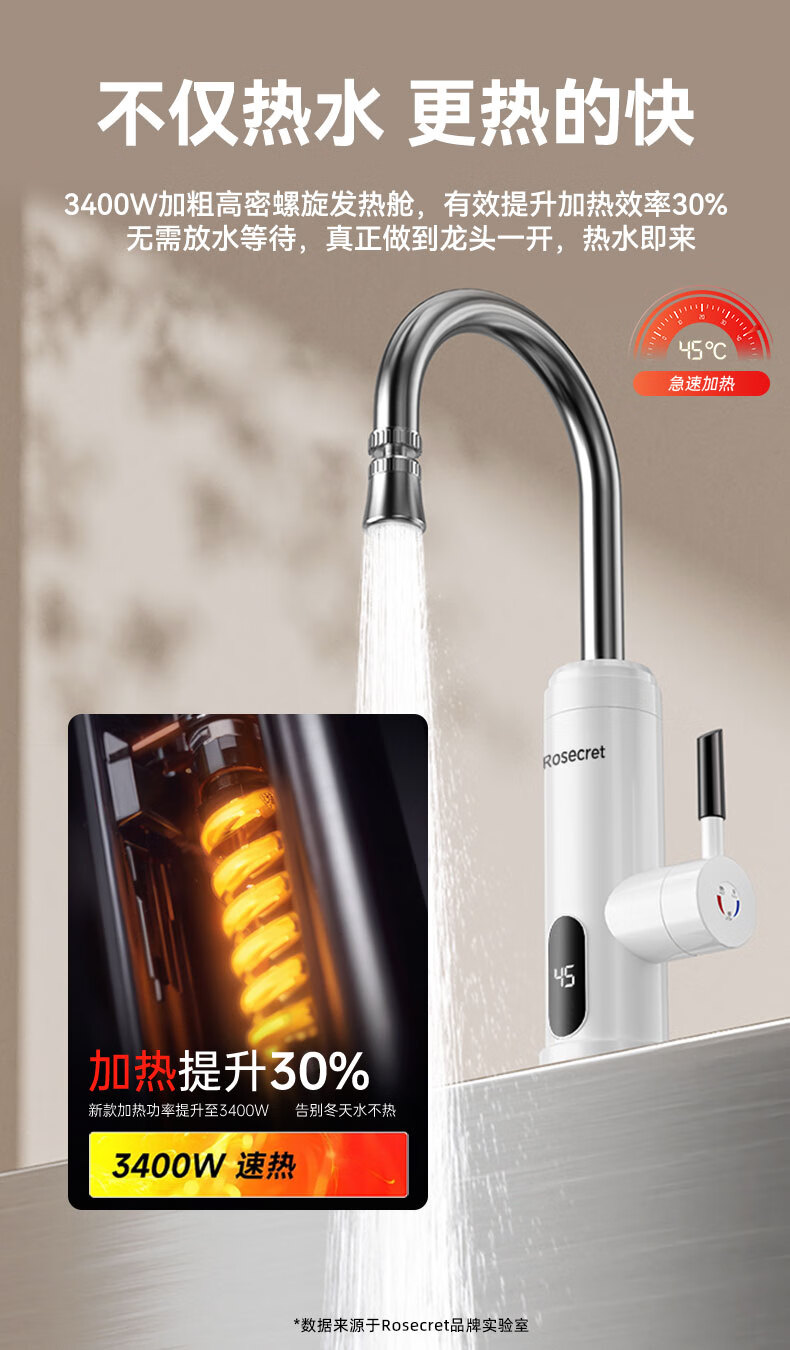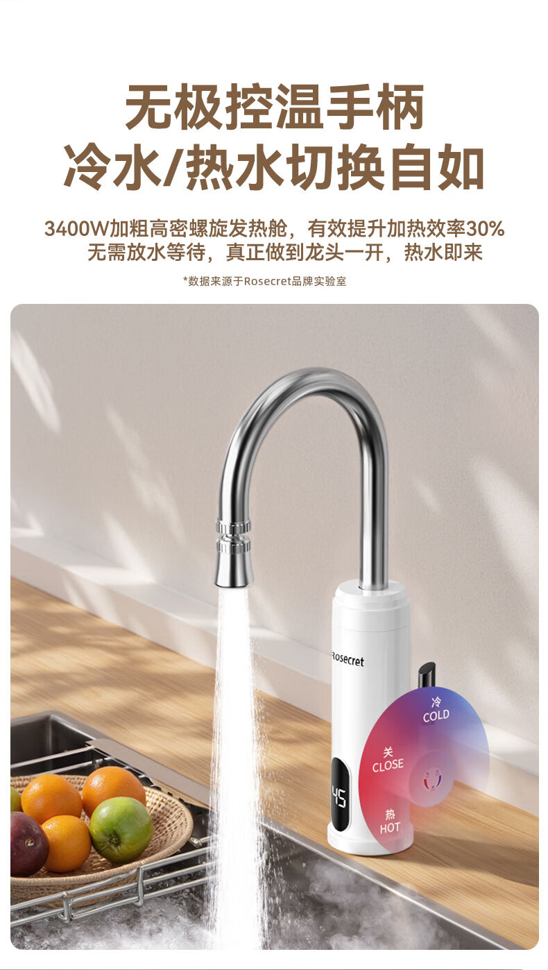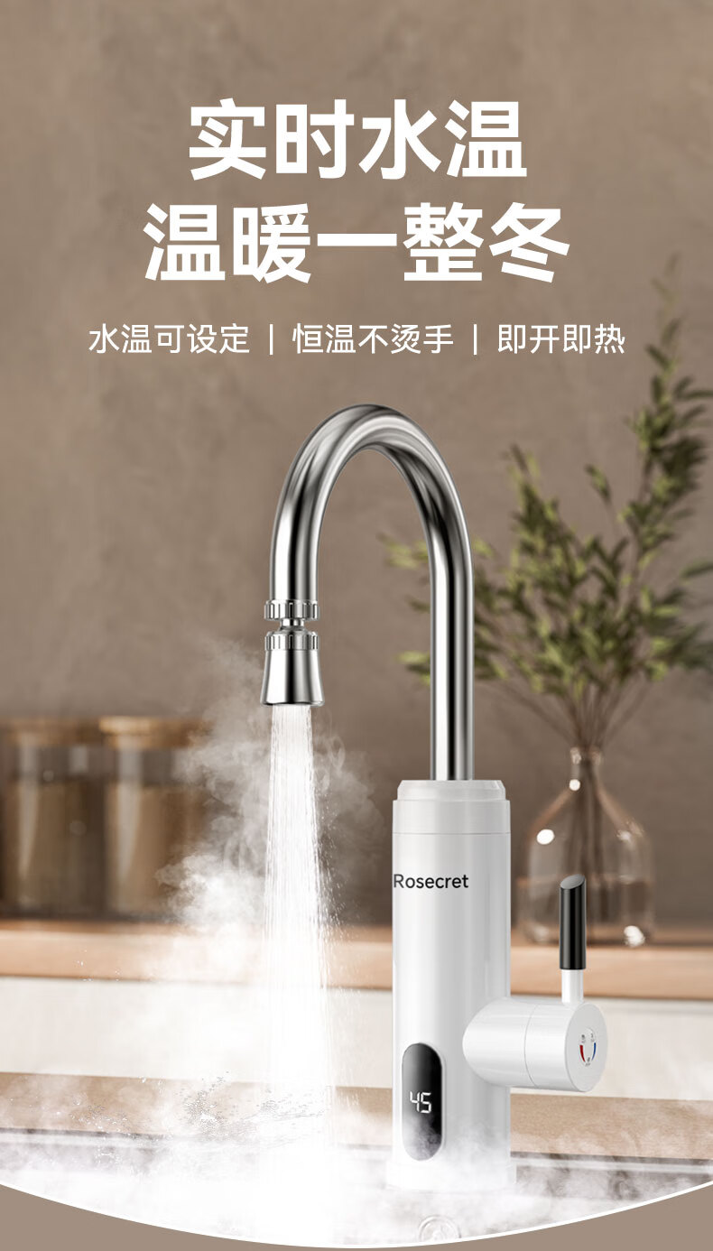 Rosecret【德国】电热水龙头厨房即热式电热水器快速加热水龙头小厨宝家用速热宝冷热二合一数显防漏电龙头 智能数显款【冷热两用+不锈钢管】带漏保插头