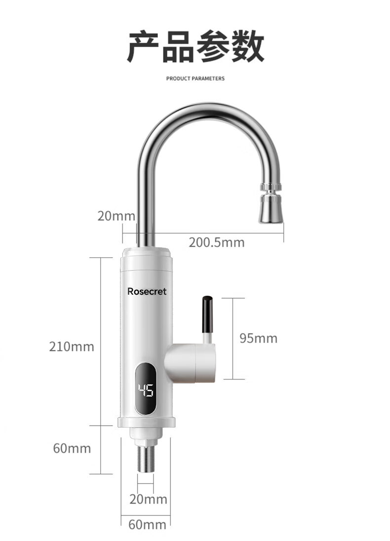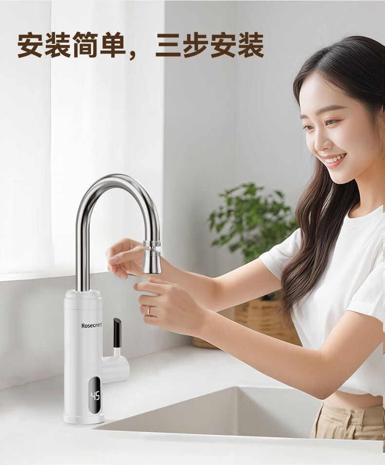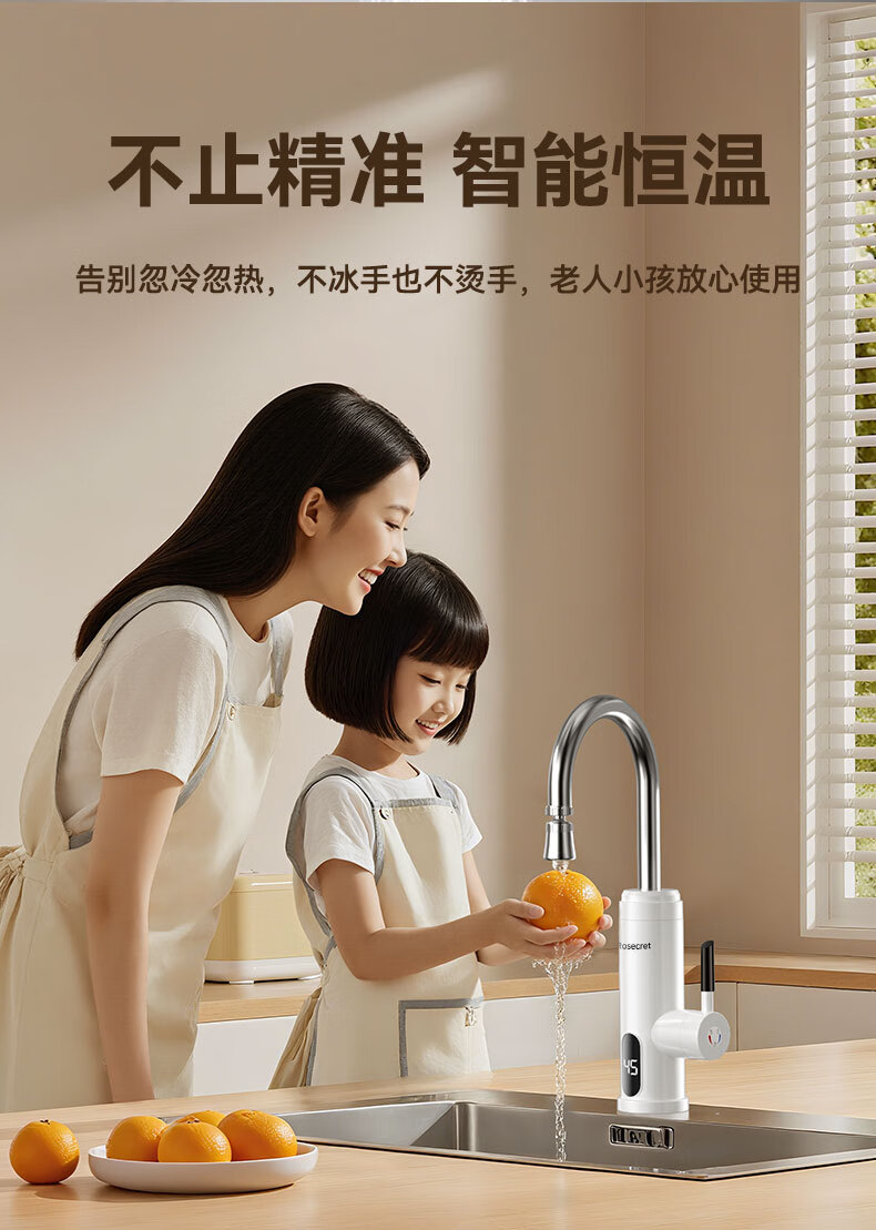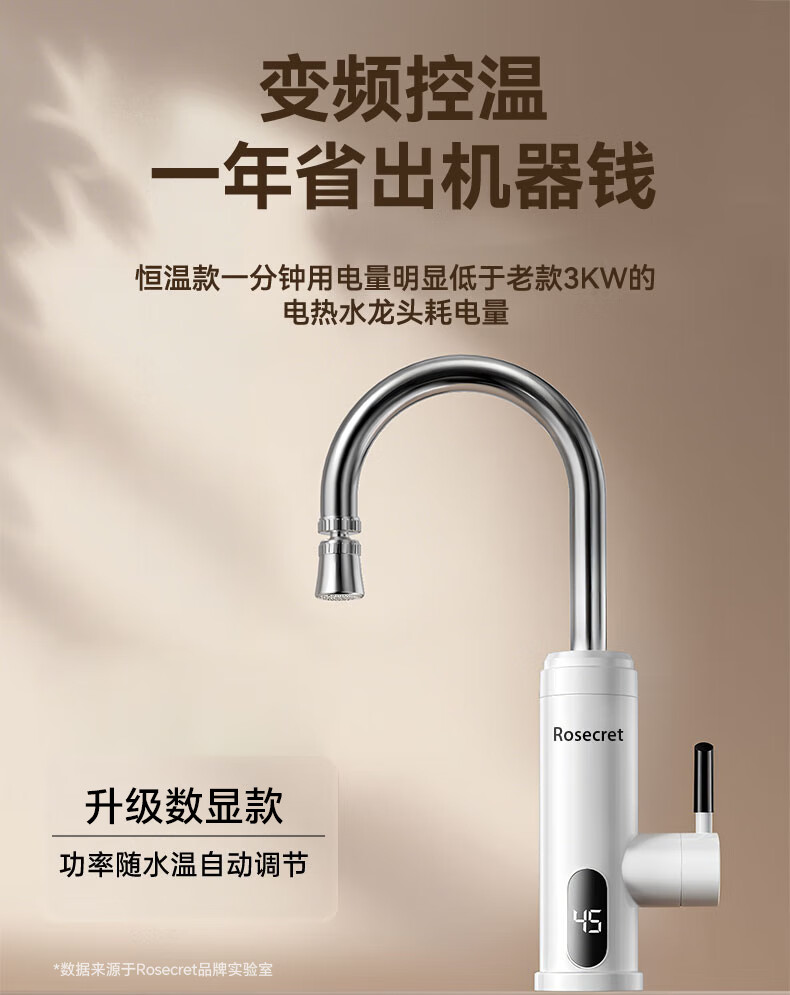 Rosecret【德国】电热水龙头厨房即热式电热水器快速加热水龙头小厨宝家用速热宝冷热二合一数显防漏电龙头 智能数显款【冷热两用+不锈钢管】带漏保插头