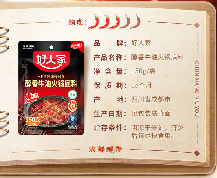 好人家0添加小块装火锅底料 四川老火锅150g*5