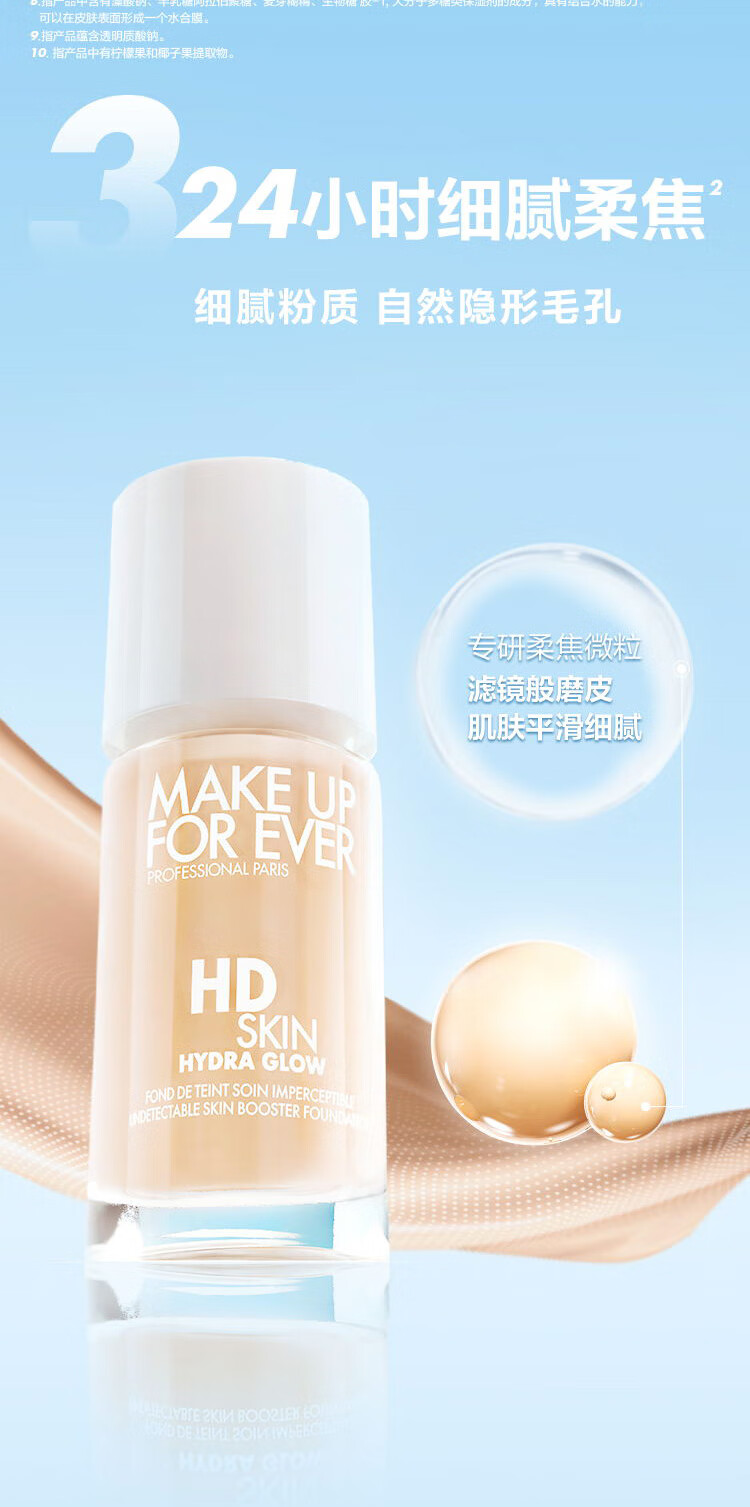 玫珂菲(MAKE UP FOR EVER)高清无痕水光持妆粉底液1N00效期至26/11 生日礼物送女友