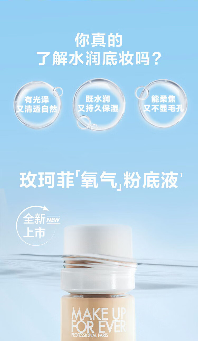 玫珂菲(MAKE UP FOR EVER)全新氧气粉底液遮瑕持妆自然服帖1N00效期至26/11 生日礼物送女友