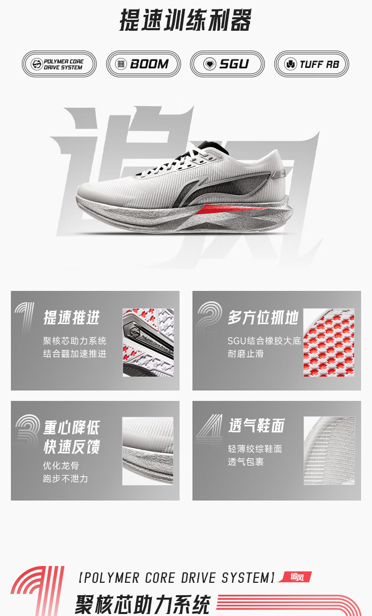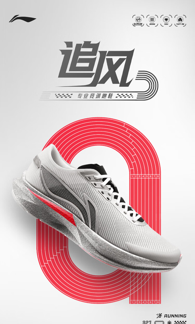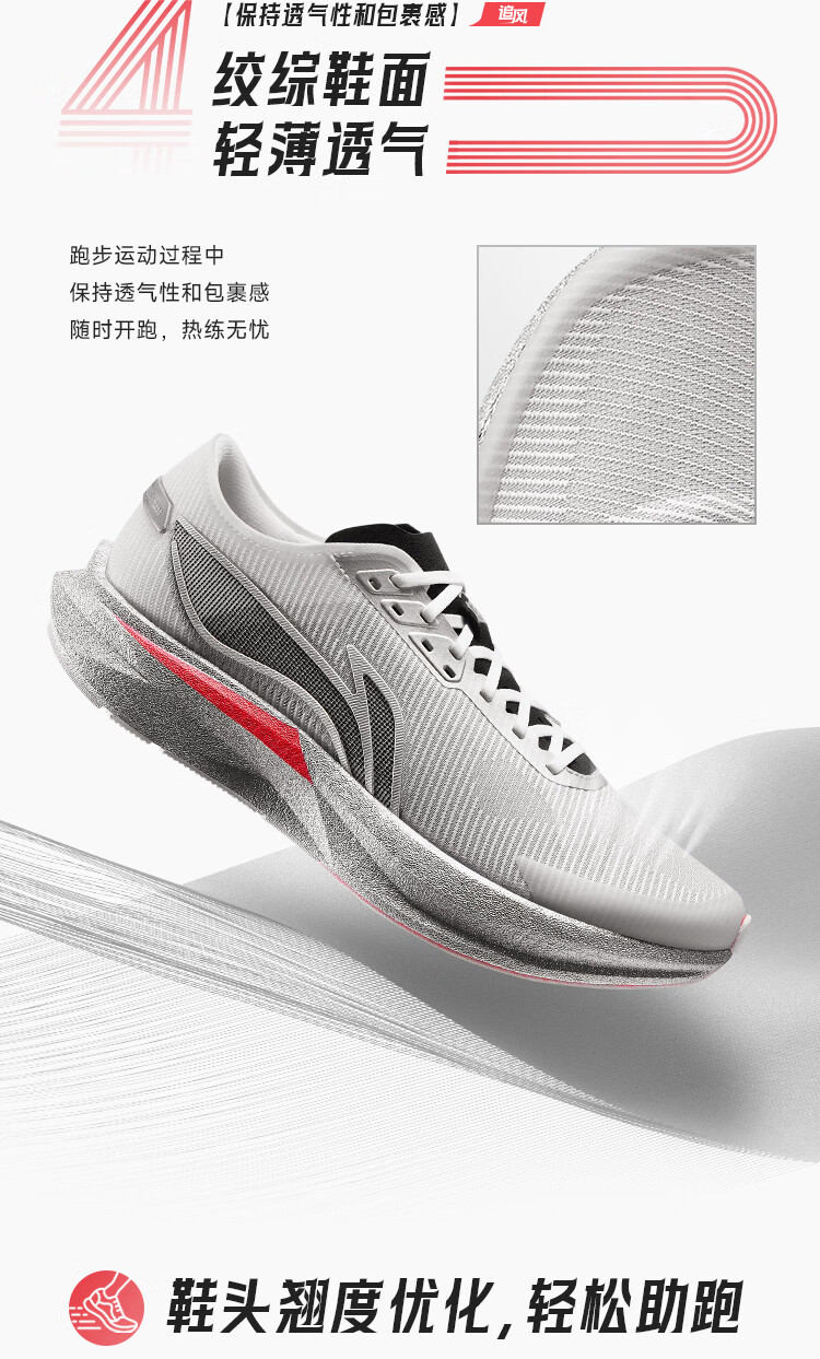 李宁追风丨beng轻弹透气跑步鞋男秋冬中考体测跳绳轻量竞速训练运动鞋 【透气绞综】香槟白-9 42